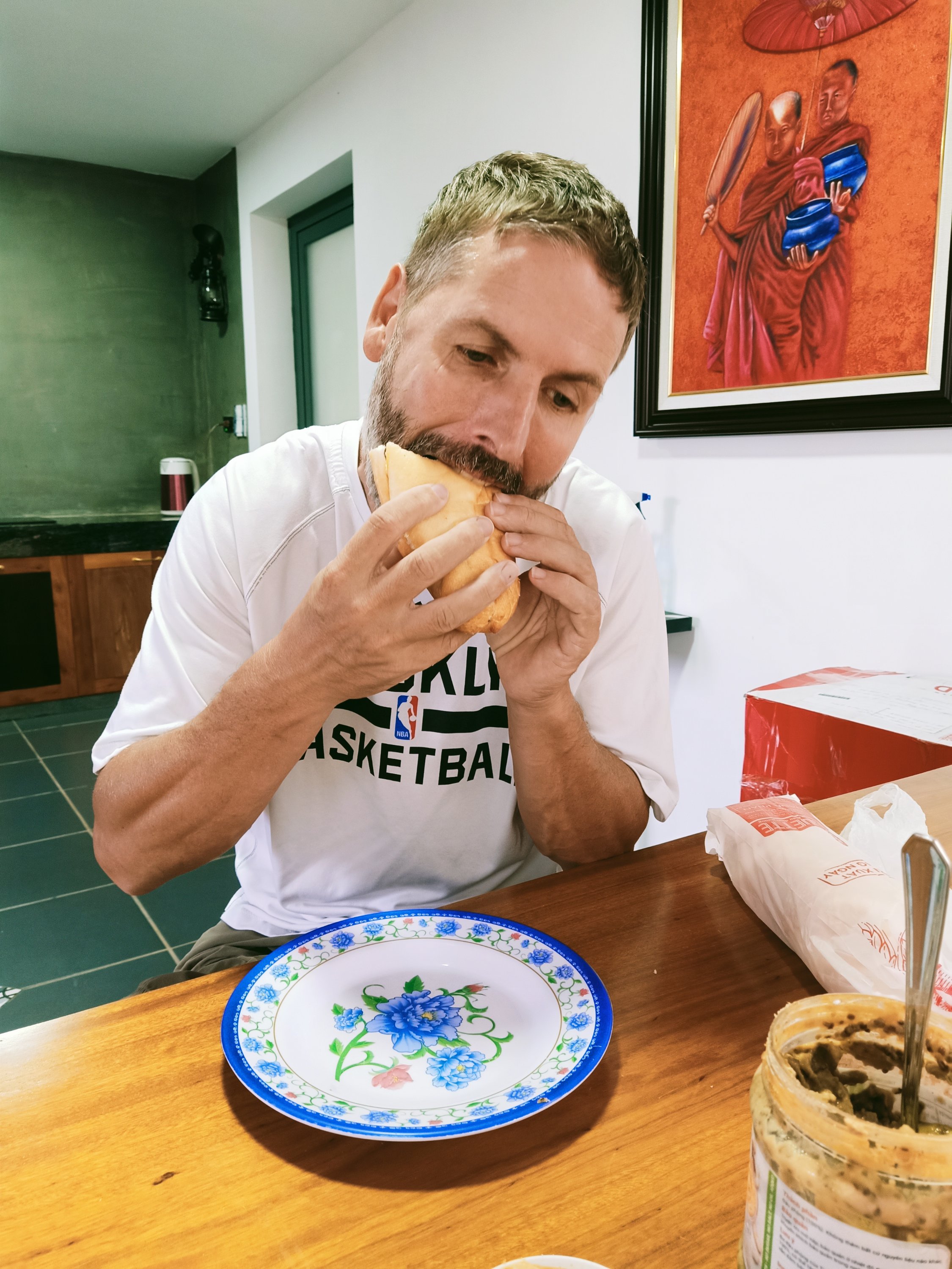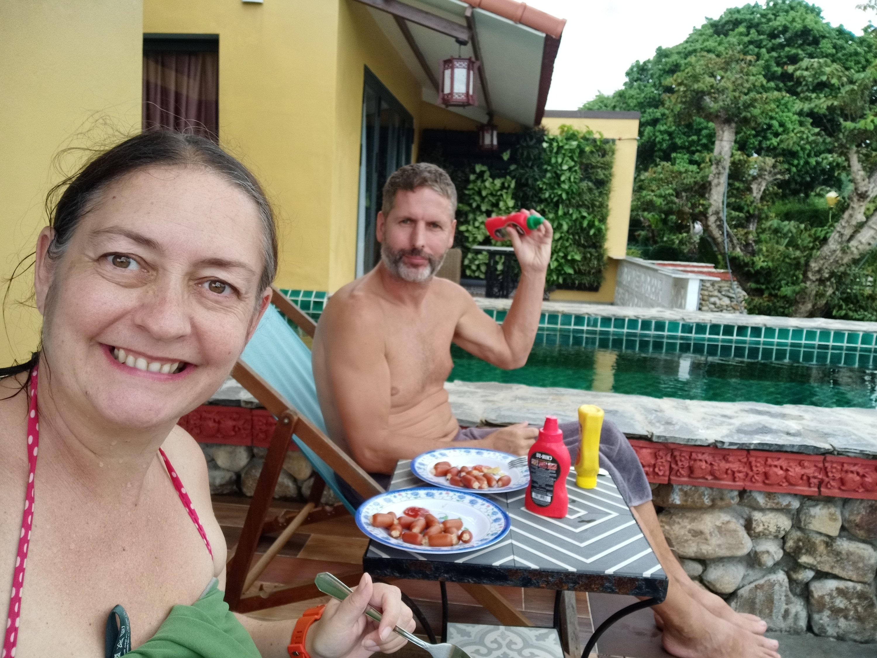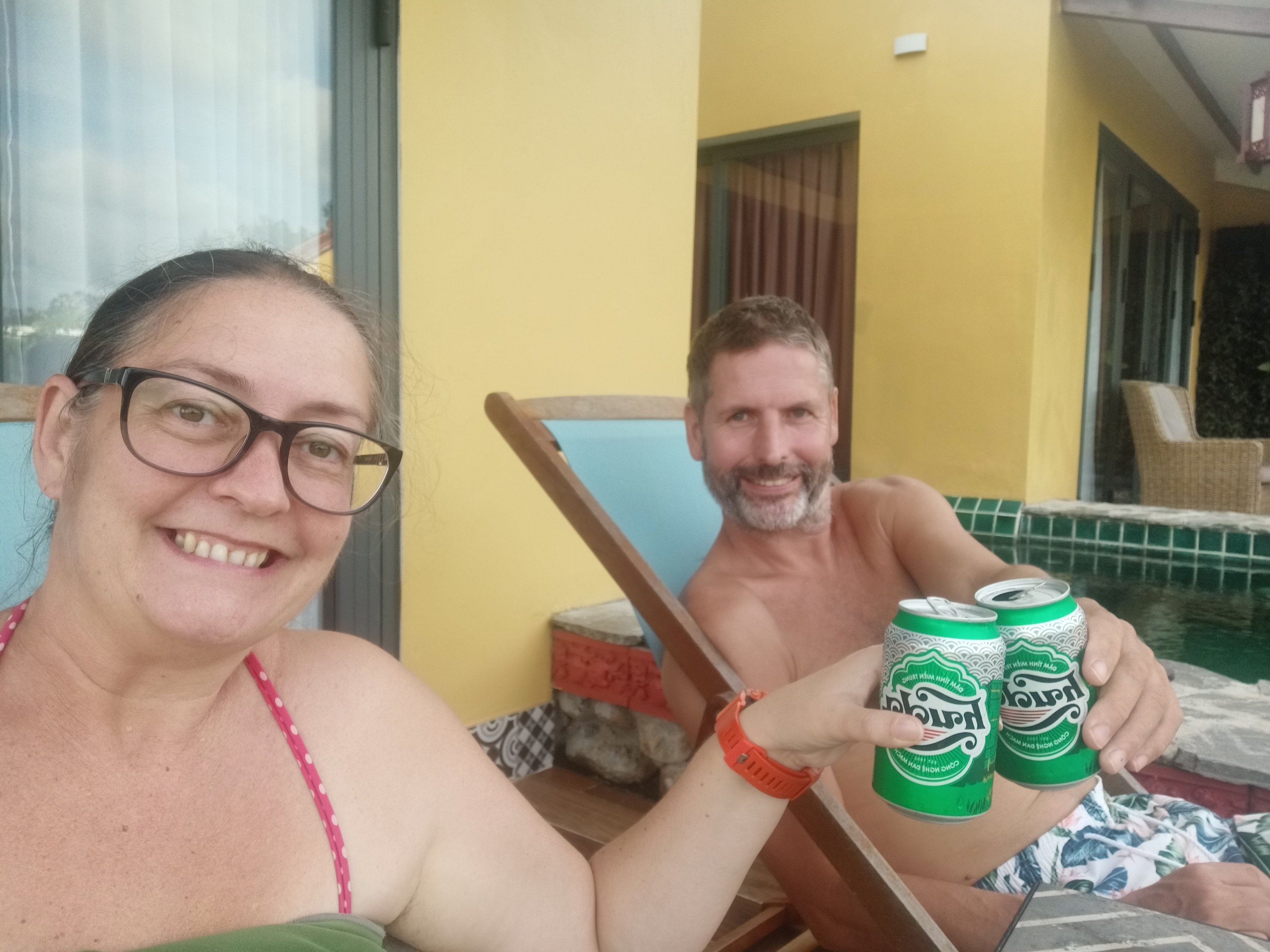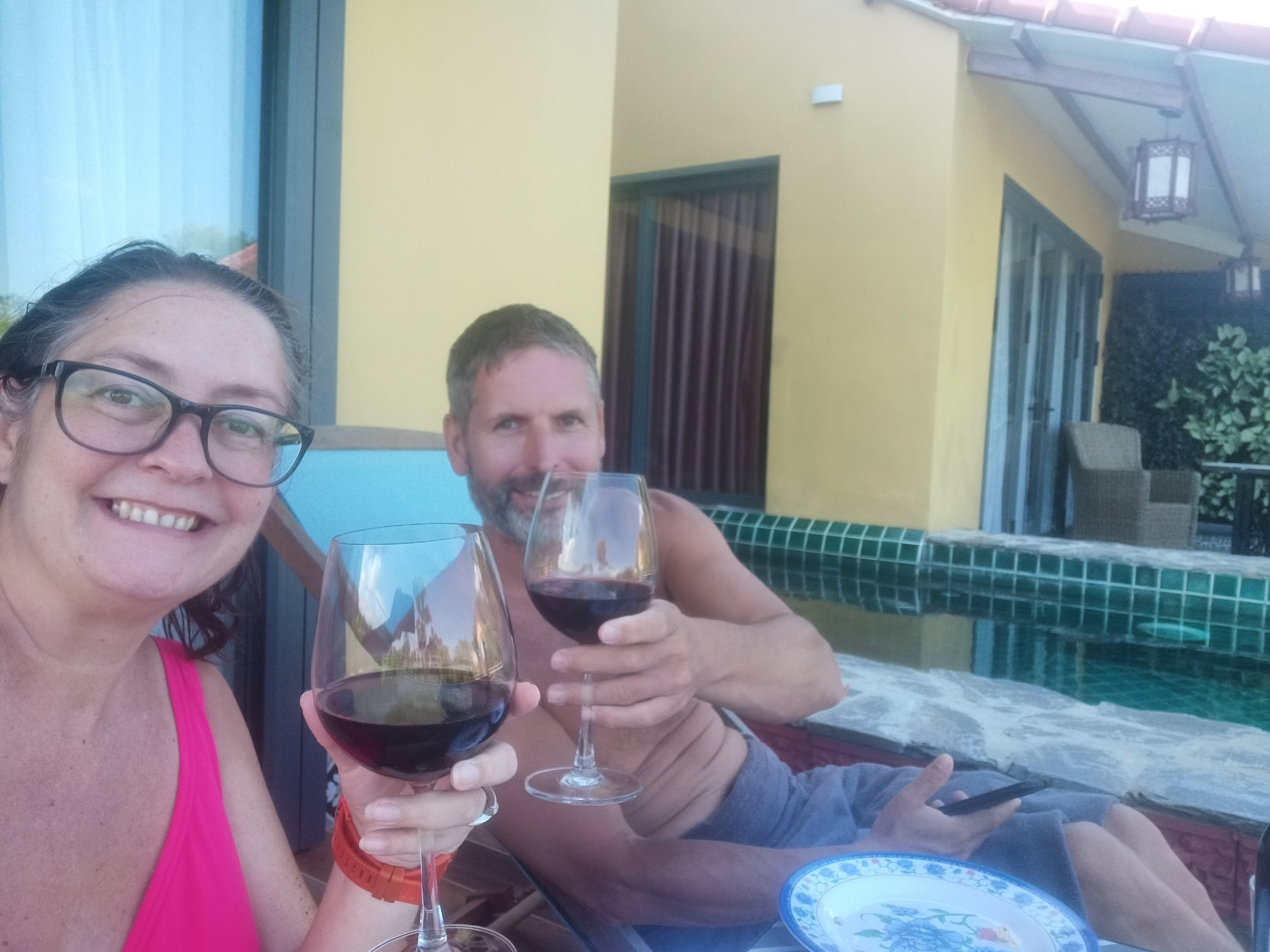 We had just walked back through the door at home, took our masks off, washed our hands, and Captain Caveman was updating his colleague that we had been tested, when Bich called. She had been called for her to organise for us to go for the PCR test, but we had already gone. She was a bit confused as she knew nothing about it but I explained that neither did we until 30 minutes ago and we just did what we were told. Captain Caveman hadn’t actually needed to get his done but he had decided it was wise to do so in case he ended up having to drive me anywhere to get me out. After speaking to his contact at work, again, Captain Caveman reassured me that they said all could be arranged and we were able to go ahead and book my flights. I was so relieved and, because we’d not eaten yet, we decided to have lunch first. I’m not saying Captain Caveman was happy that I was finally getting out of here, but he decided we would open his very last bottle of emergency wine, which was a very nice one, bought for him by one of his customers, Thien. I thought we should wait until it was all actually done before we started celebrating but he insisted, and I wasn’t going to turn down wine. He made a chicken and mushroom (using the ones we had grown) spaghetti which we had to make do without a sauce as we hadn’t been able to get any and we didn’t have many tomatoes left. It was very hot out so I had to keep getting in the pool to try to cool off and we had a lovely lockdown lunch, with great wine, on the balcony. We did a cheers to getting out of the house for 30 minutes during a #STFAH stint and we also spoke to a friend in Saigon to check how she was getting on. Things were pretty bad there but she was doing ok and was able to get food and wine pretty well. We called my parents and were full of excitement about our day and the plans all coming together to get me a step nearer to getting to Turkey – it could finally be happening!