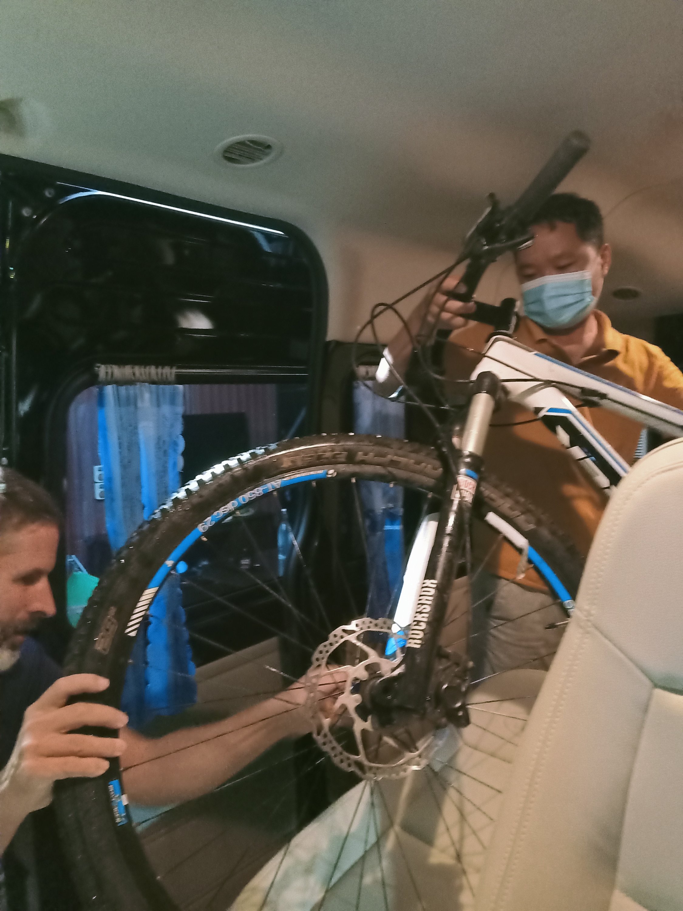 The final part of the day was pretty stressful! We’d already been told by Bich that the police had informed everyone to stay where they are and that there were positive Corona cases very near to our place which meant we had no idea what would happen when Danny came to pick me up. Captain Caveman and I decided I should still try to leave because tomorrow we would be in no better position and we didn’t know for how long that could remain, plus the forecasted wet weather could also impede my attempts somewhat. There was also the fact that Danny, the driver, was on his way and he would charge another 7 million vnd (£250) regardless of whether I made it to Hanoi airport with him or not – I felt like it was now or never. The evening before, Ben and Bich had mentioned that Danny wanted to pick up 2 bicycles from previous customers that had been left at the Phong Nha Farmstay but I had decided to disregard the details of that, I just needed to get out and not worry about other people’s stuff, plus I’d had 1 too many glasses of fizz. At 4.30pm I got a couple of messages from T, who was already at Medlatec in Dong Hoi, followed by a phone call to tell me to look at the photo of my PCR test result certificate to check it is ok for him to bring back to me. It didn’t have my nationality on it, which I was concerned about, but it didn’t say I was Vietnamese either, Captain Caveman helped me check it and we thought it would be ok, my full date of birth and the dates all matched – T was on his way and I had sent a copy to Danny. This was it, I was going! Captain Caveman weighed my suitcase and it was 22kg. My hand luggage was about 8kg, bang on the allowance. When T arrived he had the PCR test paper in his hand, in the rain, no envelope or in a pocket, but at least it was here and I could use it to get on a plane tomorrow. At 7.15pm in the middle of a rain storm Danny messaged to say he was here, we looked outside and he wasn’t. Danny was at the triangle junction off the main road but near to the Phong Nha Farmstay – not walkable with my ankle, the suitcases and the rain. I called Bich, she explained that she didn’t know what was happening with the pick up location but earlier she had sent T back to deliver a bicycle to Elements (so the bike was at our place too), she asked me to put Duyet on the phone. Duyet would have to drive me, my luggage and 1 random bicycle, to where Danny was, which meant Captain Caveman couldn’t say a private goodbye to me at the car or help with my luggage. Duyet, Cuong and Captain Caveman were all struggling to get the bike in the van while I sat there trying not to cry. It was not quite the farewell I had in mind and I only got to quickly kiss Captain Caveman and have a very brief hug, despite not knowing when I would see him again. The bike had to go in with the wheels on as no one could remove them and when we got to the barrier we had to stop. I didn’t have any permission slip from the People’s Committee, neither did Duyet, and I have no idea what Duyet told the man but they let us through – I was so relieved and had tears running down my face as I waved bye to the man. A few minutes later we got to the next road where Danny was, there was no barrier so we quickly transferred my suitcases in to Danny’s car in the rain. Then Duyet and Danny faffed about for a while trying to get the bicycle apart and in to the car. They managed it eventually but it did mean I didn’t have the whole back seat to spread out on and was sat behind the driver’s seat in a car with mosquitos trying to avoid the rain. I tried not to dwell on the oil and cobwebs on my luggage and near my head as I got back out in the pouring rain to give Duyet a hug, this was not actually allowed but we didn’t care! I had finally left the village and we were on our way to our first checkpoint, 3 hours later we had successfully made it through the 1st checkpoint without me having to get out of the car and feeling happy I had my documents in a plastic wallet. By 11.10pm we had made it to the first empty services with a squat toilet which I managed fine but, as I was coming out I saw a big momma rat carrying it’s baby. We made each other jump on the wet tiles and she dropped her baby in front of me, it made me think of my mom and how much she would freak out. I kept calm, walked slowly and got back in the car, only 7 or more hours to go until I would get to the airport – it was going to be a long night!