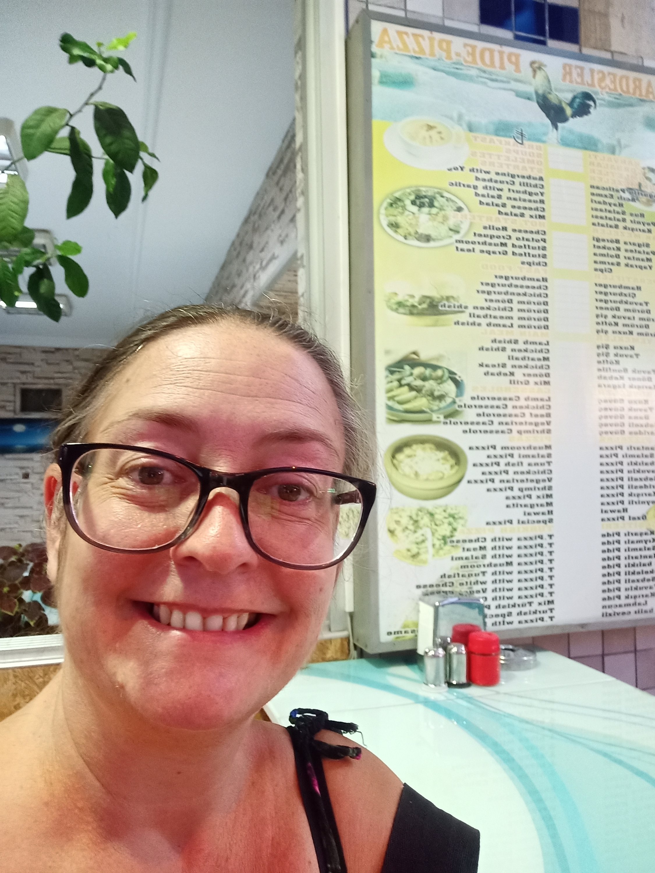 I wasn’t really feeling like going out due to feeling tired and having some issues about applying for residency but I went anyway and I’m glad that I did. Tez bar used to be Soul Kitchen and it looks very similar, they now sell proper ales which looked great but they were 38 lira (£3.22) for a small bottle and I’m on a budget so I had a glass of white wine which was cheaper. Jax was going back home to England tomorrow so had got her PCR test done at Tez Bar where they were printing off and trying to WhatsApp a copy of it to her. When we arrived at Wonky’s Onur was already playing live music as we found a table outside, Angela had booked for 6 of us so we could try the fish and chips, which I was looking forward to. The place was packed and there were a lot of familiar faces in there too, it seemed to be one of the new places to be. When we came to order food they only had enough fish and chips left for half of us (it is very popular), Jax offered to have a burger so that Nick could have fish and chips, and I ordered a pizza. The food was very nice and I noticed that Jax’s burger looked really good and didn’t have any random chillies in, maybe I ordered the wrong one on my last visit, my pizza was excellent. By the time Sarah joined us we had eaten, Onur was in full swing with his live music and people were really enjoying it, he does all the tunes to sing a long too. On our table there was only me, Ann and Jax not smoking and I was finding it difficult to deal with the cigarette smoke so I decided to leave earlier than the others. I found out the next day that most of the gang stayed out until 3am and were singing and dancing – I could not have managed that! When I got home I noticed my shoulder looked a bit sore where my bra strap had been digging in to the scar so I put a blister plaster on to sleep in, it was strange that the exact same place where I had the cyst removed before, years ago, looked like it had another one and I hoped I didn’t have to have surgery again.