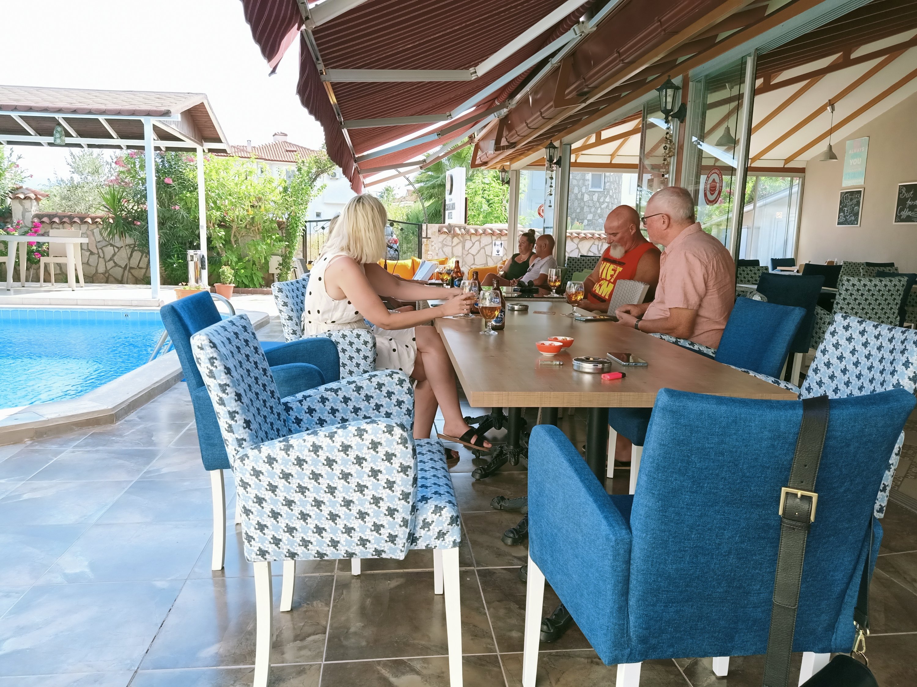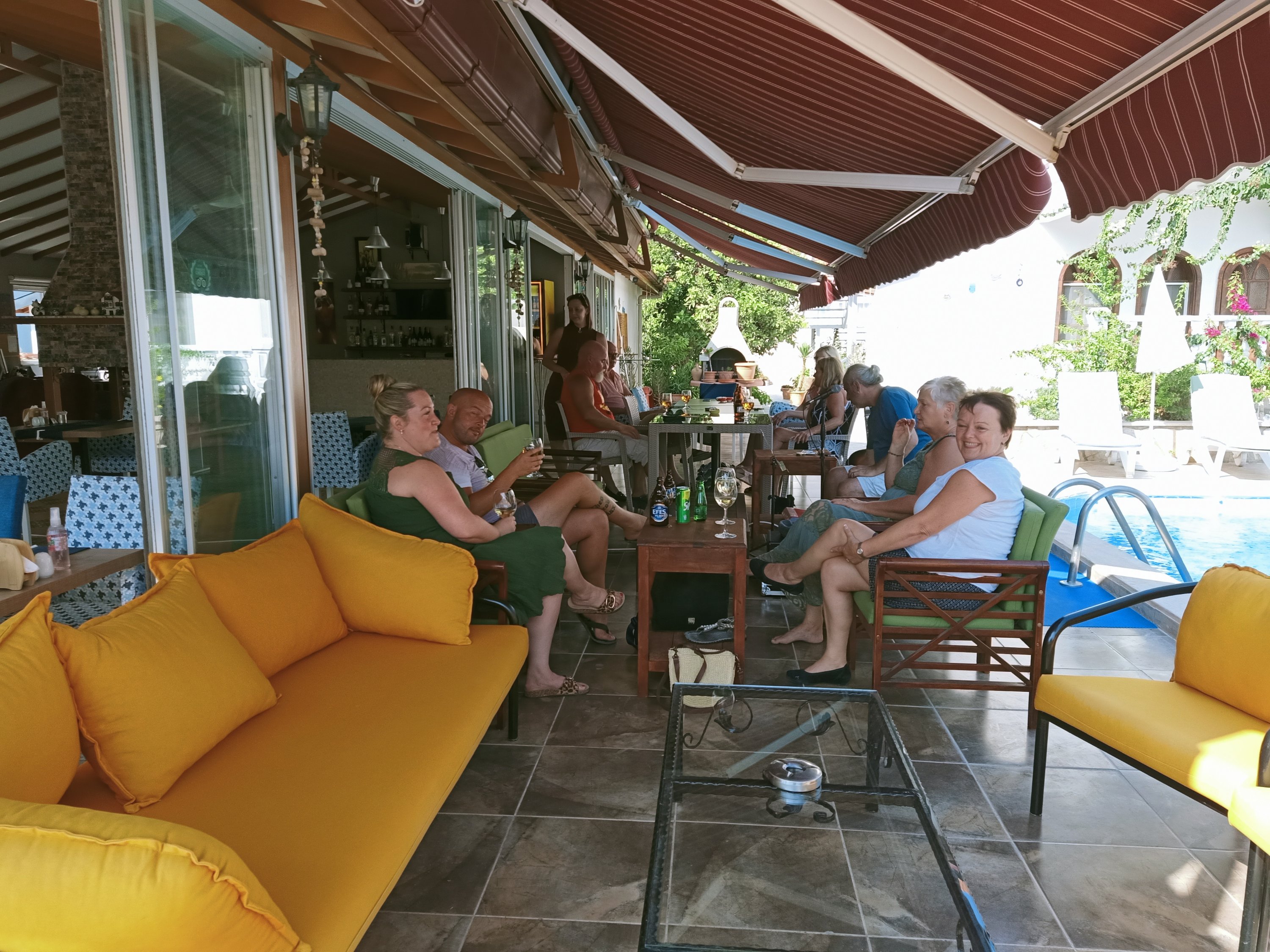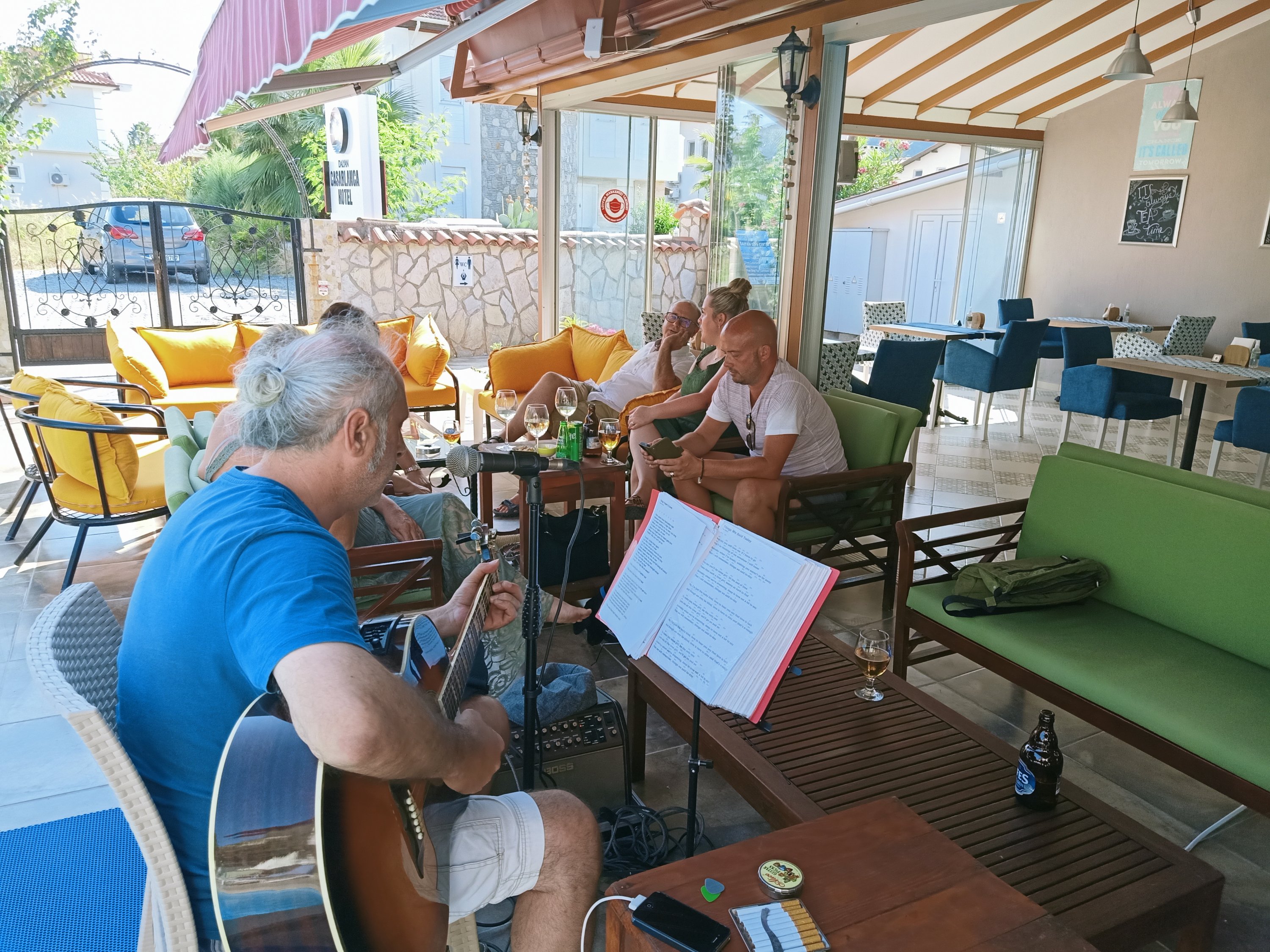 In the afternoon I had been invited to Casablanca hotel by Maddie for food, drinks and live music from Onur. In attendance were the usual suspects; Jamie, Ann, Jax, Sarah, Süleyman, Annie, Peter, Maddie, Angela and Nick plus there were a few other people including Hannah and a bloke called Adam wearing a Vietnam T-Shirt! I had a few beers, 2 plates of food, listened to some great tunes and had a full tour of the lovely hotel. It was a really civilised afternoon, the staff are great, the food was a delicious Turkish spread which we helped ourselves to – I even ran out of plate by the time I got to the home made chips. Jamie ‘insisted’ on us all having a Mr G cocktail, which I must admit are somewhat moreish and that’s when normality kicked back in.