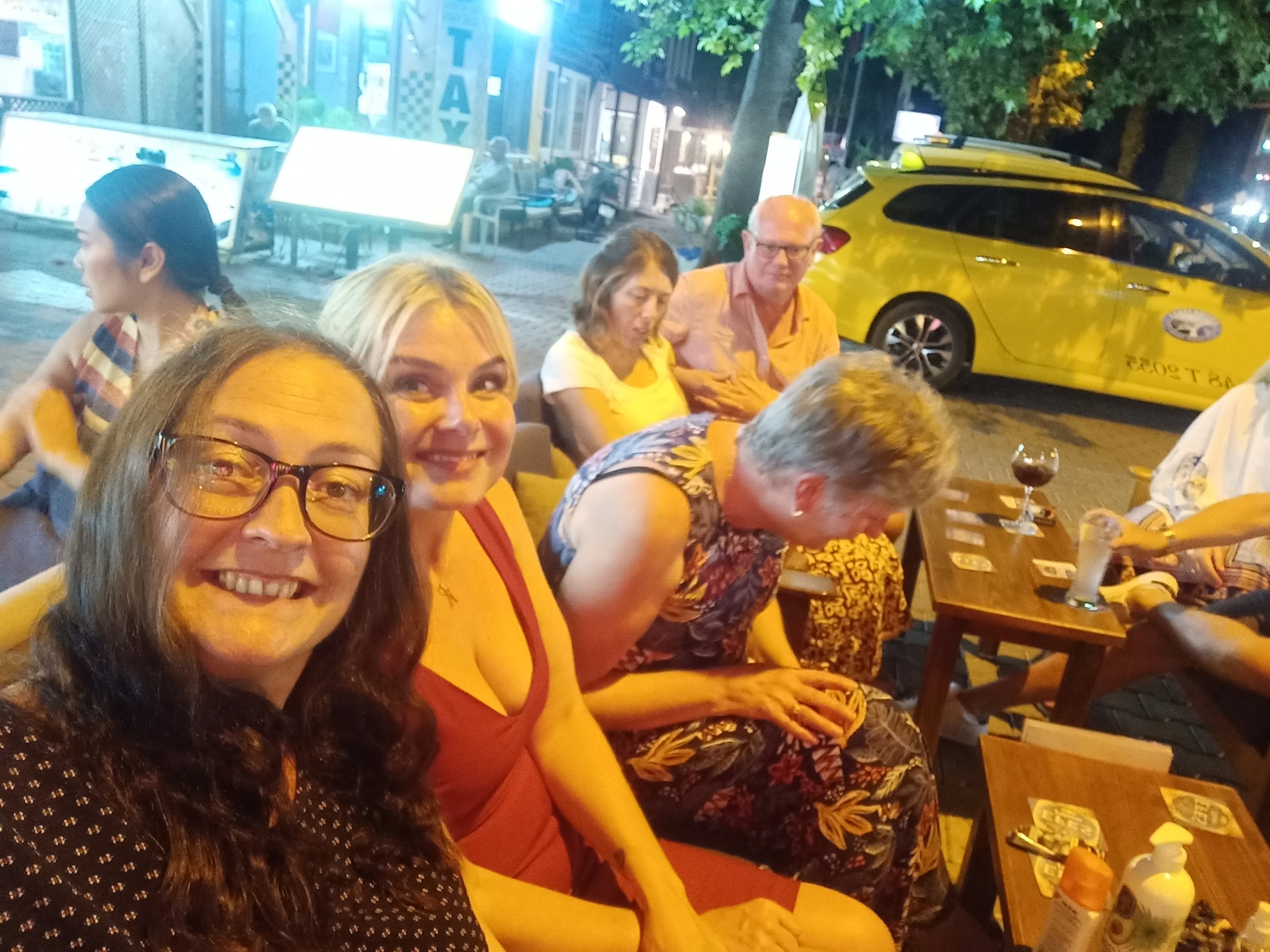 A few of us decided to go in to town for more drinks at Aşkin’s bar, so I nipped home to turn off my curry, Annie and Jamie went to get a shower but me, Ann and Jax went as we were, thinking we were just going for one! Of course it turned in to one of those nights, drinking until 10.30pm, even having a glass of wine and some terrible cheese at Sofra bar with Rebecca, her mom and Jamie’s neighbours. We couldn’t work out if Peter was wearing a pink or orange shirt but we did a test at the clothes shops on the main shopping street, we decided he was wearing coral! It was a good night and I slept well!
