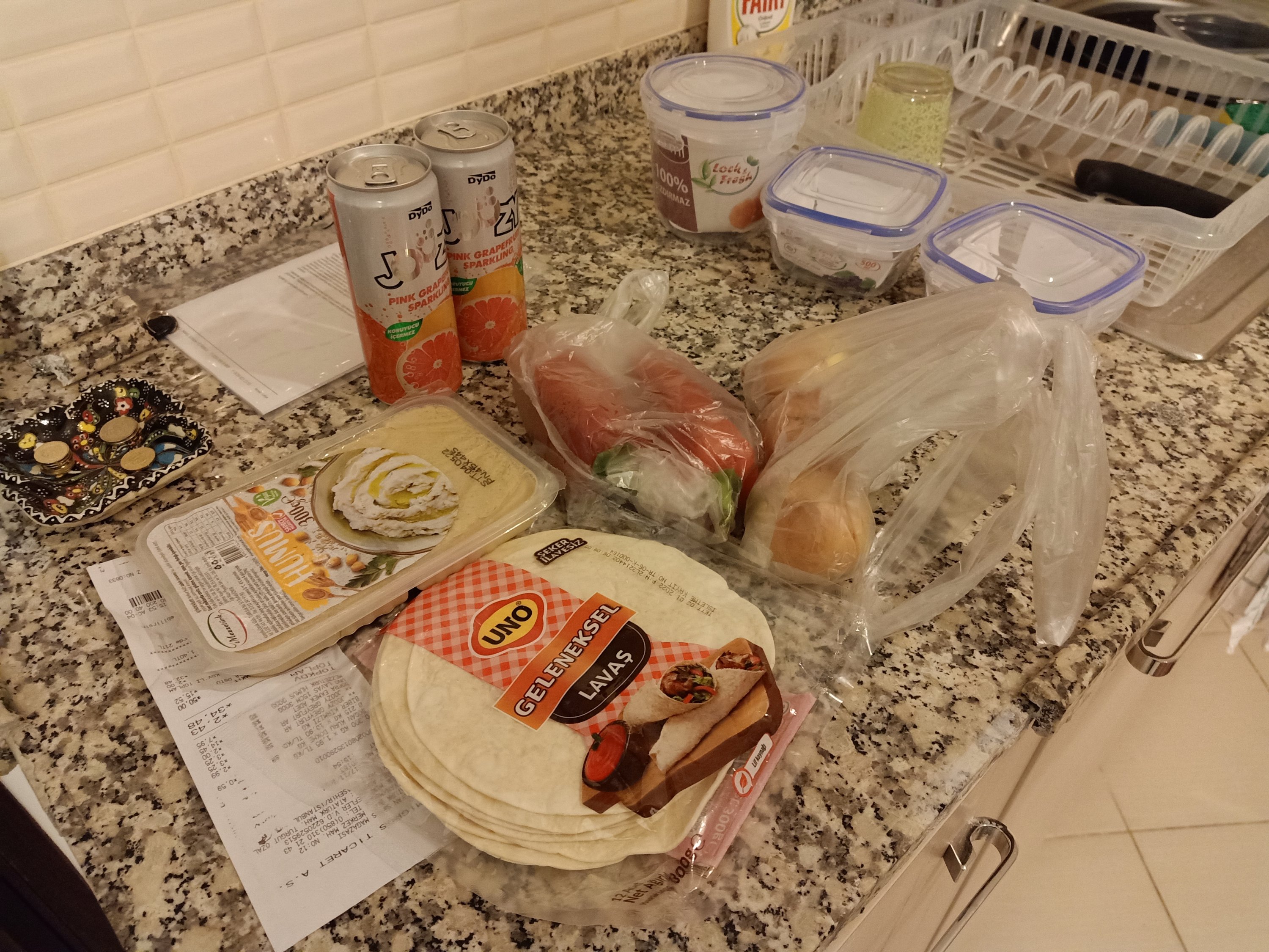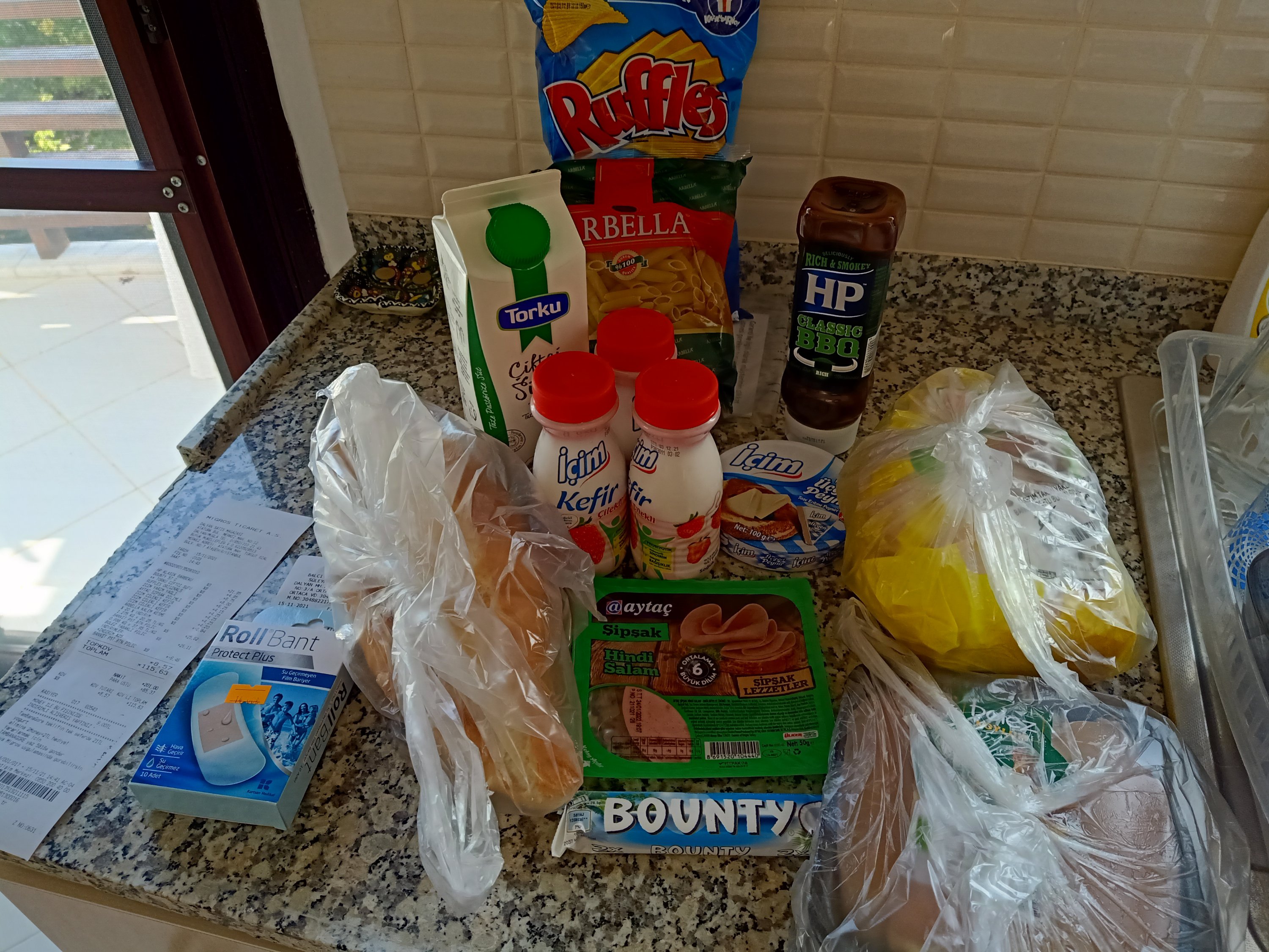 Wednesday 17th November was a totally surprising day for me; I’d had cornflakes for breakfast and after doing a few chores I thought I’d call at the supermarket for a few bits. On my way to Migros I saw that Debbie (Darling) and her friends were in Jiks having a drink and they waved me over. I gestured that I would be there after I’d been in to the shop. I made my purchases as follows (price in lira);