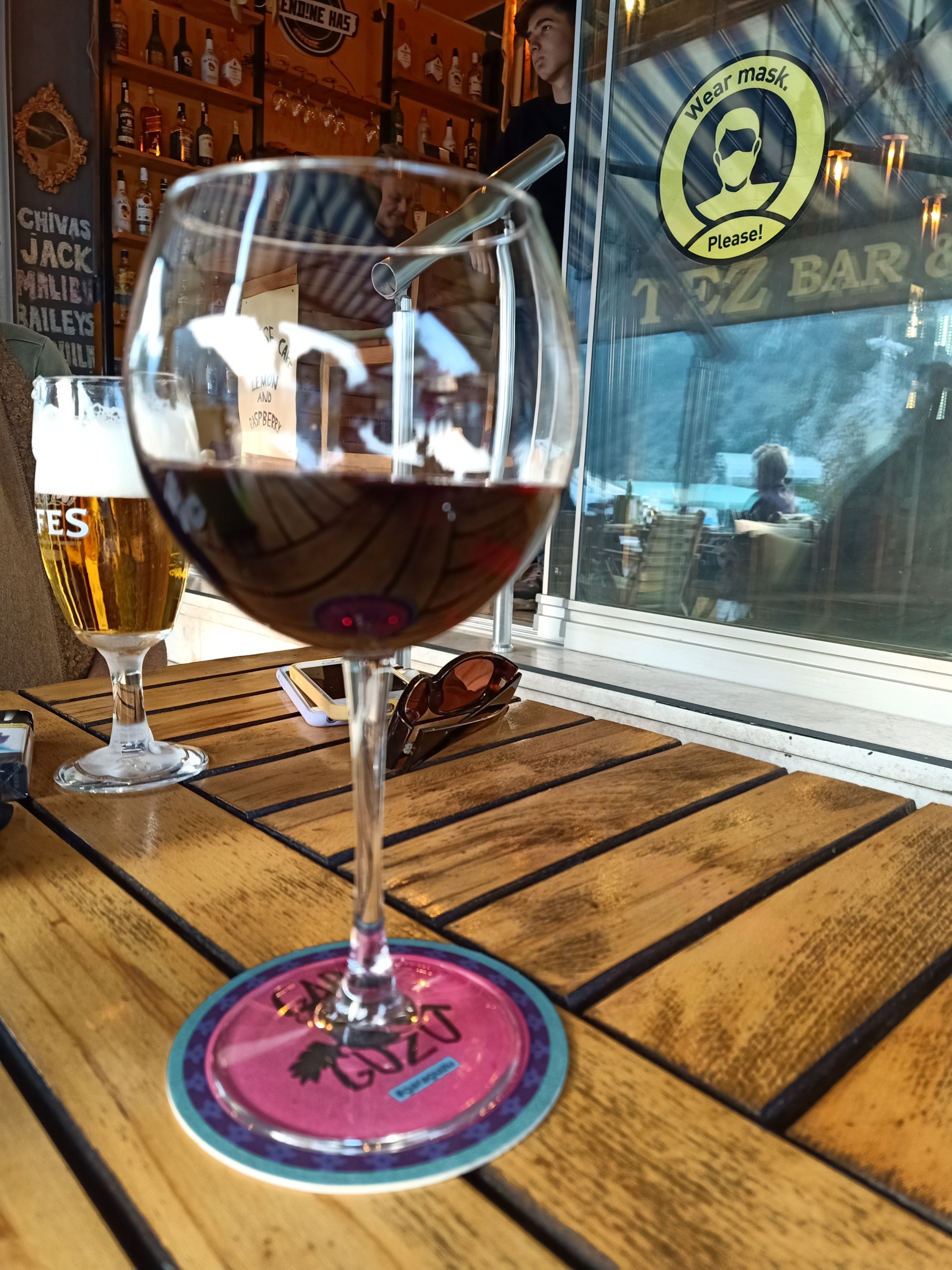 I joined Debbie (Darling)’s gang just as Ann was getting off for her nail appointment but the rest were having another drink so I had a beer with Debbie (Darling), Sue, Fiona and then Brian joined us for a quick coke. Brian is a very interesting man and we had a little chat about Coeliac, gluten intolerance and dermatitis herpetiformis. Brian left and, as Debbie (Darling) had to leave to attend a funeral send off, Sue, Fiona, and I decided our next stop off would be Tez bar, I was dressed for summer and still had my shopping, so wasn’t planning on staying long. After 1 glass of wine I went home with my valid excuse ‘to put my shopping away and get dressed’ for my evening out. Of course I didn’t leave the tipsy ladies by themselves and, once the funeral was over and I was dressed in winter-wear, we had one more at Tez bar before we all went to Lukka bar. It had definitely been an interesting day so far and next I joined Angela, Nick and Ann for a meal and wine at Heybe’s where I just had to have the Işkender kebab (again) as I love it and hadn’t had one for a while. Nick goes mad for one of Donny’s chicken curries which did look good, while Angela and Ann had the chicken schnitzel, also a firm favourite. The food was ace, the live music from Onur was fab and the wine flowed – a bit too much, as it happens! By midnight I had murdered some songs and was well on my way to pointing out how much of an overlooked genius Frank Zappa was while Ann was advocating the more refined Leonard Cohen. I felt sorry for the staff having to listen to us waxing lyrical about how much we loved these artists, but I’m sure they secretly loved Doreen, one of Frank’s finest tracks which I made them listen to. As we left, I forced Ann to come to mine where I was trying to force biscuits and earl grey tea down her – she was not impressed with the hot beverage selection!