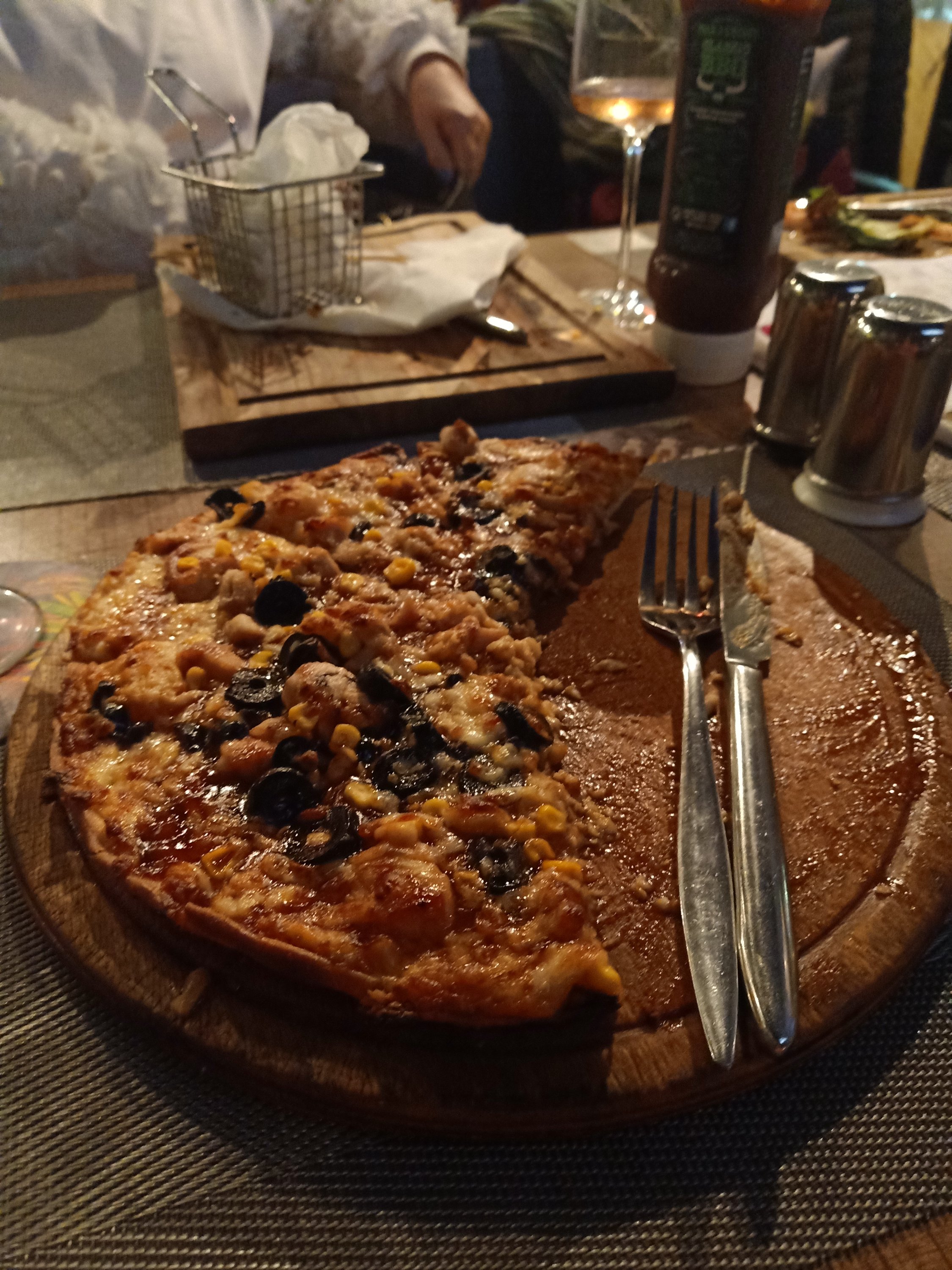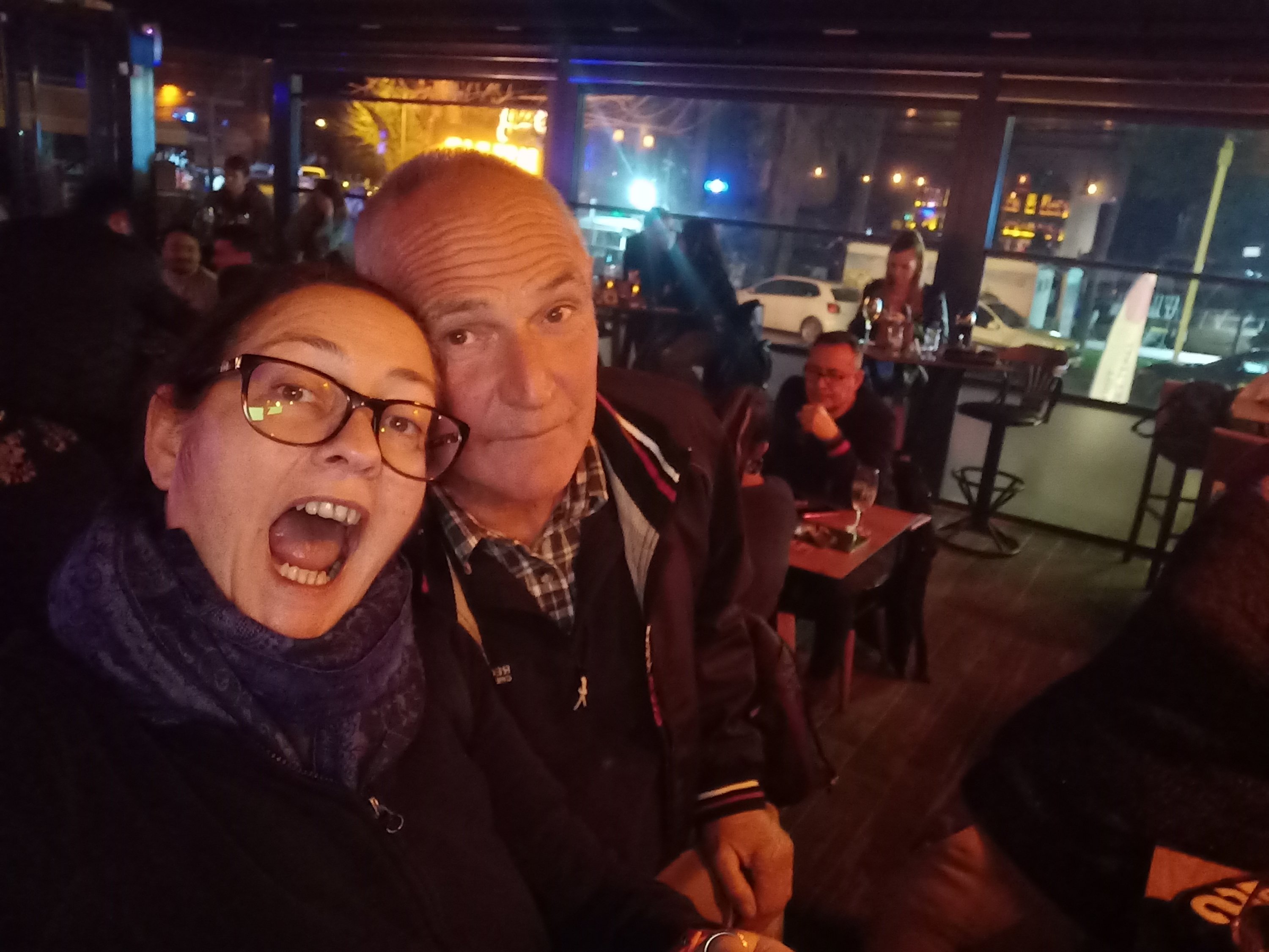 We got to Wonky’s late, Debbie (Darling) had decided not to join us and Sarah was working and on the phone. After one wine we decided to go to Porta Dalya for some dinner and more wine, the place was busy but welcoming. I should have stuck with having the pasta, like Sarah did, but I opted for the chicken shish and Ann had the chicken schnitzel. Mine was fine but I do prefer the chicken and mushroom Alfredo from there. While we were eating Ann said that she had seen Mal earlier who mentioned meeting up with a few of the other expats so we went to a new bar. It wasn’t officially open yet but in we went and had a jolly good night.