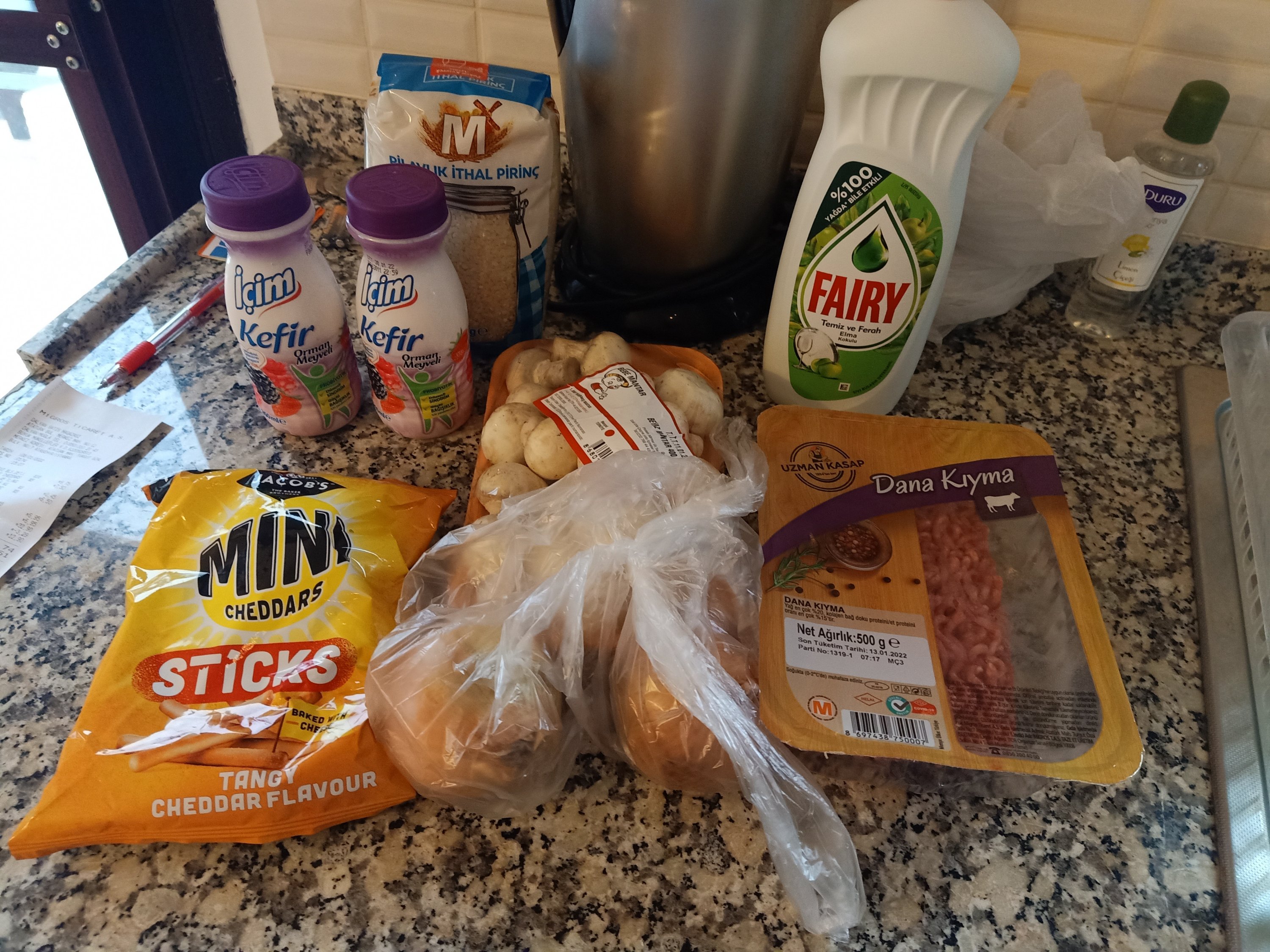 Luckily, I was negative because at 2pm I had a meeting with a decorator. This is when I noticed I was missing a glove and that my boots were a mess from walking through the roadworks after the party at Sofra bar at the weekend. In the afternoon I went to Migros for some shopping, where I bought the following: