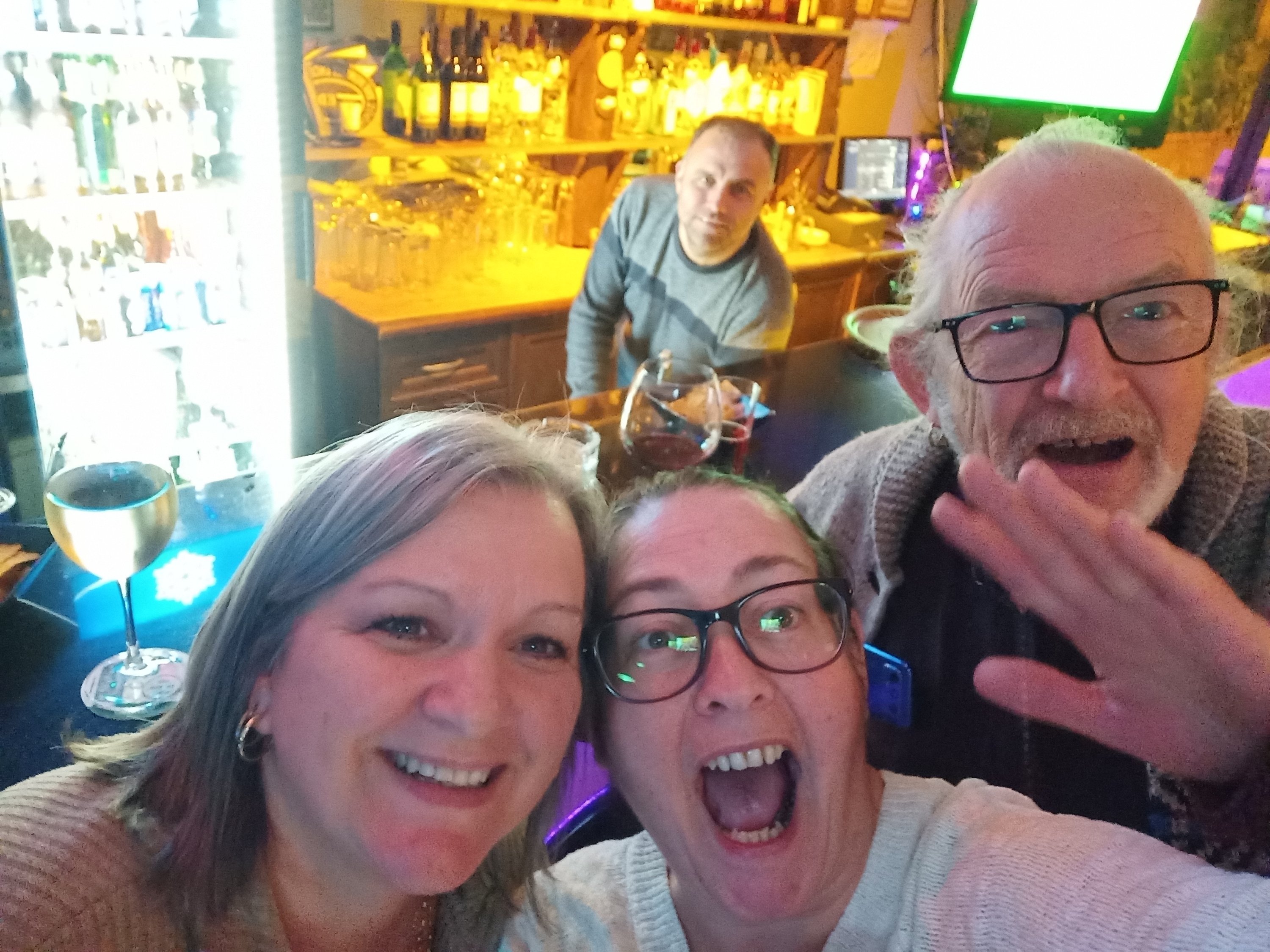 The route was easy and flat so we got there in about 20 minutes, greeted by Andy, Julie and the 2 cute dogs. We had a cup of tea and an array of pastries, biscuits and cakes which I indulged in. I was meant to be leaving in time for the singing group gathering at 2pm but after mention of a potential positive case and the mention of wine I decided not to go. Instead we proceeded to sit in the sun, by the pool chatting, drinking and generally having a good old laugh with fellow northerners!
