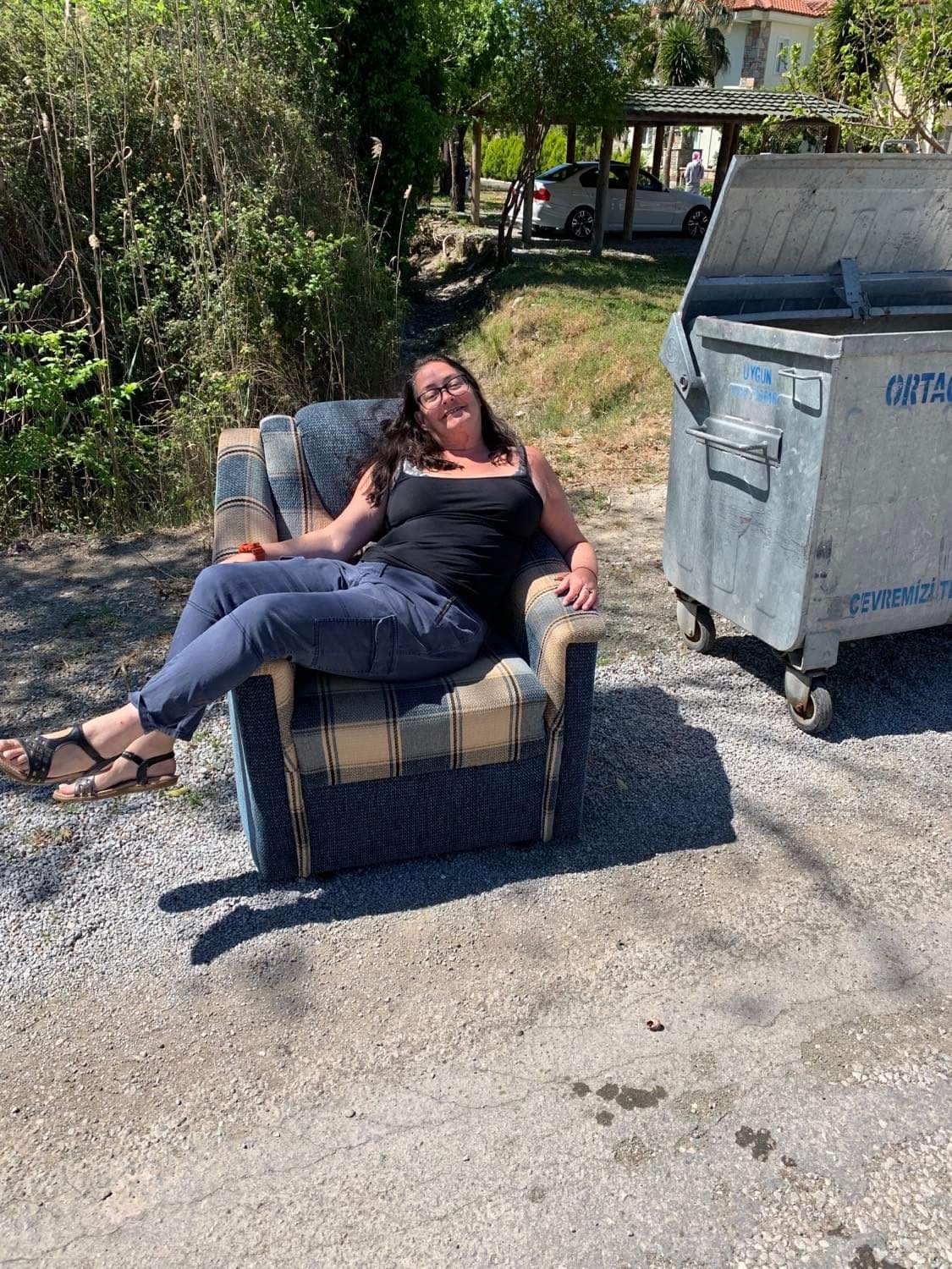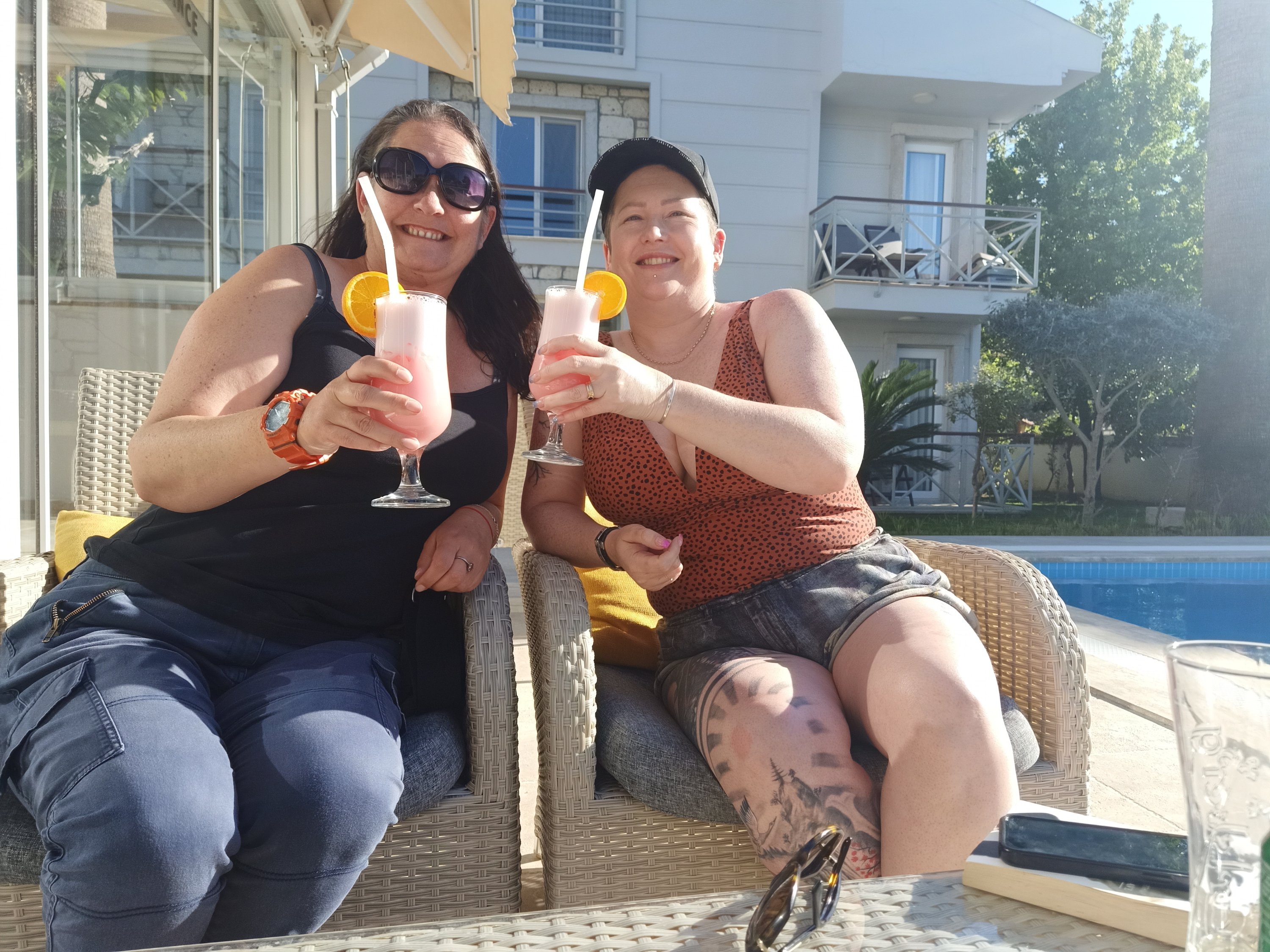 The first job was to go over to my parents’ place to put the curtains back up in the living area. Mark gave me a lift in his buggy and helped my parents out with a couple of jobs I couldn’t do. Once the curtains were up and the electric turned on, we carried the unwanted armchair down the stairs and put it with the unwanted curtains at the side of the bin. It was hot and I was inappropriately dressed in thick trousers. As soon as we put the armchair on the ground we both went to sit on it for a rest! I didn’t have my phone with me but I insisted on Mark taking photos of us in an armchair beside the communal bin for a laugh – another first for me! We felt the need to have a cheeky shandy at Jiks where we bumped in to Roy and his mate Kev. We just had the one as Mark had to go shopping and I had to get to Hotel Dalyance. When I arrived, Louisa was on a chair beside the pool, reading her book, Linda and Alex were over the other side of the pool on the sun loungers.