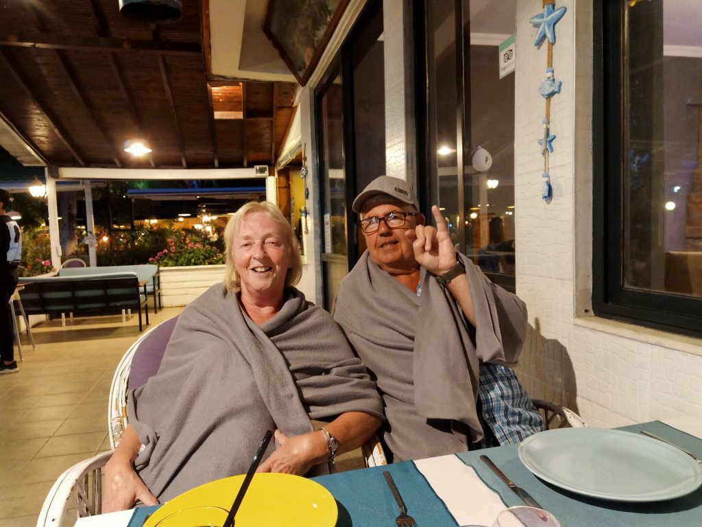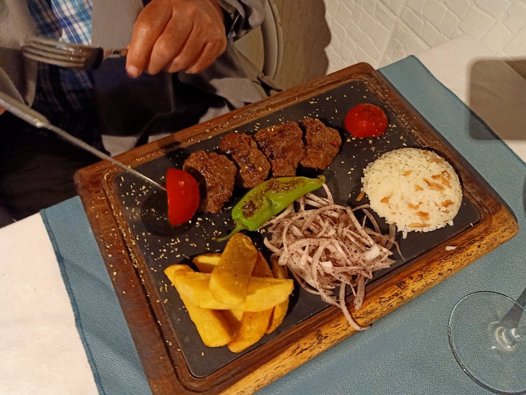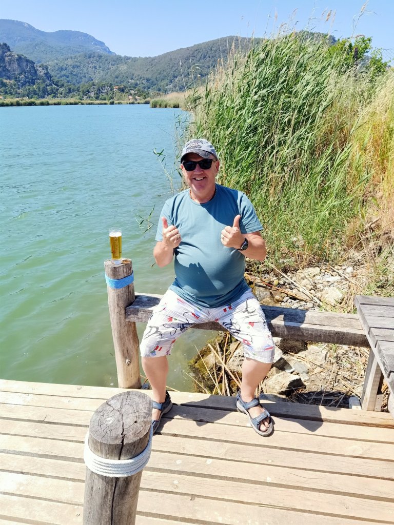 After our feast we did the reverse journey and my stomach started to have a bit of a problem, despite me avoiding the pastries. Luckily my bicycle was next to the ferry stop and Kate gave me her key so I could cycle back to their’s to go to the toilet. Everyone else had been invited over too, so they took a slow walk back while I ended up waking up Phoebe who was in ‘my room’. Mark was a great host, making sure everyone had a cold beer or glass of wine, he wiped down chairs and arranged them on the shaded terrace, next to the pool. My Mom was excited to try out the sex swing and we also all had a walk down to the jetty to admire the river views. After a few drinks we decided to get taxis in to town, I left Bluey2, and we went for more drinks at Sofra bar. Strangely, and probably because of my stomach, I only had 1 beer at Mark and Kate’s then 2 pints at Sofra. The men seemed to have a thirst on and were racing through the beers, while pretending to be watching the football. Mark, Kate, Daisy and Phoebe had to go to eat at Balıkcim around 8.30pm because it was their last night in Dalyan and the rest of us discussed dinner plans. Vanessa was hungry and Matt fancied River House for Sunday dinner, my parents wanted to join them. I had still got a dodgy tum so was wary but eventually agreed to go join Matt and Vanessa who had already gone over there. When we got to River House Matt and Vanessa were nowhere to be seen and I text her to ask where they were. My parents and I sat down and ordered drinks, Mom and I had a soft drink but Dad went on to red wine and was quite drunk. We didn’t hear back from Vanessa, Matt and her had gone home because Matt was also drunk and had not wanted to leave the bar. Dad said he didn’t want to leave Sofra as he tucked in to his meatballs, mom tried to enjoy her lamb chops but was annoyed with dad and my Sunday dinner wasn’t amazing. It was very potato heavy and they had sprinkled an unnecessary paprika powder over the whole thing. It was cheaper than anywhere else in town though so would be fine if there weren’t other, better, Sunday dinners available in Dalyan. I asked to take my apple pie home as I wasn’t too hungry and then we walked home, with Dad in a bit of a tangle.