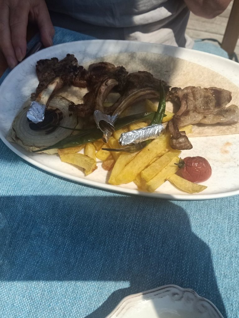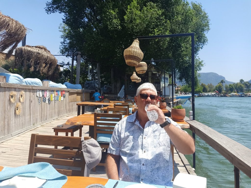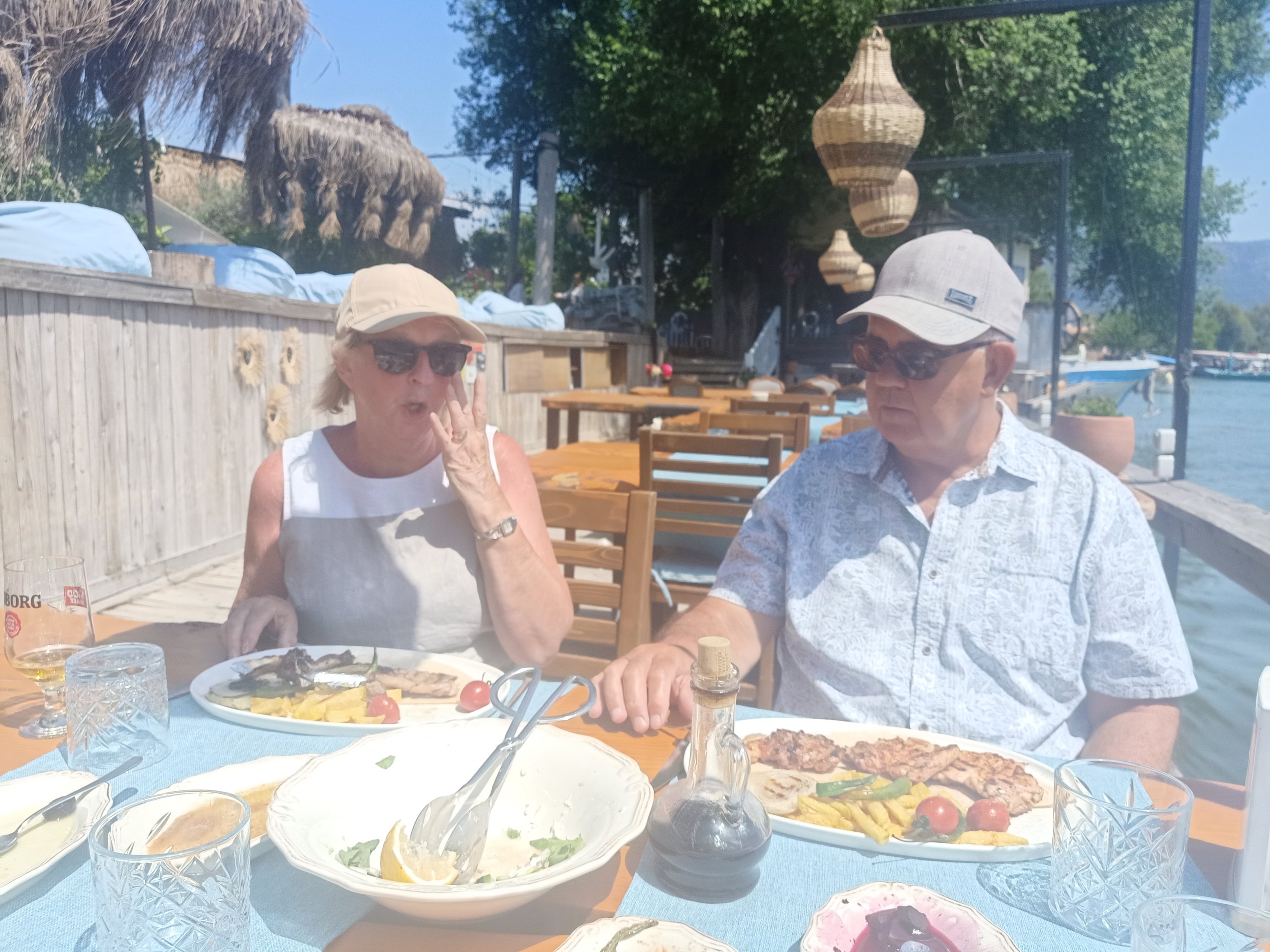 My parents had a walk over to Mark and Kate’s to surprise me with another visit. The 3 of us chose to try Dalyan Bungalows, which we had noticed from the ferry last week. It’s a fairly new place and we thought we’d give it a go for the afternoon. Surprisingly, beers were only 40 lira (£2 at the time) and the menu was quite varied. Mom had beer, I had an orange juice and Dad ordered a large white wine. This was 80 lira a glass and also confused things because any subsequent wines we ordered were just the standard size but still cost 80 lira. My parents ordered a main dish but I wasn’t that hungry because it was so hot. I ordered a couple of mezes as a main and the waiter asked if we wanted to share a salad. This came with the starters but it went on the bill as 80 lira as well, which is a little pricey for a salad we didn’t really choose the ingredients of.