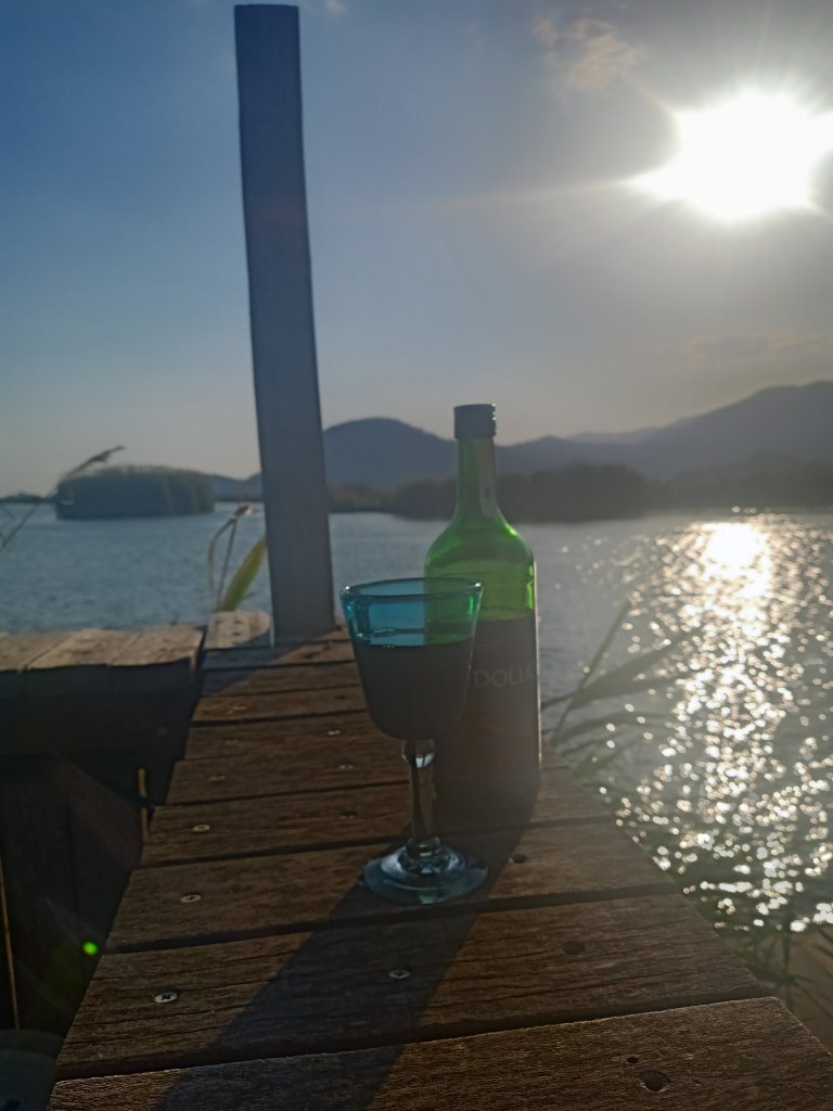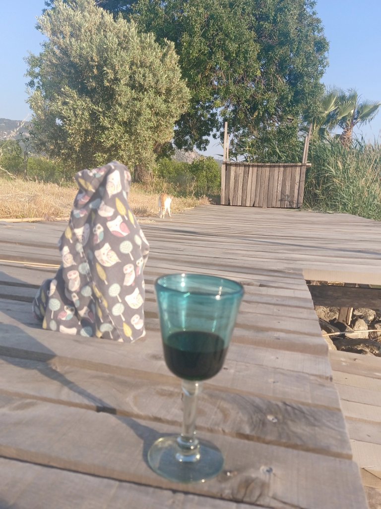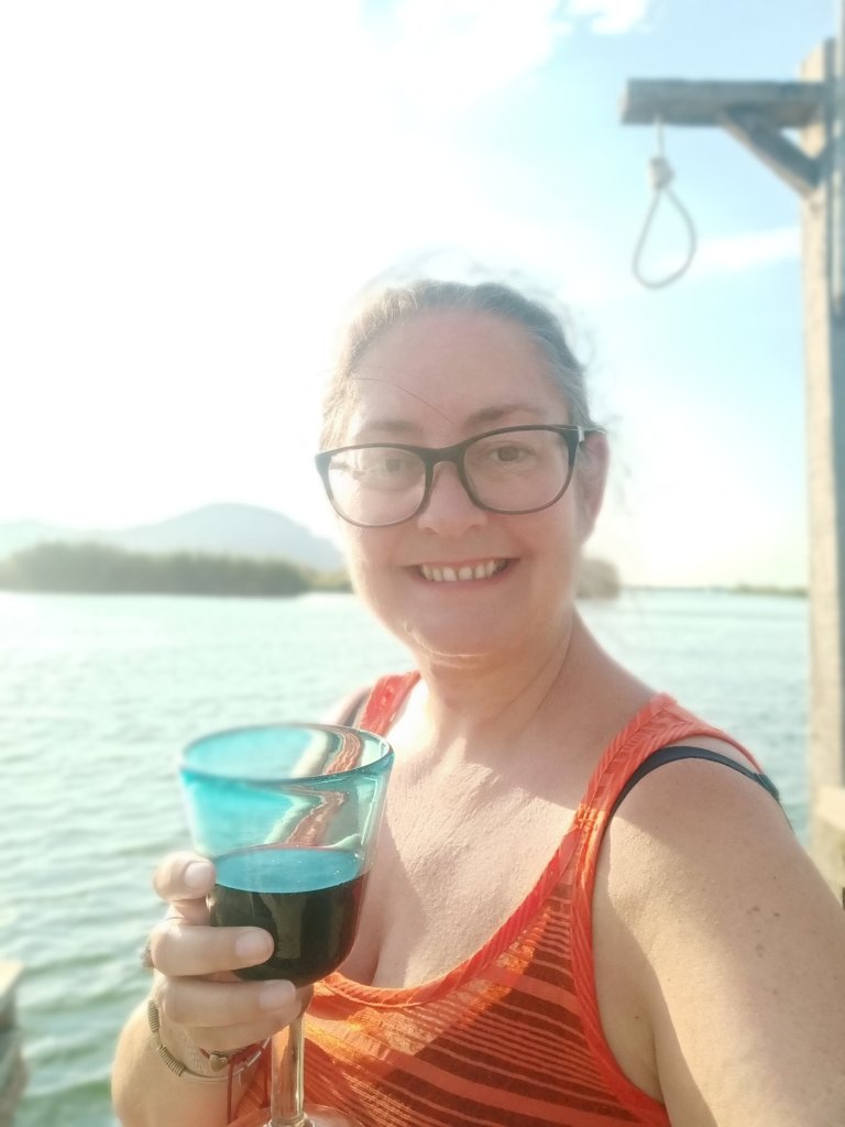 I was back in the sex swing by 5pm and word must have got out with the neighbourhood cats that there may be some treats going. An imposter cat who looked like it could be Casha’s mother had popped over to get some attention. By 6pm I was watching the sun go down on the jetty with a glass of red wine.