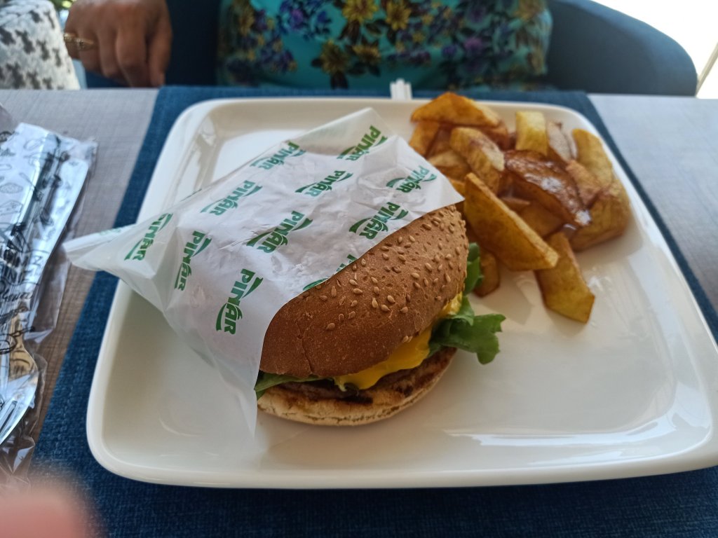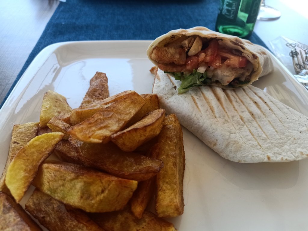 At 5am, on Wednesday 18th May, I got up and cycled back ‘home’ to Mark and Kate’s so that I would be back in time for breakfast for their cats. I also messaged Des to let him know that he had to be back on house and cat sitting duty for tonight as I already had my hands full. Mark and Kate were due back late tonight and I planned to have left by the time they arrived back, so they would have the house to themselves. I also had plans to meet Dick, a mate from England, who was bringing me a stash of sausage and cheese! My first task was to cycle over to Captain Caveman’s apartment to take the washing out and pick up my notes for Turkish class. Michelle, the tortoise, was under a sun lounger near the pool and the roses outside a neighbour’s apartment were looking lovely. Vanessa came to call for me before Turkish class and she got to meet Michelle, we even tried again to feed the tortoise but she must not have been hungry. Turkish class was good as we did more telling the time, where it was apparent that telling the time in English was confusing enough. Vanessa and I decided to stay for lunch at our new Turkish class venue, Casablanca hotel. I ordered a chicken wrap, Vanessa a cheese burger, both came with homemade chips and we enjoyed our meals.
