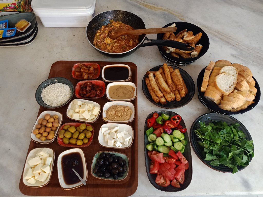 I was up early on Friday 20th May to go for breakfast with Nusret, Gonca and Yaşar at Retro bar and Smyrna Hotel. My new Turkish family were so happy to see me but disappointed that my parents hadn’t been able to come. The food, prepared by Yaşar and Gonca, was as incredible as always and I almost felt guilty tucking in to it as others were busy working. Joining us for breakfast were 2 new faces and one guy spoke decent English and was fitting the front of the hotel with a sweet section. They were going to be selling baklava, Turkish delight and künefe, amongst other things and it was looking good. I don’t eat eggs or tomatoes so it is always a little embarrassing when eating Turkish breakfast as these are essential ingredients, but they know me by now. Nusret insisted on us having the best cheeses, including one from his mother’s home town – it was my favourite one. Yaşar had made home made plum jam that was delicious and I felt greedy with the fresh simit and cheese rolls. While I was there, it became apparent that there was a bit of an issue with some building work that had been completed and they were all talking about it. I asked about it and Nusret showed me in to the house so I could see for myself. The builder had bricked up a doorway but the door and window was locked from the inside, leaving a room which no one could access – how funny.
