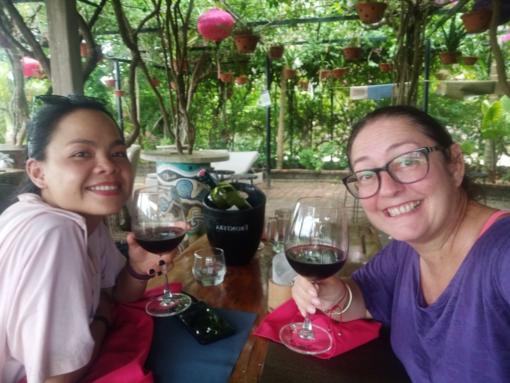 I was excited to find we had been upgraded to a snazzy 2 bedroom apartment at Euphoria. I roughly knew the area too so, after unpacking and taking some photos, I had a walk to the shopping centre next to Fraser Suites. I was surprised to see that the Annam Gourmet shop sold Yorkshire tea bags but 80 were 450,000vnd (£16.20). I found that wine was cheaper and bought 2 bottles of screw top red and some croissants for breakfast tomorrow. I wasn’t sure if I would be eating out tonight but noticed the pizza place had 2 for 1 offers on Wednesdays which was good.