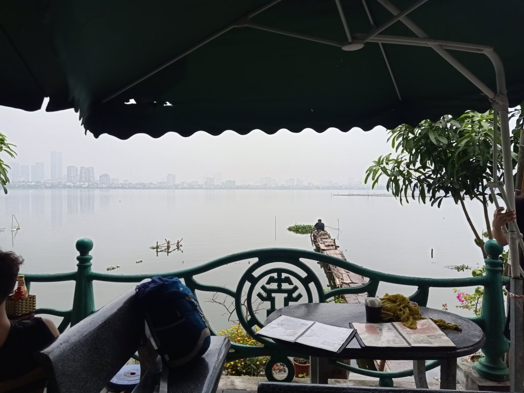 After breakfast I got ready and we decided to go over to West Lake so we could grab a drink at a cafe. Our first stop was at Mystic cafe where they put up a parasol for us to sit by the lake. It was hazy but hot and I borrowed a sun hat from Kat. I had a fresh iced tea and the menu looked good so we ordered lunch there. I had a chicken taco and Kat had chicken salad, both were great value for money. Next we stopped off at Huy Long cafe on a nice corner spot, Kat had a coffee and I had a fresh lemon juice.