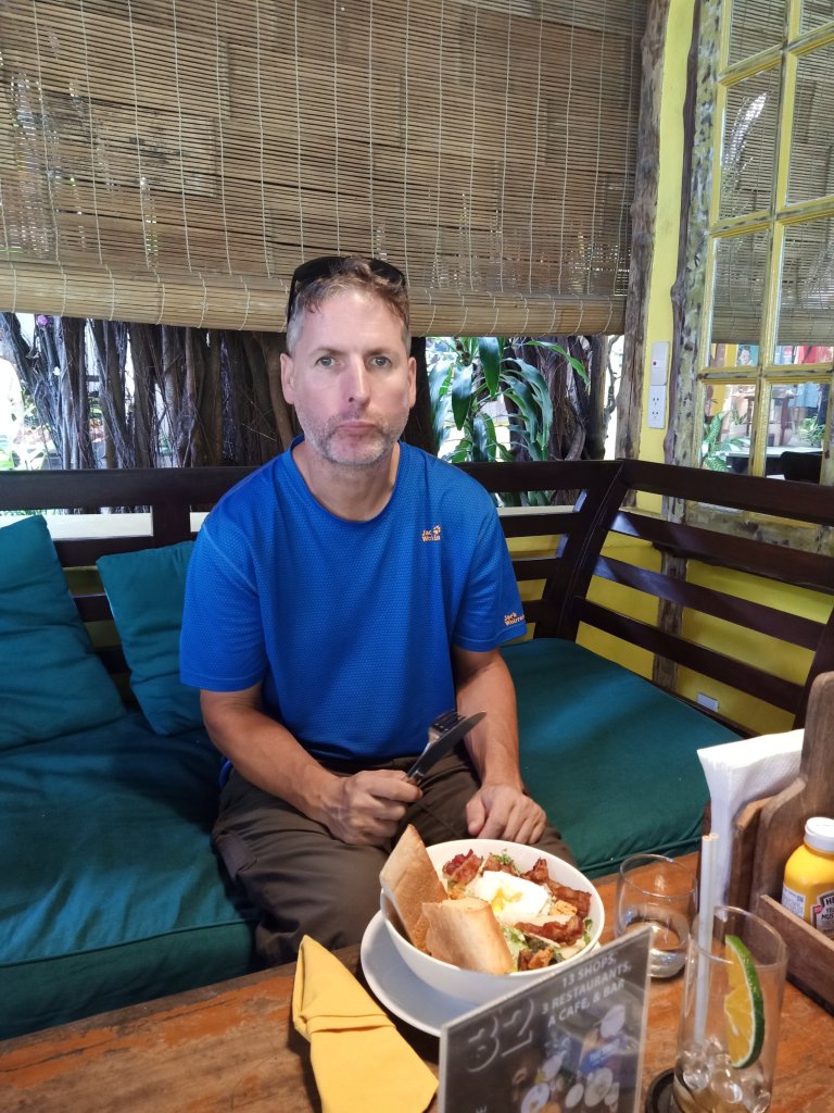 While Captain Caveman ordered a Caesar salad and a smoothie I ordered chicken fried rice and a draft Platinum beer. When Captain Caveman’s salad arrived it had poached eggs on which I commented was unusual. Our first argument happened because now Captain Caveman was insisting that there is always eggs in a Caeser salad. I agreed that eggs were in the dressing but I had never seen cooked/poached eggs in one, but of course he had to argue the point until I really couldn’t care less if it did or not. I could see I was going to have my work cut out for me as I’d temporarily forgotten how much Captain Caveman likes to argue and be a know-it-all. I still maintain he is wrong but I just said ‘lovely’ then drank my beer and ate my chicken fried rice without speaking. My food was ok, it didn’t have much flavour to it, but the beer was good so I had another one. We were sat in the shade, with a fan on, it was only 30°C but I was melting – the humidity was a bugger!