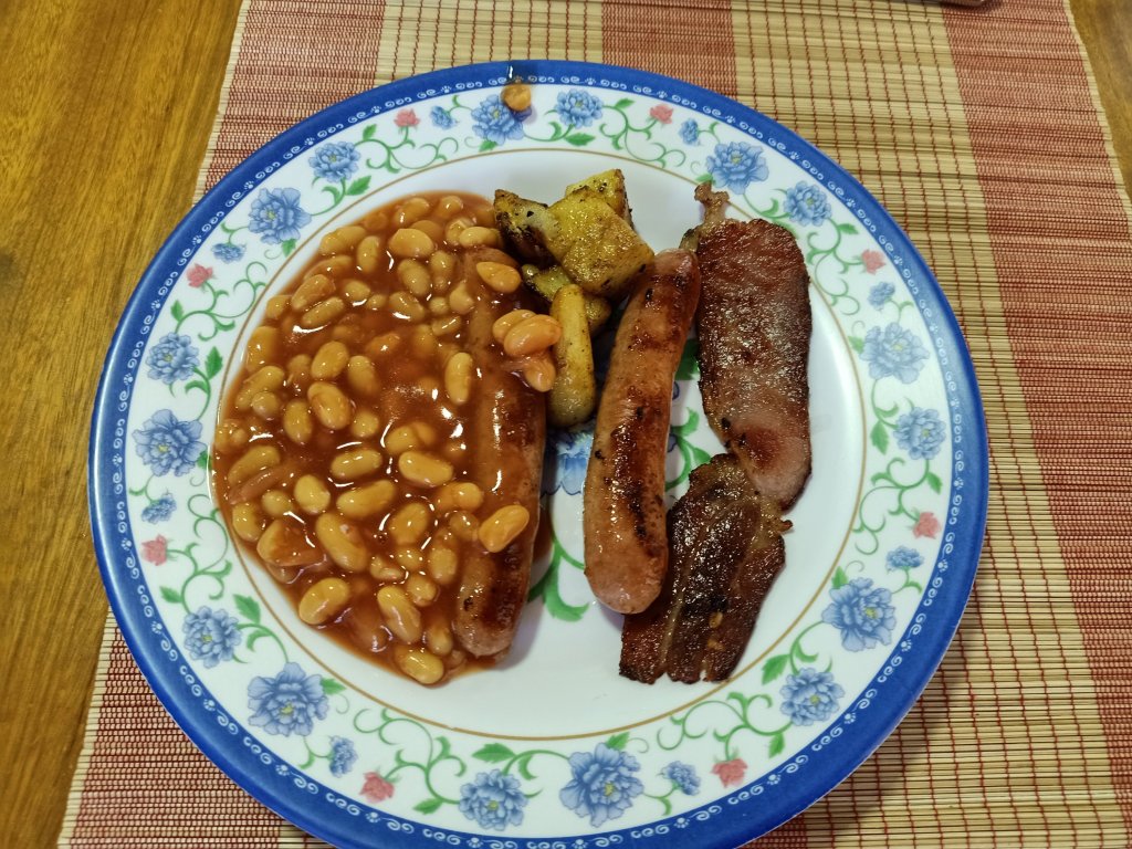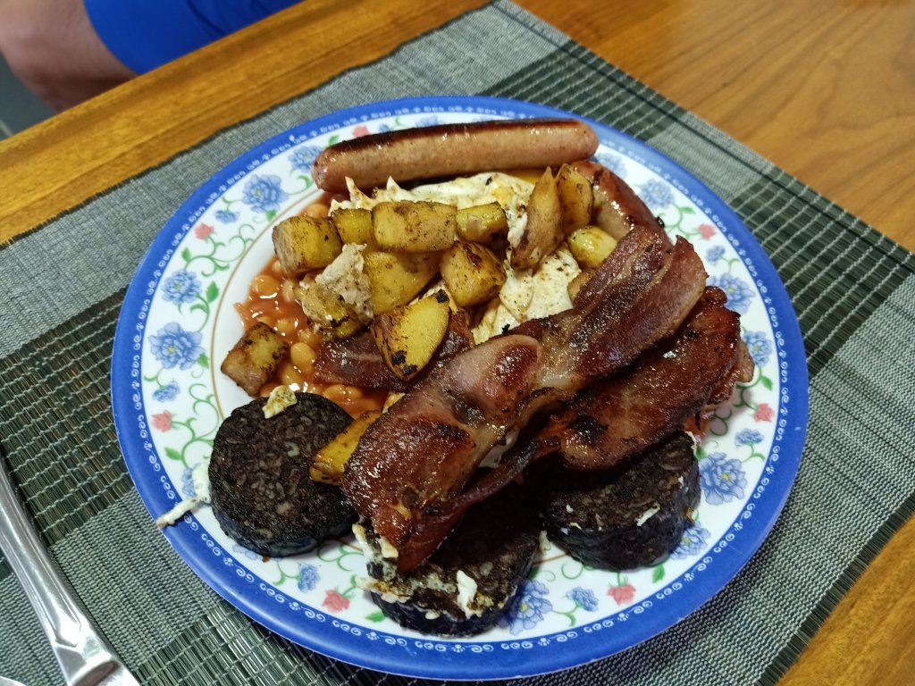 We had a cooked breakfast, which I started but Captain Caveman took over cooking as he wanted to add black pudding and eggs to his. The sausages and bacon were from Stu and were really tasty, Captain Caveman’s plate was very full.