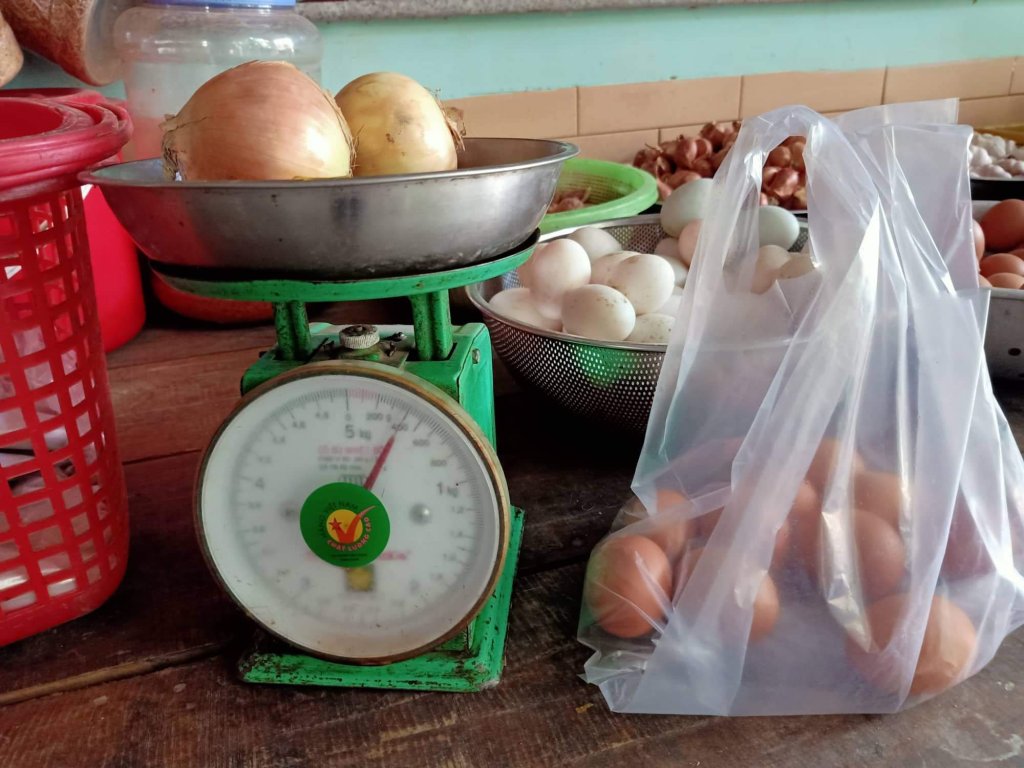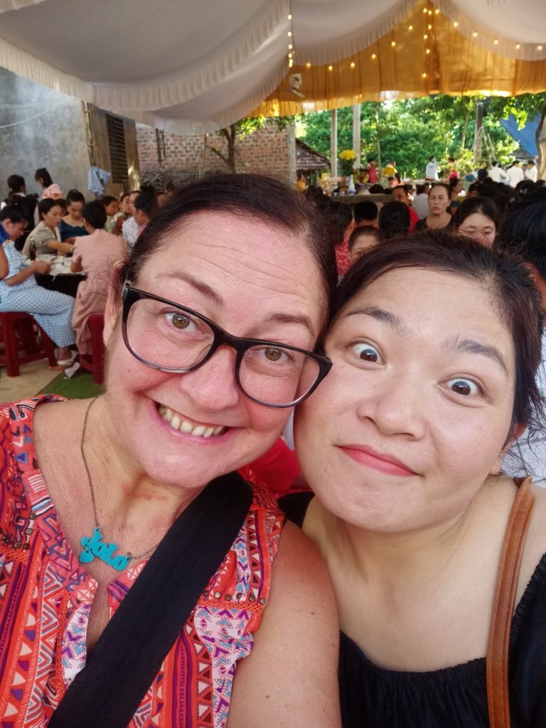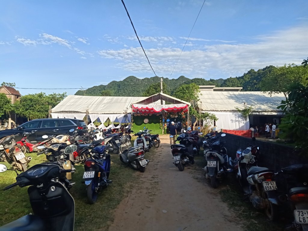 At 3.30pm Captain Caveman was getting ready to set off to Phong Nha as he had more errands to run before Bien’s wedding. I put a dress on but wore cycling shorts beneath it for riding on the back of the motorbike. We went to Funny Monkeys to collect peanut butter, Captain Caveman wears a full face helmet so it was no problem for him to drive straight in to a large overhanging tree with thorns and flowers on. I wasn’t best pleased to get scratched but he just argued the plant wasn’t spikey, I shoved a thorny branch in front of his face! We picked up the home made peanut butter and was on to our next stop. A small stall outside a local’s house where he’d tried to buy onions and eggs yesterday but could see no one at home to pay. Captain Caveman had took a photo of the items on the scales yesterday so he could pay today but they were closed. Our next stop was Oxalis Home, where I’d not been since before the pandemic. Captain Caveman had a soft drink and I had a beer. It was very busy with guests returning from tours.