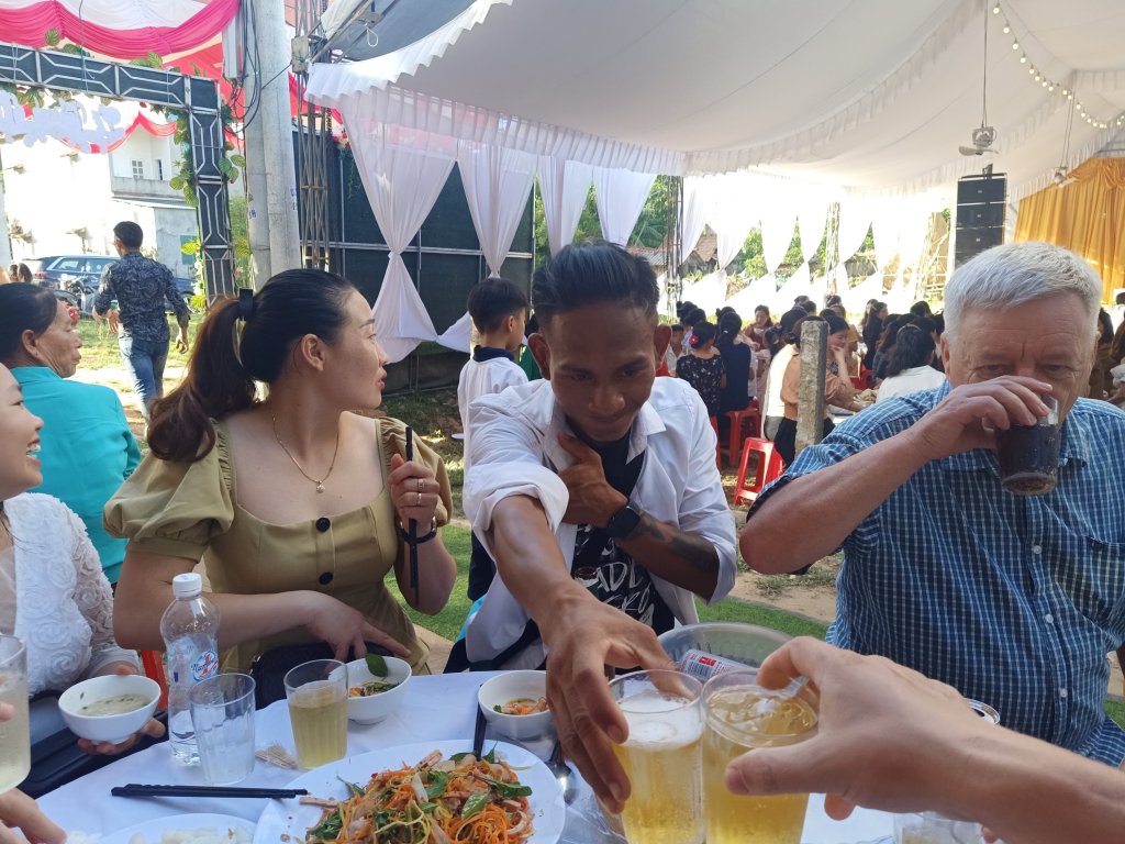 We carried on to the wedding and were seated with a few other familiar faces. Chung and Uy were so pleased to see us and gave us beer with ice straight away.