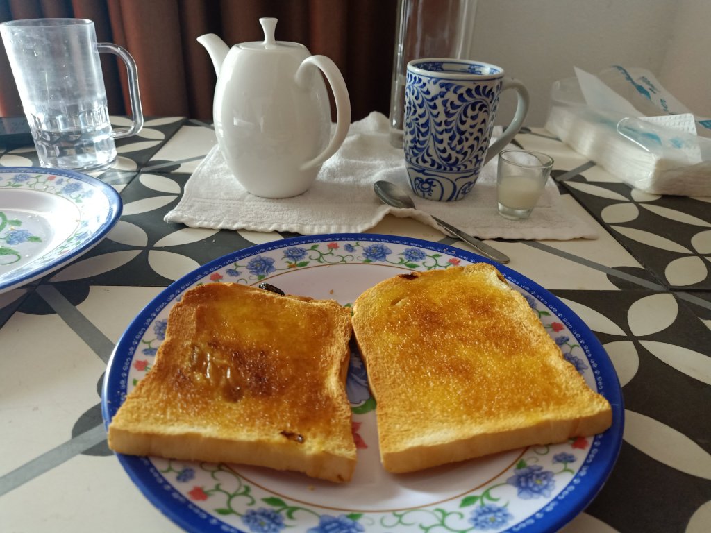 On Monday 15th August, we were wondering what to do with the massive bunch of flowers that were in our sink. Captain Caveman went outside to find the housekeeping staff to ask for a vase, they took the flowers and said they would sort them out. What we got back in a small vase was only a portion of the flowers, we don’t know what happened to the rest but I never saw them again. Flowers aren’t treated in the same way they are back home and they probably just got shared in to the other rooms or binned, which was a shame. We had toasted teacake loaf for breakfast which is my new favourite.