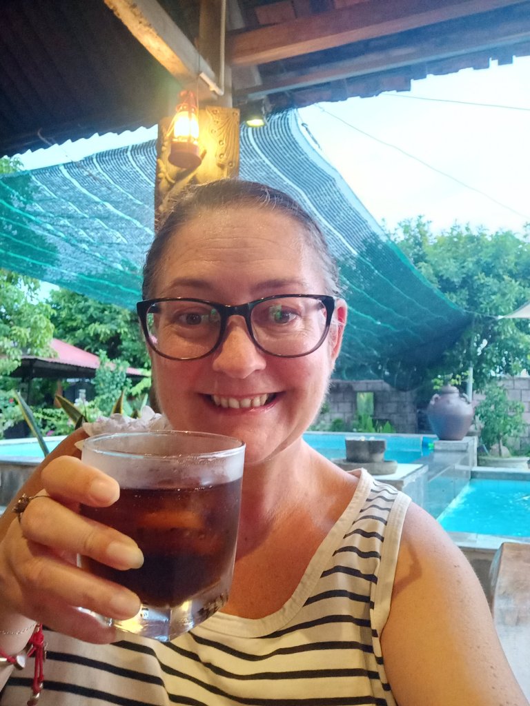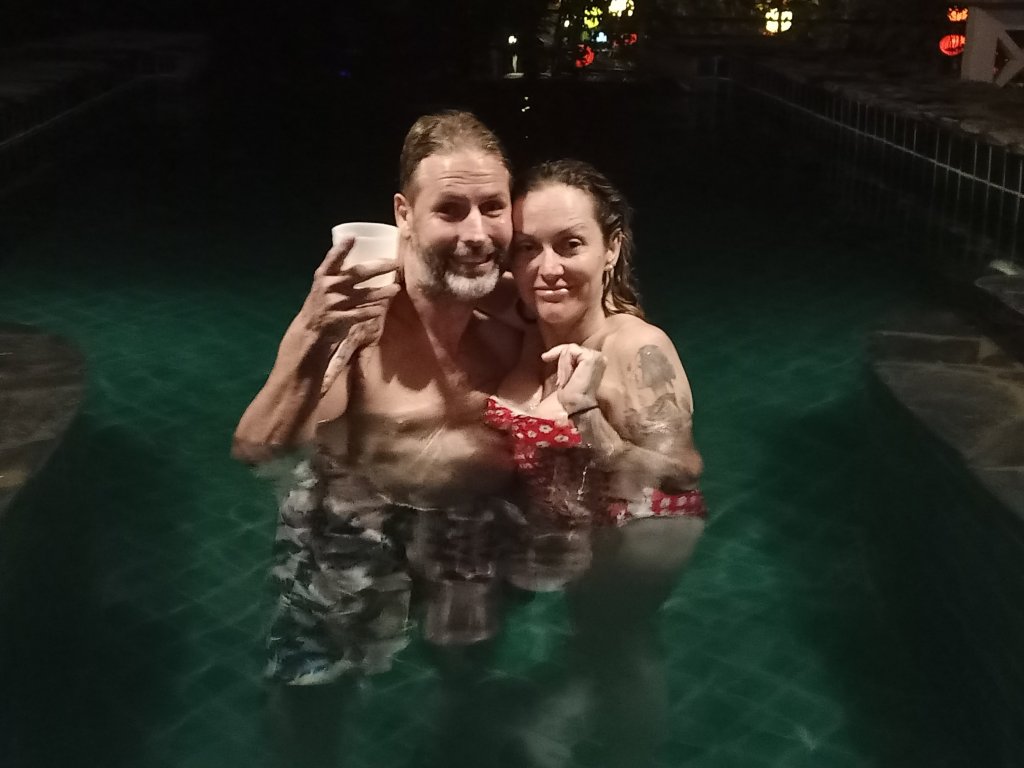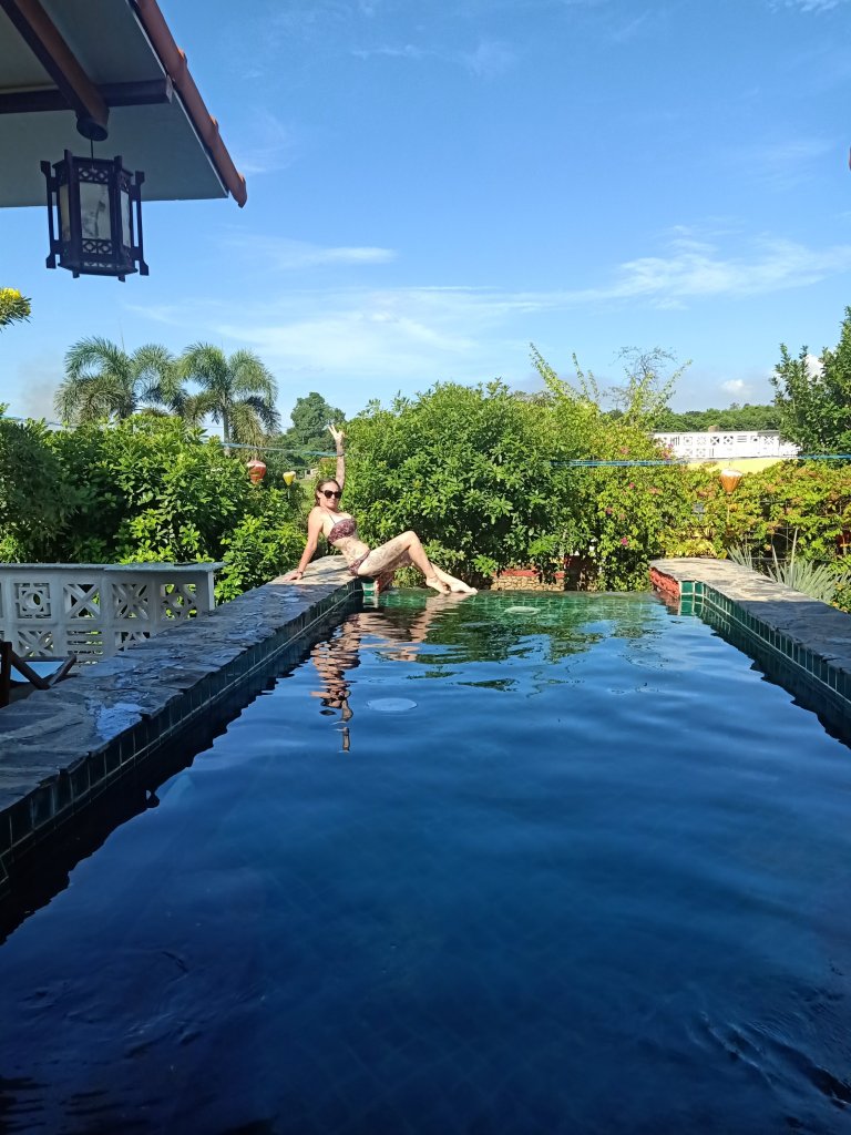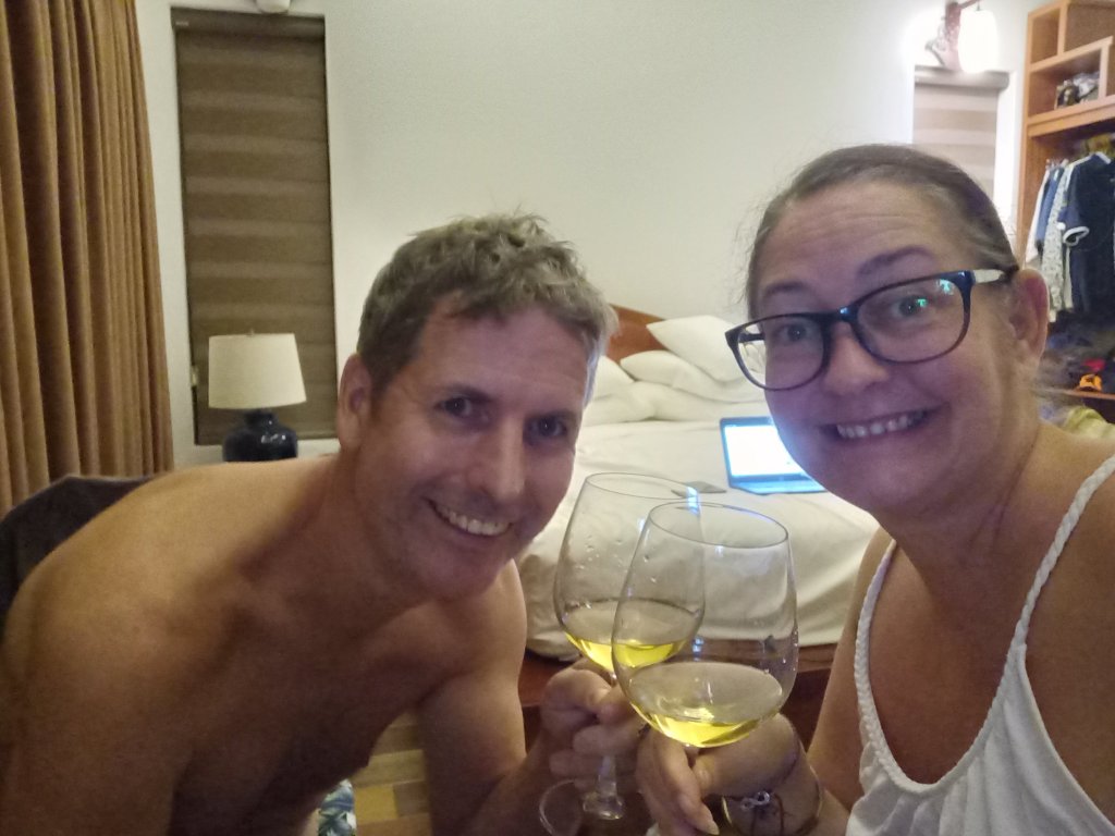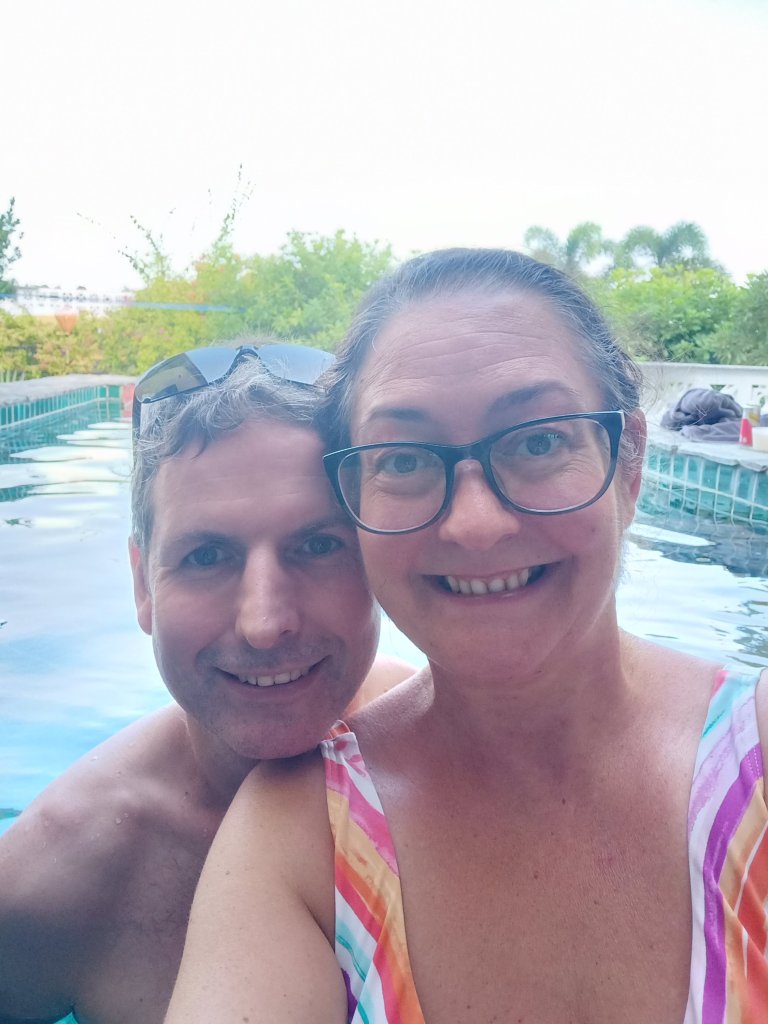 By 5.20pm we decided Caroline should borrow my more modest swimsuit and we should go for happy hour at the Farmstay. We were already pretty happy but Caroline wanted to meet Andrew and Trang there, so off we went in the jeep. We had a swim, several rum and cokes were had and we ordered pizzas. After a few more drinks we decided to go back to Elements as Captain Caveman was on his way back from his gala dinner. He’d got back late from his last tour so we hadn’t seen him this afternoon. We asked for a driver and the jeep to take us home. As we waited there was another guest waiting to go back to Elements so we shared the jeep ride back with him.