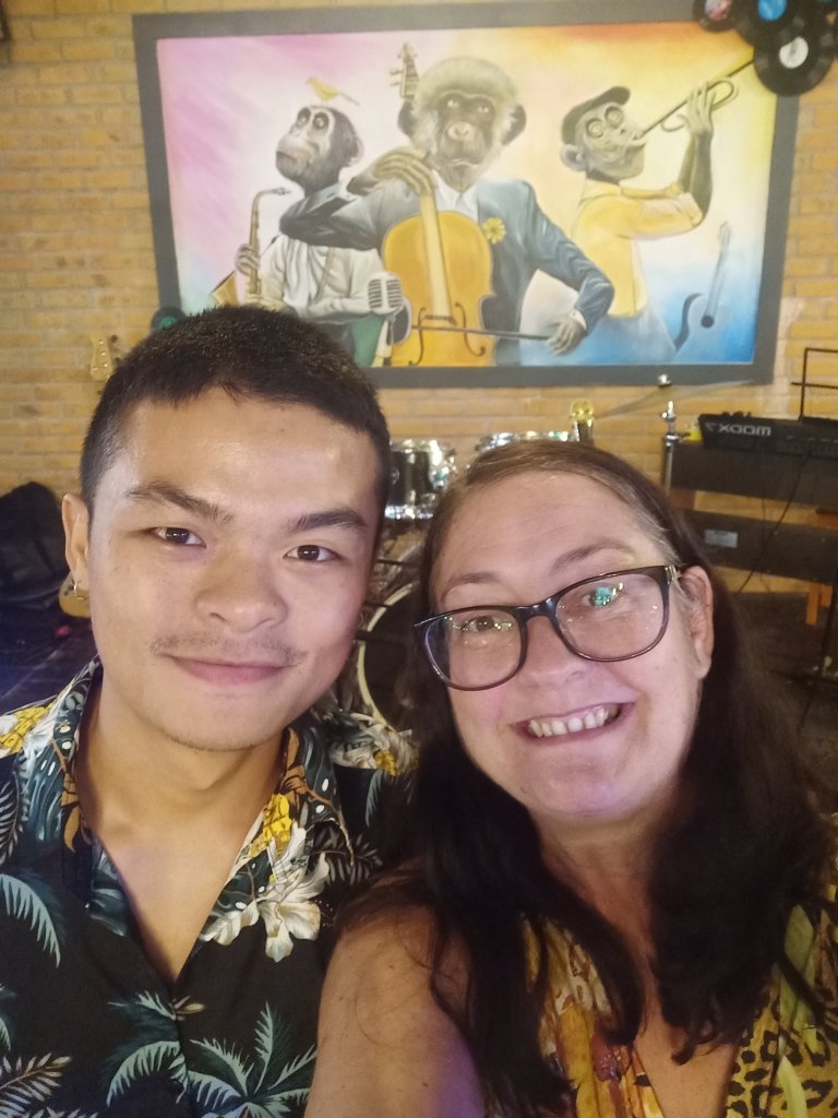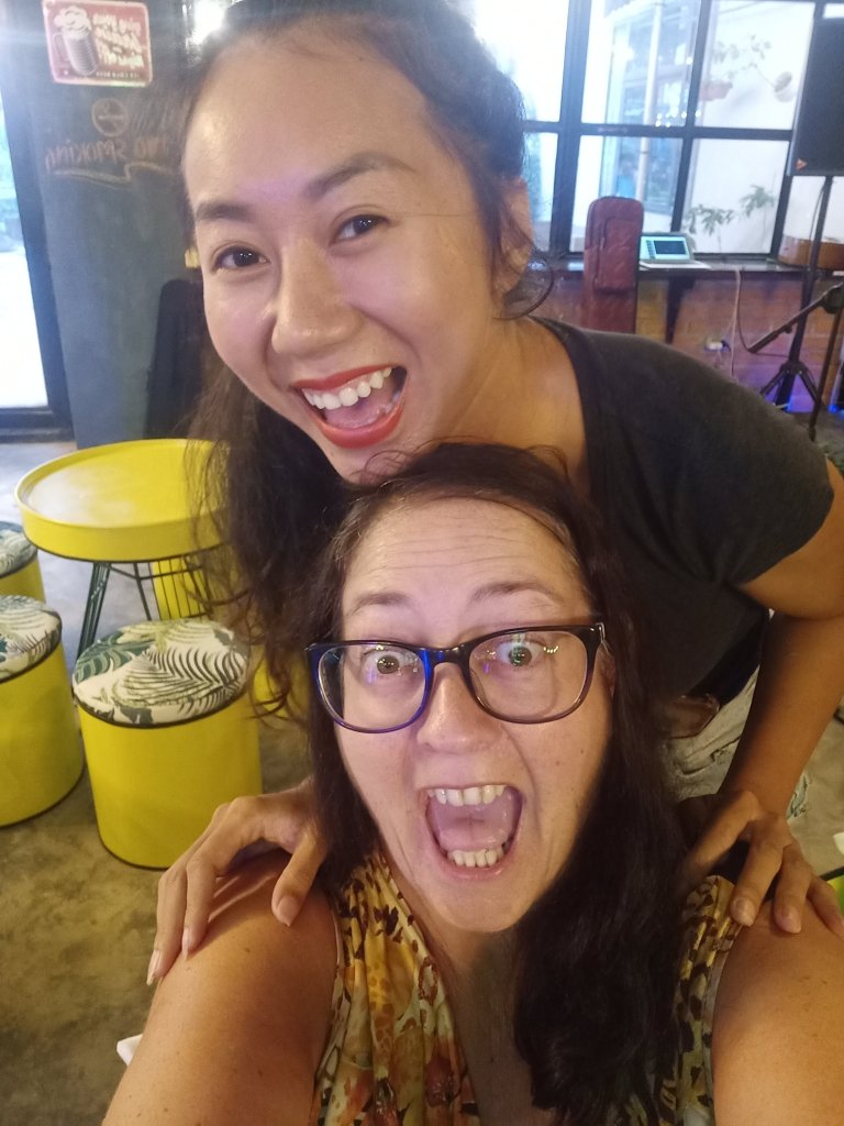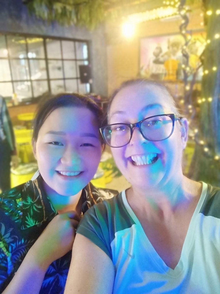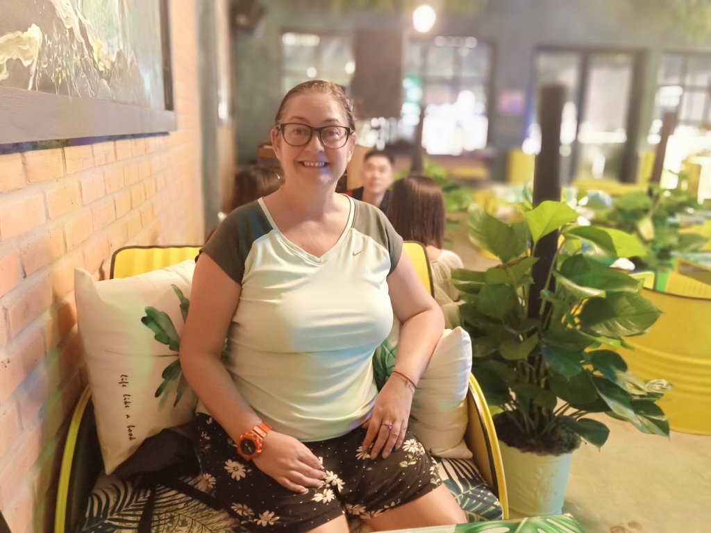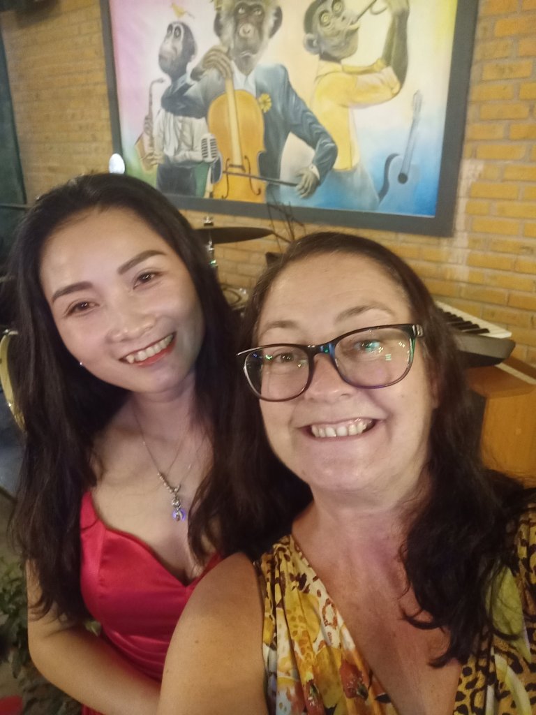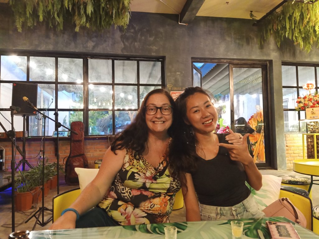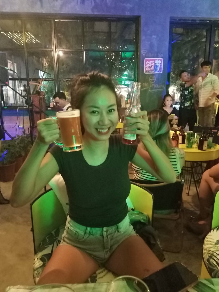My weekly measurements on Friday 19th August were: Bust -1cm, Waist +2cm, Hips -2cm, Thighs no change Right calf -0.5cm, Left calf -1cm. Eating and drinking whatever I liked was definitely not helping the waistline. I had passion fruit, mango and strawberries for breakfast and pottered about a bit. Caroline had left early for Hoi An and Tatas had gone on a 2 day tour so they were both going to miss out on the fun tonight. I had the remaining chicken fried rice for lunch and watched the rain as it came down quite heavily. I then got on with organising how I was going to get to Phong Nha later, I certainly wouldn’t be cycling Bluey in the rain, despite it still being warm. The new Jungle Boss Pub was having their grand opening tonight from 6pm and, of course, I was keen to go. Everyone was invited and I hoped to see a few friends there. Trang was in Dong Hoi, from Saigon, but was going to be there with Trinh, the owner of Buffalo Home and Chill bar in Dong Hoi. I was cheeky and asked if I could get a lift with them and Trinh, who was driving, very kindly agreed. The rain stopped but I still decided to wear jeans and my jungle inspired top – I even had my hair down.