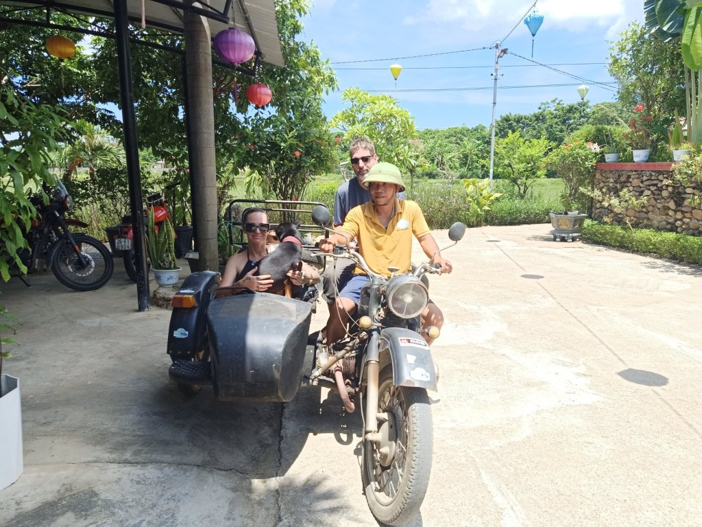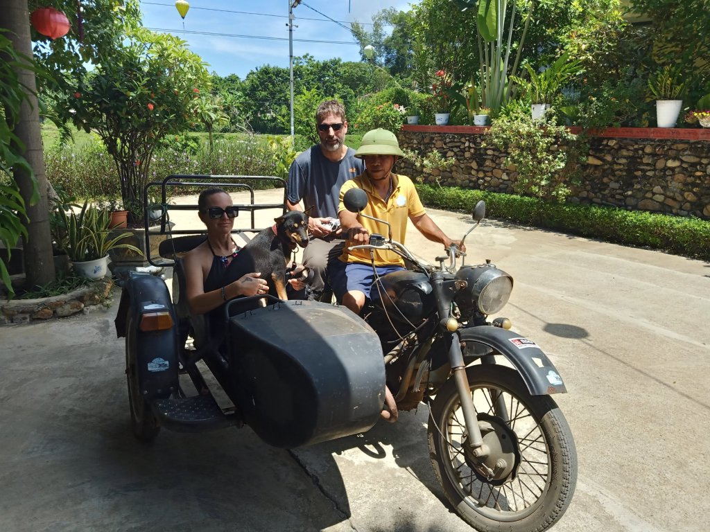 Captain Caveman was probably feeling the effects of too much booze for the second night running because he hardly said a word and lolled about all morning on his phone. I think he had wanted to go to Phong Nha (for work, with it being a Monday) but his motorbike was still at Karst Villas. He was hoping for Caroline to be able to ride it to our place, as her motorbike was still at ours, from impromptu pool party night. When Caroline did come over with his bike and our helmets it was too late for him to bother going to work. Instead, Caroline suggested a trip to the Phong Nha Farmstay. Captain Caveman contacted the reception to ask them to send the jeep to pick us up. The message was lost in translation as he didn’t specify it was for 3 of us plus a dog. Chien turned up razzing the engine of the Ural and tried to say he could get us all on the motorbike and side car. I said not and asked Chien to take Captain Caveman, Caroline and Vee first but come back for me afterwards. It was great to see Cuong for the first time since the start of the pandemic too, he’d been injured and was slowly getting better and could now walk, but with a limp.
