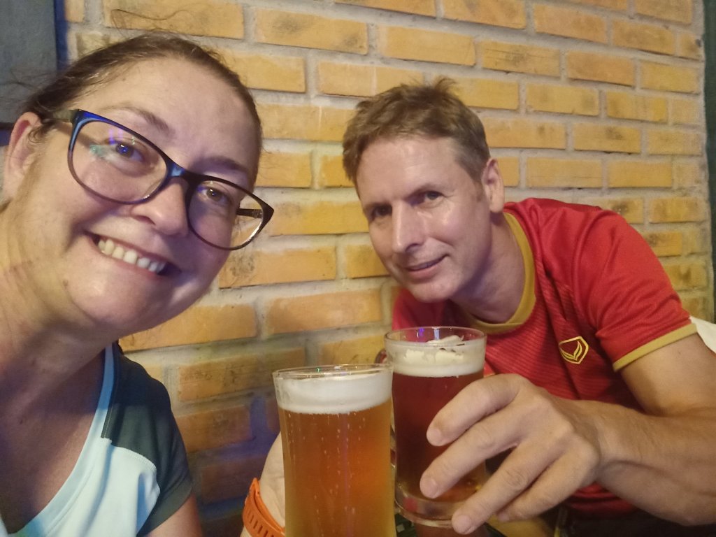 I made Captain Caveman and I some chicken fried rice for breakfast on the morning of Monday 22nd August. We discussed where I would stay in Saigon and I decided The Common Inn, Thao Dien, because we had stayed before and really like the place. I finished all my packing and we got the cases very full. I was quite concerned that I would not be able to lift the big case and I would definitely struggle to get all my luggage out of a taxi or up any steps, should I need to. The cleaners came to make up the bed in the spare room and they also returned the pillows but we didn’t need them for much longer. They even put a full complement of towels in the spare bathroom too. Floating in the pool we found a glow in the dark ladybird and we rescued it from drowning. That afternoon Captain Caveman had to go to Oxalis for something important and left me to plan my journey to return Bluey to the Glass House. I was not relishing the 13.5km cycle and, predictably, the sun was now shining. Captain Caveman had advised me to wait until 5pm when the sun might be starting to go in and we deduced that it might take me an hour. He was booked in for a haircut and shave at 5pm so we agreed I would head towards the hairdresser’s for 6pm, as he would have the keys. I left the house at 5pm and it was almost five past by the time I cycled on to the road beside Elements. I’d drank lots of water and was ready to endure the heat. I cycled past René’s Greenfield Homestay within 7 minutes and by 5.15pm I was as far along as the old Bomb Crater bar. The next section was harder than I remembered and I missed the shortcut turn off to go via Sy’s Homestay. At 5.25pm I had reached Magic Fingers massage place and was feeling very hot and saddle sore. As I turned on to the main Phong Nha road I was tempted to stop for a sugar cane juice on the roadside but decided to go to Coffee Station. I got there at dead on 5.30pm, which was impressive, but they were closing. Bluey was not phased and I got back on after a swig of water, which was now the temperature of how I drink my hot tea. Bluey continued to be super whizzy and I decided, as I was earlier than expected, to stop for a smoothie at The Villas. I must’ve looked a sight for sore eyes because all of the staff, who were eating dinner, stopped and looked at me. Hong came to serve me and I had a mango lassi, which was great and it didn’t touch the sides! Back on the bicycle I made it to the hairdresser’s, via a quick chat with Phuong at Little Leaf. There was now a huge Catholic church being built next to the hairdresser’s. Captain Caveman was in the chair getting a shave so I sat down and waited. He was impressed that I had got there before 6pm and, quite frankly, I was too! This was definitely a sign that my bad leg was back to normal again, after 2 years and 4 months! I cycled on to the Glass House, Captain Caveman drove Trigger and we popped Bluey inside. Captain Caveman put her up on the first floor ready for any winter floods which might come while we were gone. We had hoped to hear from Tatas to possibly meet to go to the Jungle Boss Pub. Captain Caveman had messaged her but she already had plans to go out with her customers instead. We went anyway as it was going to be my last chance before I left Phong Nha in 2 days time. Tatas said she would see us both tomorrow and Captain Caveman suggested we invite Stu and the boys round to say bye too. We really enjoyed the Jungle Boss Pub, I had 3 beers and we shared some of the stringy cheese and 2 portions of pork scratchings. We didn’t really want to leave but Captain Caveman was driving so we had to go. We were home before 7.30pm, had a beer and went to bed early. Tomorrow was my last day in Phong Nha and we hoped to make the best of it.