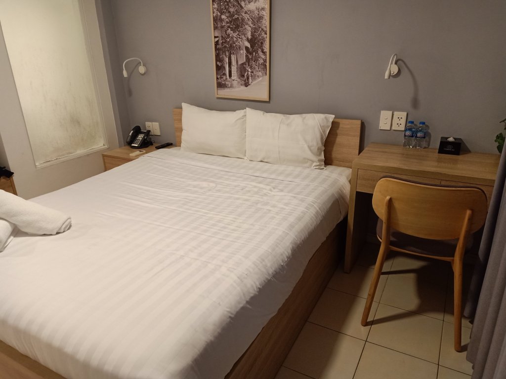 I really did not want to get up so early on Wednesday 24th August but Captain Caveman had booked the Oxalis car pick up for 6.30am. I didn’t have to check-in for my domestic flight until 8.30am but we had decided that breakfast at Mr Bull’s would be a good way to send me off. Dung, our nice driver, was early and we got in the car. Captain Caveman had to carry my big suitcase as I couldn’t lift it. We had our usual Bo Ne at Mr Bull’s, mine without eggs, and I really enjoyed it. Captain Caveman had time for us to pop to the WinMart for him to pick up some essentials and I got some mints for the journey. Captain Caveman came with me to Dong Hoi airport and we got checked in straight away for my 9.30am flight to Ho Chi Minh (aka Saigon). I was flying with Vietnam Airlines, I had an aisle seat and was due to land at 11.10am. We said goodbye and I had a few tears, mainly through tiredness I suspect. I was looking forward to landing as I would have time to check-in to the hotel and get ready to meet friends for dinner tonight. The flight went smoothly but I wasn’t prepared for the absolute fiasco that was about to happen once I arrived in Saigon!