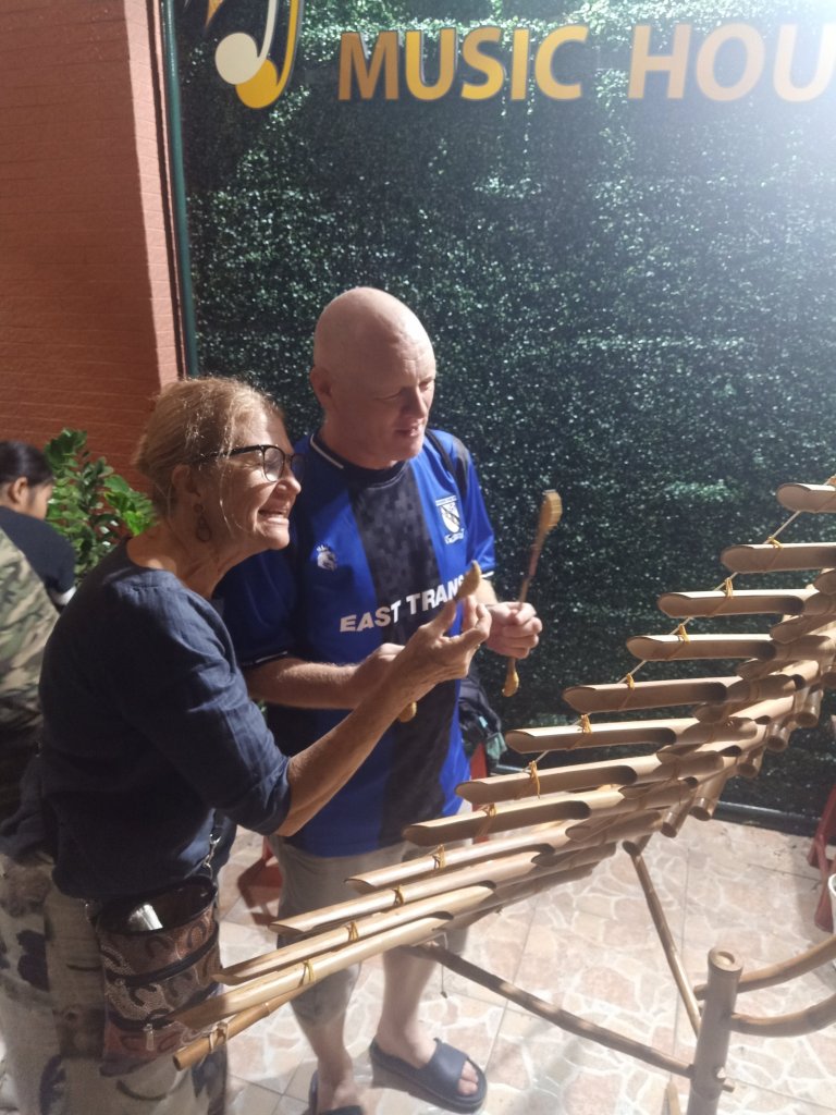 Keith, Beth and I found ourselves in an area of bars somewhere between D1 and Thao Dien. The first bar we went to was Captain Phook, where Keith knew the owners and they had rosé wine on draft. Keith had a beer, Beth and I had the wine and we were chatting when my phone rang. The caller had some news on the taxi driver who had overcharged me earlier. He was being held at the airport and was calling me a liar so I explained my side of the story then went on with my evening. Next, we went to Khoi 89, another recommended one from Keith, where I was pleasantly surprised by their sparkling wine from Moldova. We had a wander down the street, checking out the numerous bars in the area, then walked back to the beginning of the bar street. We passed Truc Mai Music House where a young student was having a lesson on the bamboo xylophone. The 3 of us went closer to listen and ended up in there, having a go ourselves. It was brilliant, however, the highlight was having the teacher play us ‘Jingle Bells’ and she was very talented. We were thinking about heading home when I got a WhatsApp message from the hotel receptionist to tell me that the taxi driver, and his 2 bosses, were at the hotel demanding to speak to me. Apparently, he had been fined 5 million dong (£185.50) for his greediness earlier and wanted to iron out our misunderstanding. I told Beth and Keith who suggested we go back to Khoi 89 and ponder my next move. I called Captain Caveman to let him know and he suggested I didn’t go back to meet them. Beth was all for coming with me and was even on the brink of asking her son to meet us there. I messaged the hotel and told them to inform the driver and his 2 colleagues that I would not be meeting with them. It was already 9.30pm and they were there to intimidate me and it wasn’t appropriate. They said they would wait until I returned because the driver had insisted he had not tried to overcharge me and couldn’t speak English. He was insisting there must be a misunderstanding and they only wanted to talk to me. I did not believe this and insisted the receptionist get rid of them, even tell them I wasn’t coming back if necessary. It took her a while but messaged me to tell me the coast was clear. When I arrived at the hotel there was no sign of the taxi company waiting for me. I got to my room slightly relieved, and still sceptical of their motives for coming to see me, late in an evening. I let Captain Caveman know I was safe, as he had waited up to check I got back ok, and he said he would let his contact know. A less confident woman would have been more scared, I’m sure, so I was even more glad I’d reported him. I did notice that the driver who had tried to say I mistook 2,600,000vnd for 260,000vnd had not come to the hotel, with his colleagues to leave the 70,000vnd he overcharged me ‘by mistake’ and a sorry note! I was very grateful for the support from friends and the hotel in what could have been a bad situation, luckily it all worked out ok in the end.