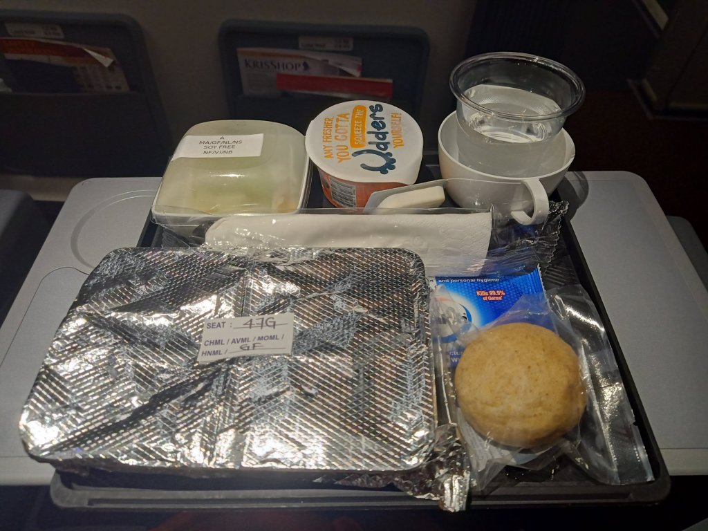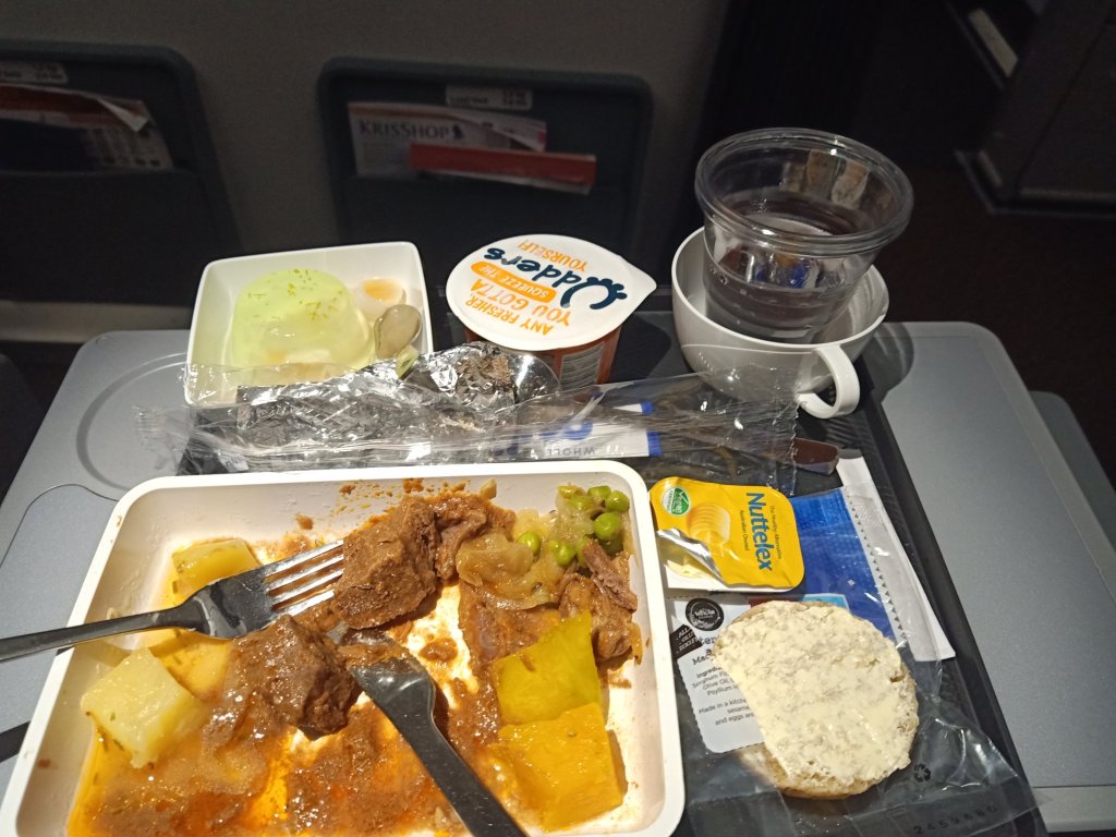 I picked up my luggage and thanked the staff for looking after me before getting in the car to the airport. The driver had arrived early because of the rain, carried my cases, put them in the boot the right way round and only charged me 215,000vnd on the meter in a huge rain storm. I gave him 250,000vnd and reaffirmed to myself that I was definitely right to have reported the taxi driver who tried to charge me more but took 330,000vnd on Wednesday. I was very lucky because in Hanoi, the other airport I could have been flying from, the roads were flooded and flights were getting cancelled due to stormy weather. My check-in for my first flight to Singapore opened at 16.40 and I managed to be bang on 25kg with the hold luggage, they didn’t weigh the hand luggage (luckily). I had a bit of cash left and was hoping for a beer at the airport once I was through to departures. They were charging 138,000vnd (£5.11)for a medium sized draft beer (outrageous for Vietnamese prices) but I only had 132,000vnd (£4.88) and asked for a small one. The cashier said they didn’t have small ones so I was about to walk away when she gave me the bigger size for 132,000vnd. That was kind and it tasted even better in the ice cold glass too. I already had a middle seat on the plane and couldn’t change it but at least it was only 2 hours to Singapore. I started watching the ‘Top Gun: Maverick’ film without realising I would have landed before the film finished. I found it boring, totally predictable and even tedious so when I didn’t get to see the end I wasn’t bothered. I’d had the good idea of ordering a gluten free meal with Singapore Airlines so I got my beef stew with pumpkin, potatoes and spinach first and the gluten free bread roll wasn’t bad. I landed in Singapore just before 11pm, with just 3 hours until my next flight. I decided against a lounge as we would be boarding in 2 hours. Instead, I sat and updated my diary and messaged Captain Caveman to let him know I had successfully left Vietnam.