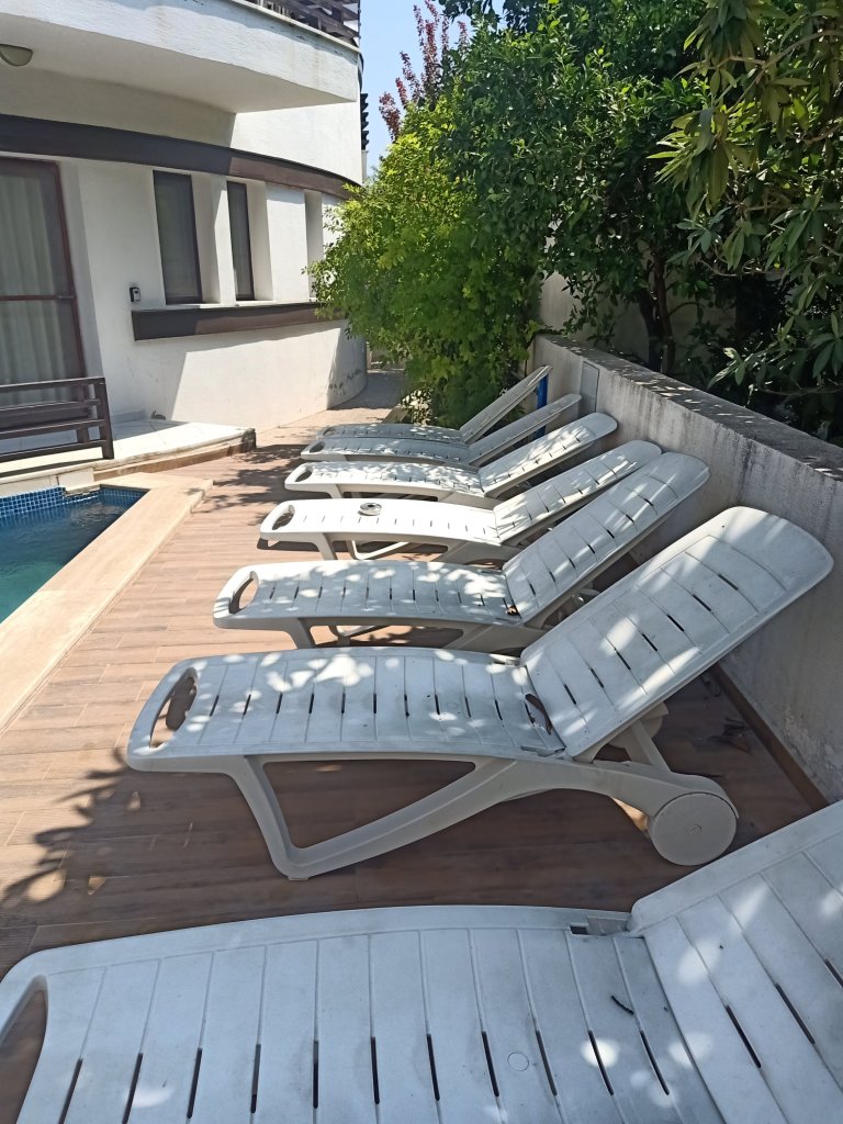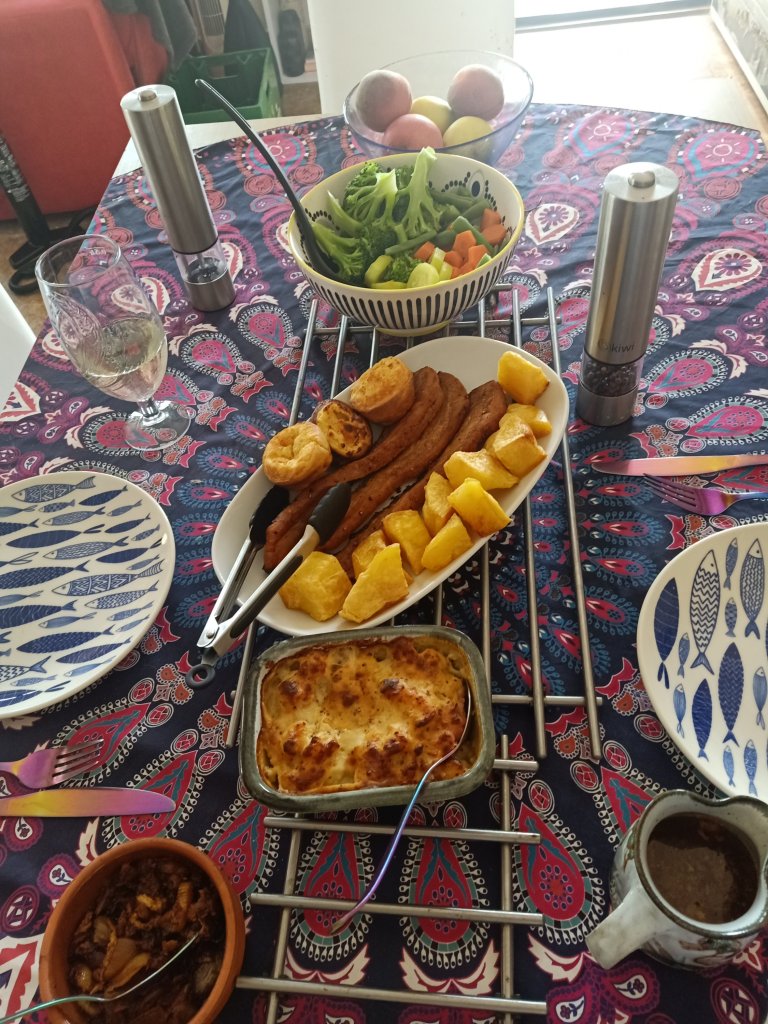 My first day in Dalyan, on Sunday 28th August, was great! I managed to log in to one of the neighbours WiFi and let people know I had arrived. My eczema was terrible from wearing the facemasks and I had to take antihistamines plus slather the cream on. I spotted a message from Kate to say that her and Mark weren’t still out last night when I arrived but I was invited today for lunch. As I had not had the fridge on, I was appreciative of this kind offer and had also agreed prior, to borrow a bicycle from Mark for 4 days. I checked the apartment and all was well except for I couldn’t find my key for the padlocked cupboard, which had everything I needed in it! Downstairs, I noticed that the garden was pretty overgrown and the attacking bushes last night had been some pretty spiky, overgrown bougainvillea. The electric meter cupboard was difficult to open on account of the bougainvillea growing back in the way of the doors. The pool pump was on but the pool itself looked like it needed a good clean before I’d get in for a swim. There was washing at the bottom of our stairs so it looked like I had next door neighbours. In the living area I noticed what looked like coffee on one of the cushions, which was odd because I was the last one in the apartment except for the cleaner, I don’t drink coffee. I booked a taxi for 2pm with Fikri and took a bottle of wine and some sodas to Mark and Kate’s house. It was great to see them again and there was a welcome back beer to be had. The 2 baby cats had grown and they now had a new kitten who was particularly cute. Kate had excelled herself by making a full-on pork Sunday dinner with all the trimmings – it was so good.