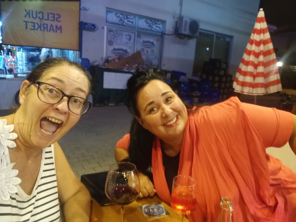 I probably should have planned things slightly better but I managed to cycle back in to town from Mark and Kate’s, after 2 beers and half a bottle of wine, on a borrowed bicycle! I thought I was going home for more sleep but I just had to say hello to Katrina and Mehmet at Lukka bar, my local bar. Katrina bought me a welcome back red wine and then phoned Sarah and Debbie (Darling) to see if they were coming over to meet me. They arrived, we had more wine, and Sarah showed me her broken wrist which she was in a bad way with. I saw İsmail, the flower man, and had a little chat and a photo. Roy joined us for one, then we all went to Debbie’s. I was definitely drunk as I was letting Socks and Brinny, their dogs, give me lots of kisses. I was surprised they remembered me as the cats didn’t give a stuff. Debbie (Darling) ordered a curry from Spice Garden but then her and Roy fell asleep while Sarah nattered on, catching me up with the trials and tribulations of her last 3 months.