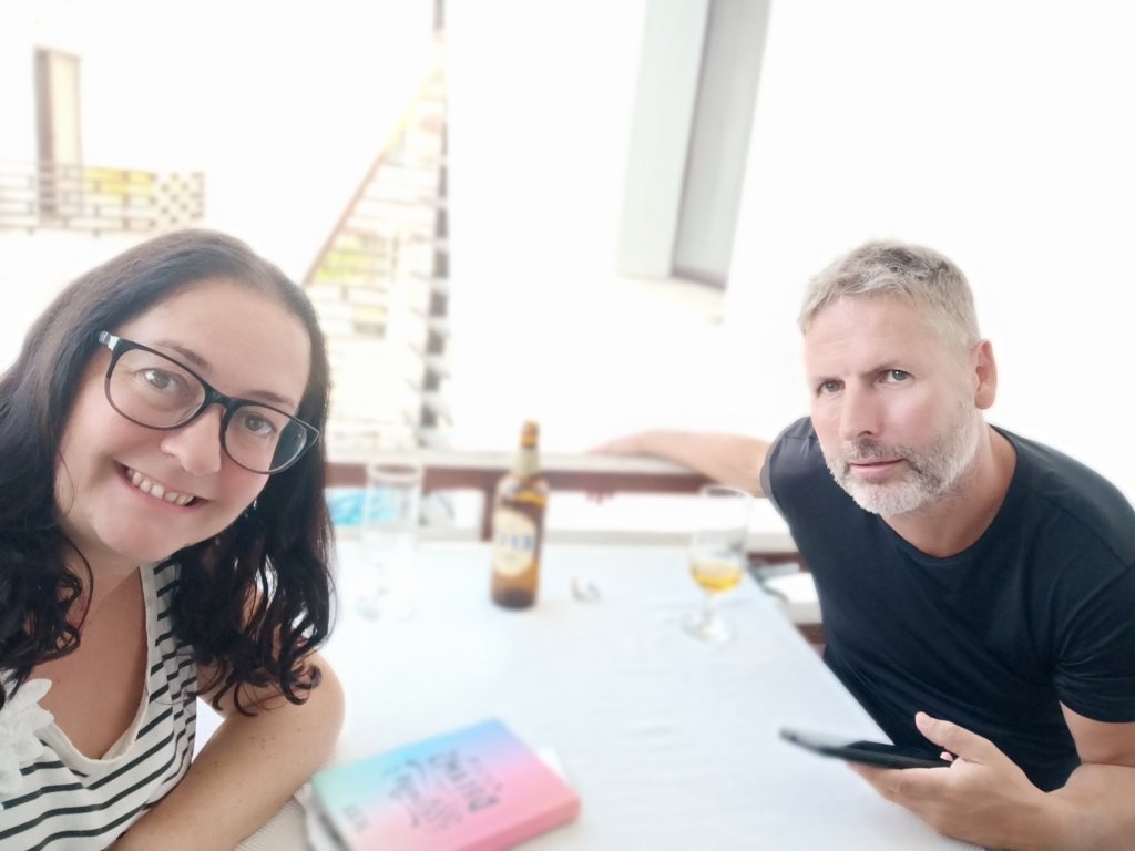 I went home while Captain Caveman went to Migros supermarket where he spent 72 lira (£3.70) on pasta, pesto and another ice cube tray. The weather was still lovely so we had balcony beers in the afternoon. It was, sadly, Amanda and Greg’s last night so we decided to have a bit of a soirée round at our apartment.