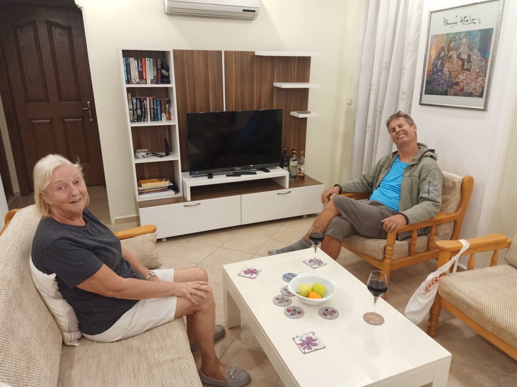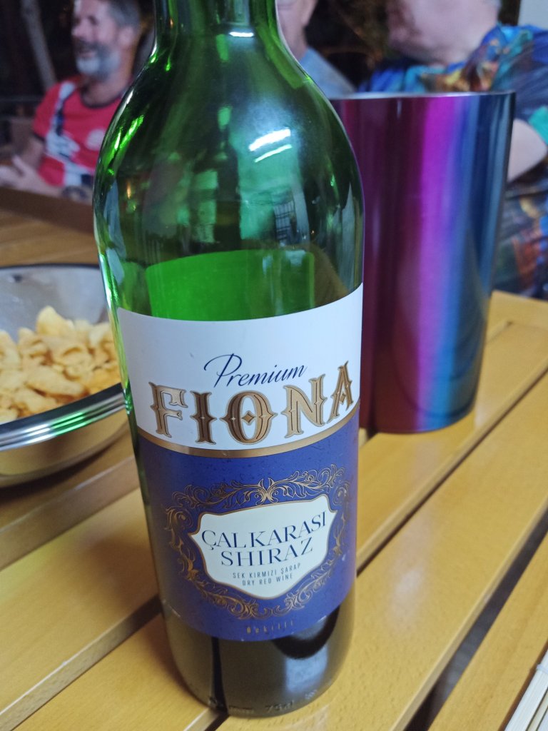 I got the slow cooker on to make a curry for dinner that night and then decided to have a super healthy lunch of a beetroot salad. Captain Caveman was back later than expected from an arduous morning of bumming and wasn’t too pleased when I said we were off out. I’d arranged to meet my parents at Kaunos tea gardens but Captain Caveman didn’t have time as he needed to have lunch and go for a shave and a haircut. I went anyway and my good intentions of having a Turkish tea without sugar were successful. But then, the sun was shining, my parents ordered another beer and a cleanly shaven Captain Caveman arrived and ordered a beer. I succumbed and ordered a beer, we saw Kaan and Selahi there with friends and it stayed sunny for quite a while as we enjoyed another beer. On the way home we saw Mark at Tez bar so I gave him back Kate’s house key and took a photo as proof, seeing as he’d had a few and might forget he’d seen us. Back home we had the curry I’d made and it was very enjoyable, there was some left for another day too. Captain Caveman opened a bottle of wine to have with his dinner and I couldn’t resist a small drop.
