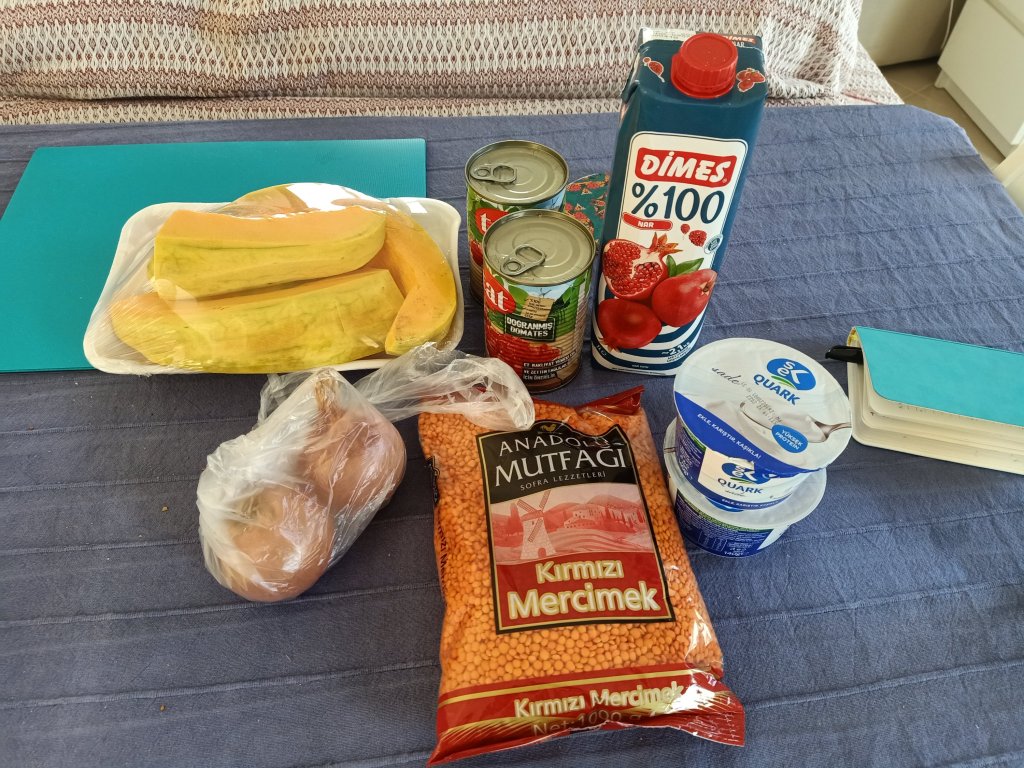 1 bag of red lentils 22.50 lira (£1.05)
