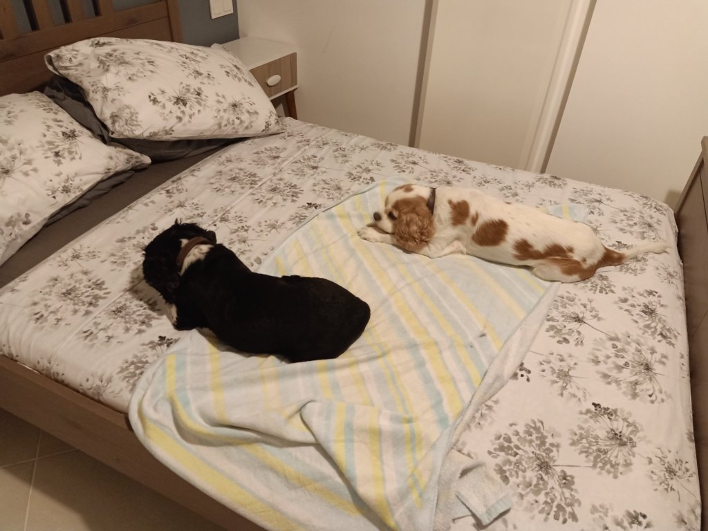 When it came to bed time I wasn’t sure if the pooches would go in their bed or stay on the sofa and so I asked them. It was hilarious that the word bedtime had them halfway up the stairs looking at me, as if to say “Well, come on then!”