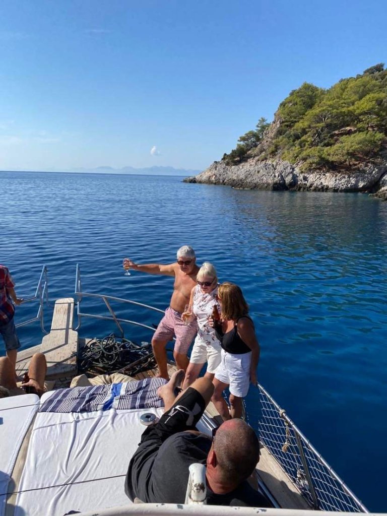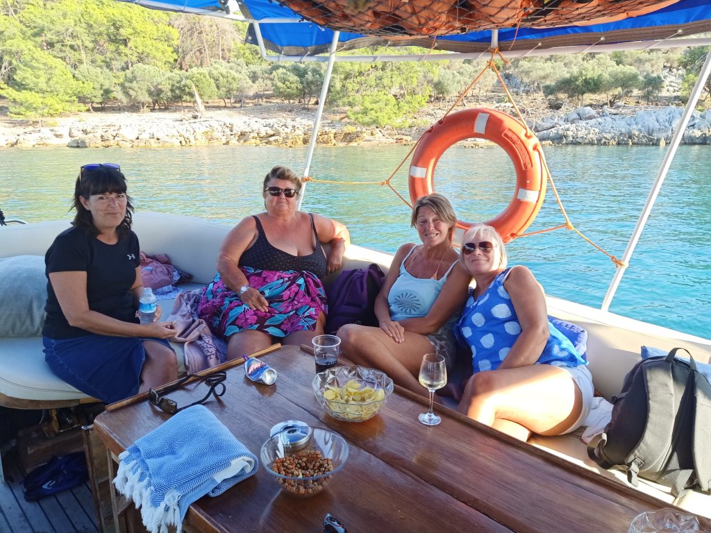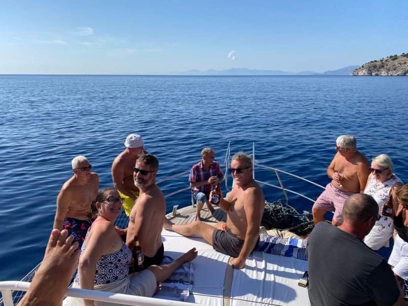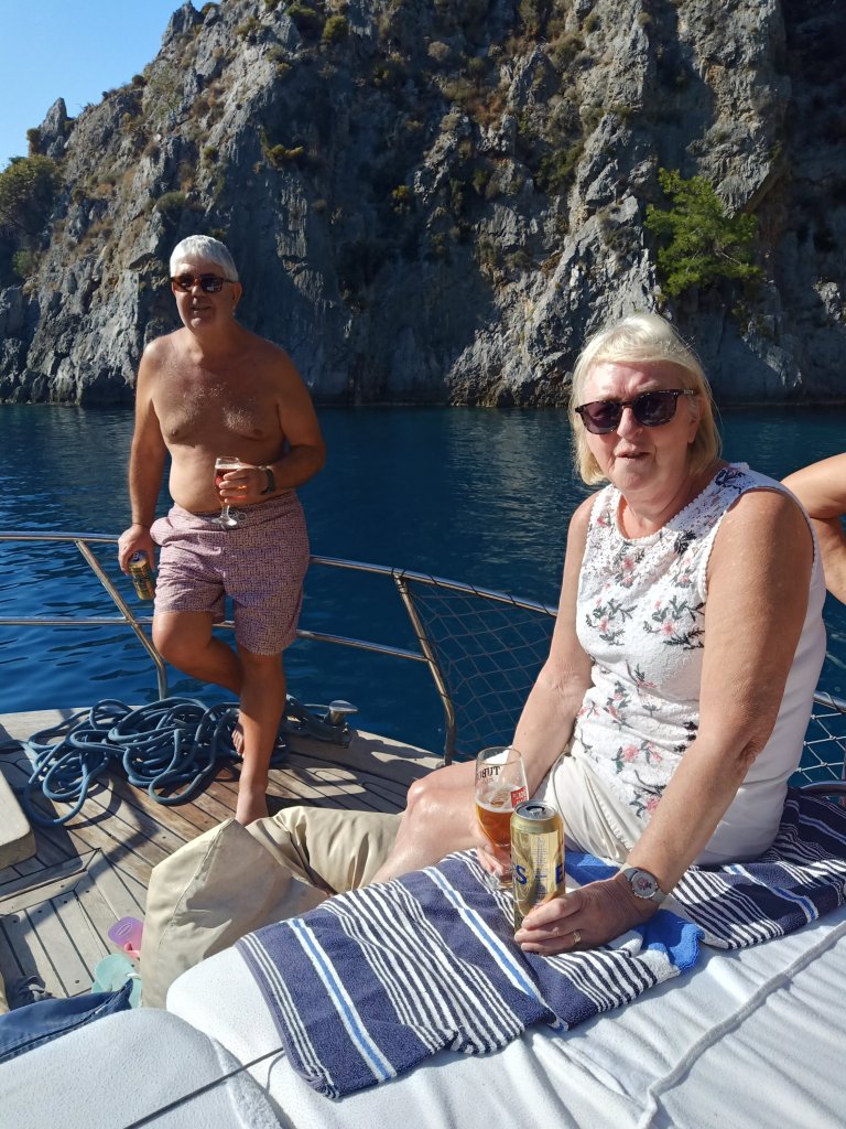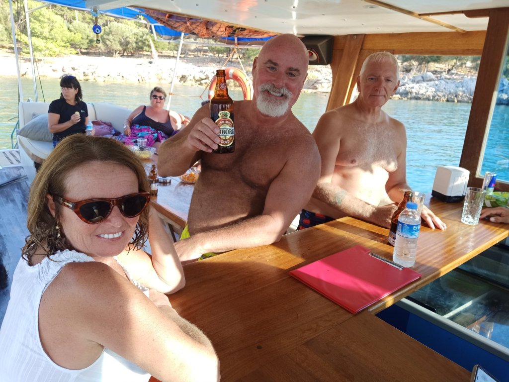 Most people went in the sea and it was sunny still, about 26°C, but it did feel cool when I got out of the water. Kaan was so relaxed because this could well be the last boat trip of the season and he knows us all so well. He even joined us in a few drinks at the bar, leaving his two mates to do all the work.