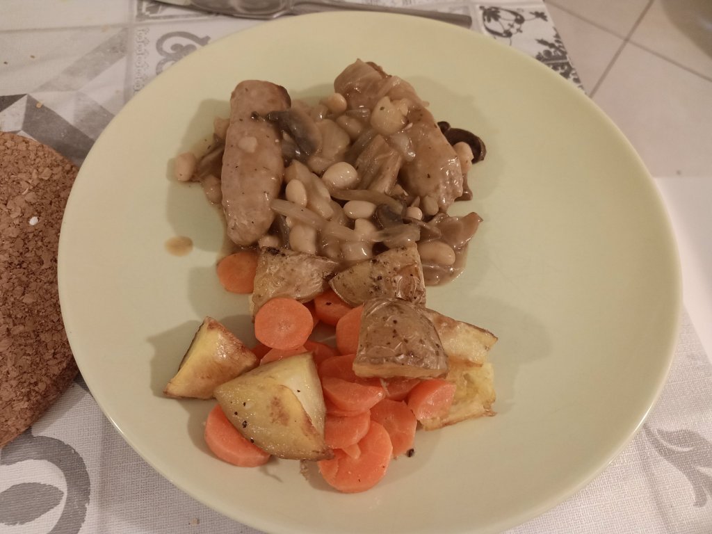 That night we had sausage cassoulet with carrots and potatoes and I resisted the wine. Captain Caveman drank quite a bit of it as he was annoyed at the never ending communal electric issue.