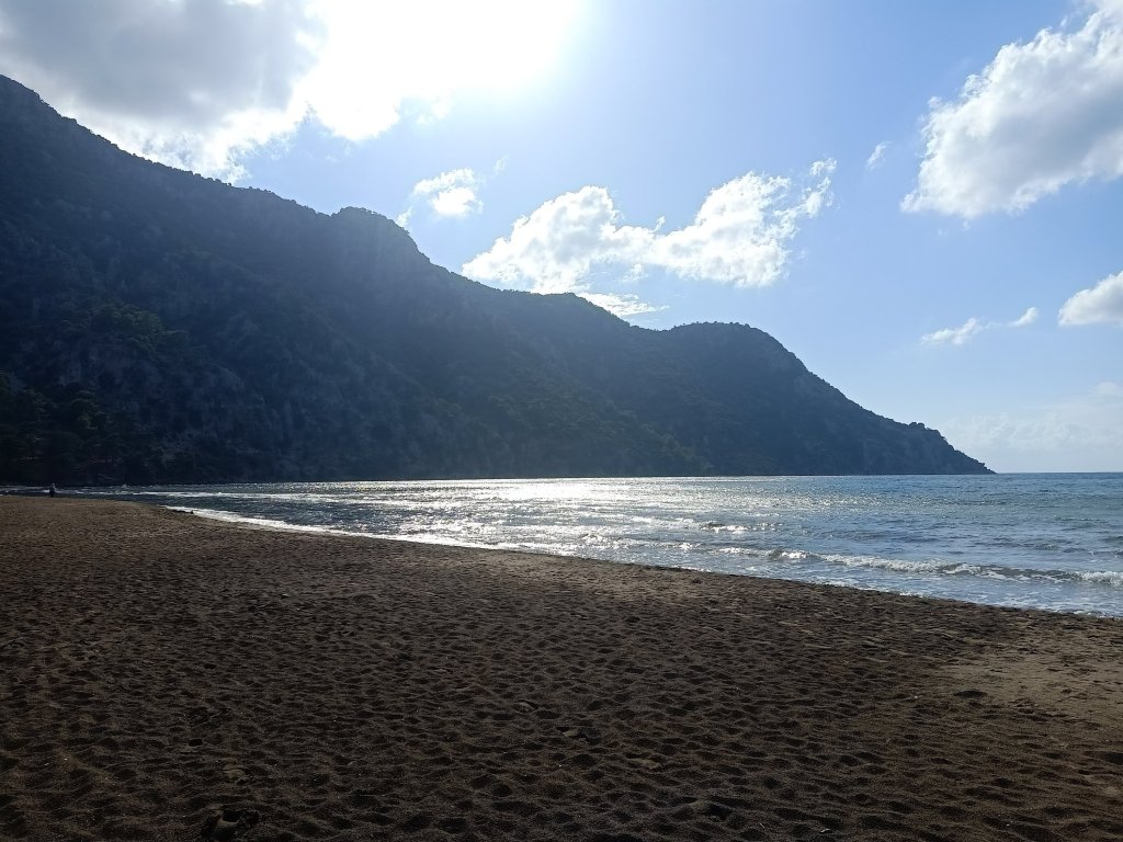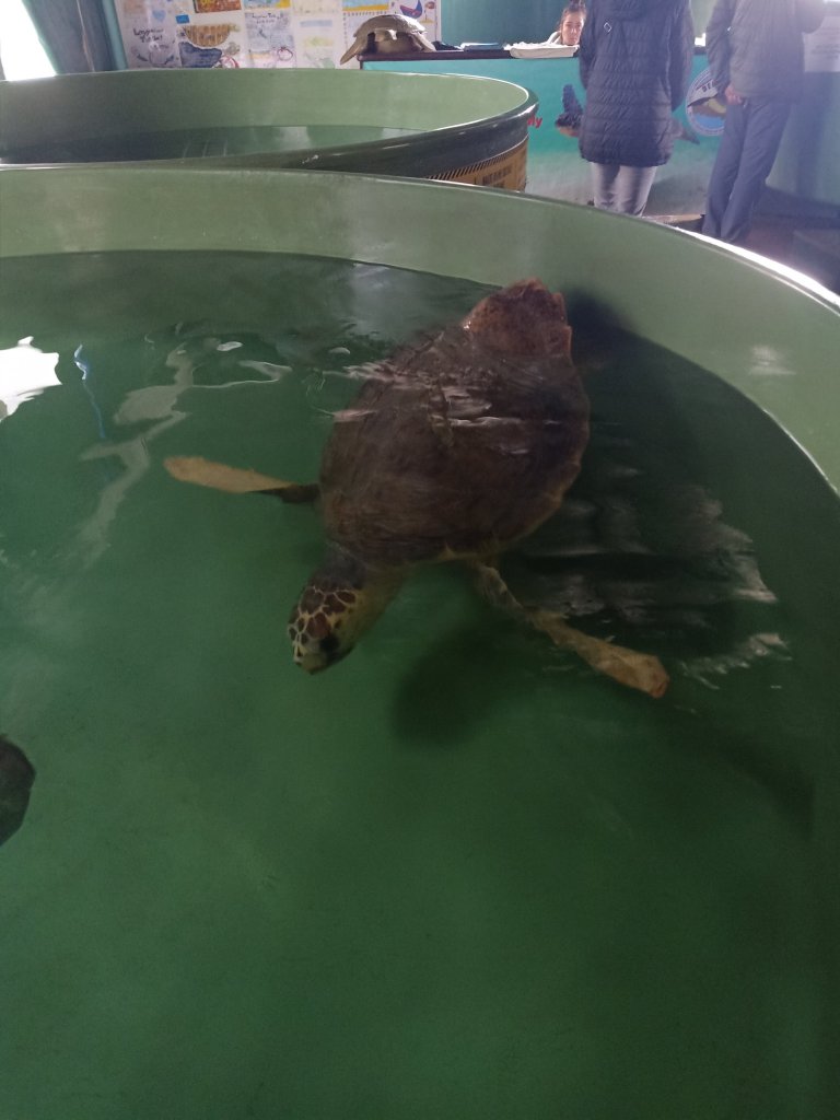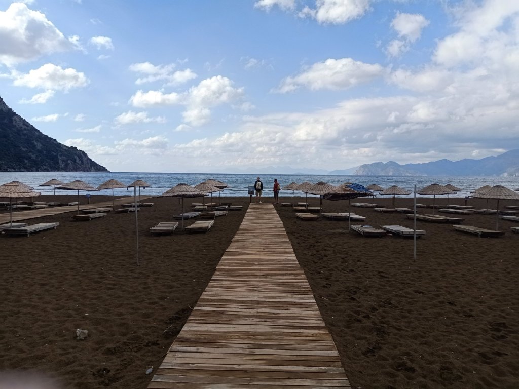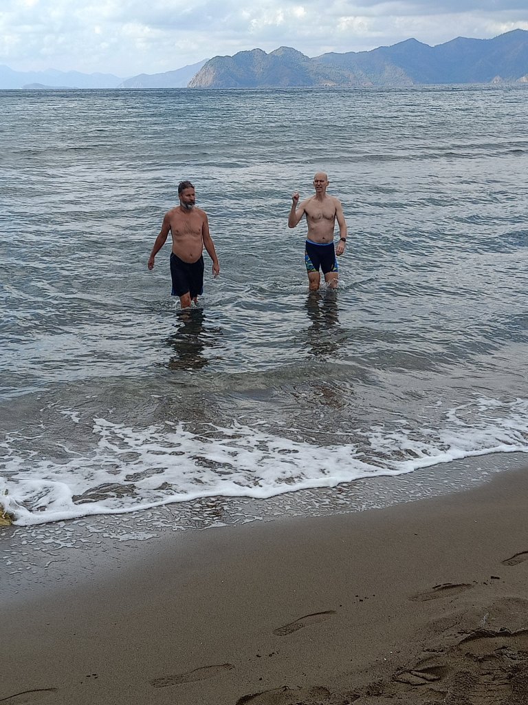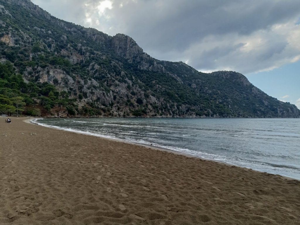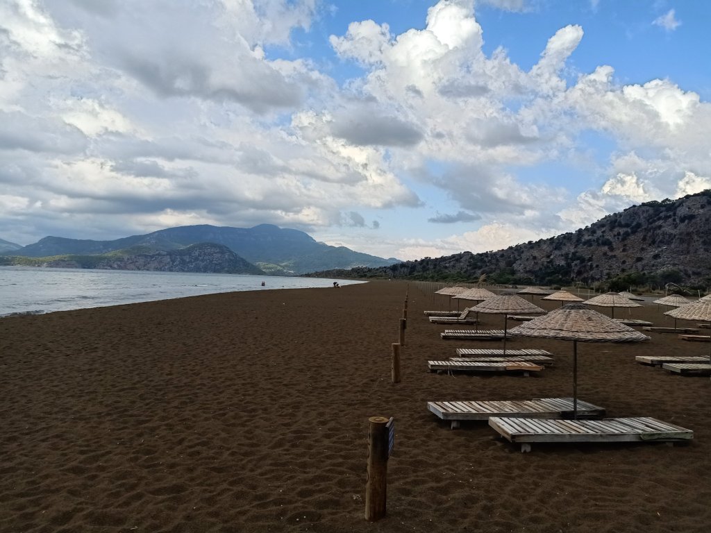 During the night there had been heavy rain but it looked like it was easing off when we woke up on Sunday 6th November. Rob had already been up early for his morning run, where a street dog had accompanied him. He got back to the apartment just as the rain had begun again. Captain Caveman was still in bed rejigging today’s plans. The idea had been for Captain Caveman and Rob to walk it to Iztuzu beach over the hills. They would get the 10am bus part way along and walk the rest. My parents and I would get the bus at noon and see them there. Instead, we ate Turkish breakfast pastries at home with a hot beverage before our afternoon trip out. Just before 10am we thought the whole of Plan A would be stopped due to the heavy rain but, by 10.15am, the rain had stopped and the sun was trying to come out. All 5 of us got the 12 o’clock bus, Captain Caveman was a bit cheesed off as the 10am bus had been moved to 10.30am so they could have still done plan A if they had known. At the beach it was fairly cold, breezy, but the sun was warming things up a bit. I thought it was too cold to swim and didn’t take my swimmers. Our first stop of the day was to see the amazing work that is being done at the turtle hospital, one of my favourite turtles today was Nessie and she might even be getting released soon.