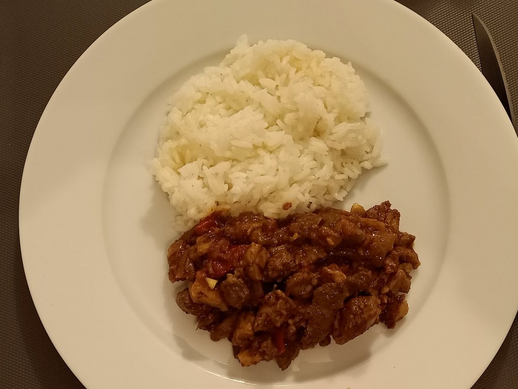 While Captain Caveman flew from Dalaman to Luton I walked over to Kate’s. Mark was at Rehab bar for pool afternoon with the lads so I was taking her some dressings, spinach and tuna. We had a good natter and Kate gave me a couple of pairs of jeans, they were a bit snug but with all the weight I’d be losing I felt sure they’d soon fit better. I just drank water while there and on the way back I called in for 1 drink at Rehab bar. John was meant to be in Mark’s team at pool but Andrea had turned up so he was leaving. He asked me to play his game and I was surprised to see Tay and Wolfie beat Mark and I so easily. Mark and Wolfie were still playing pool at 7pm when I went home to cook up a nice dinner made from leftovers, pleased I’d managed to go to a bar ‘just for one’. I used the half portion of beef casserole, which I’d had in the freezer from Duble. I had it with steamed rice and it was delicious.