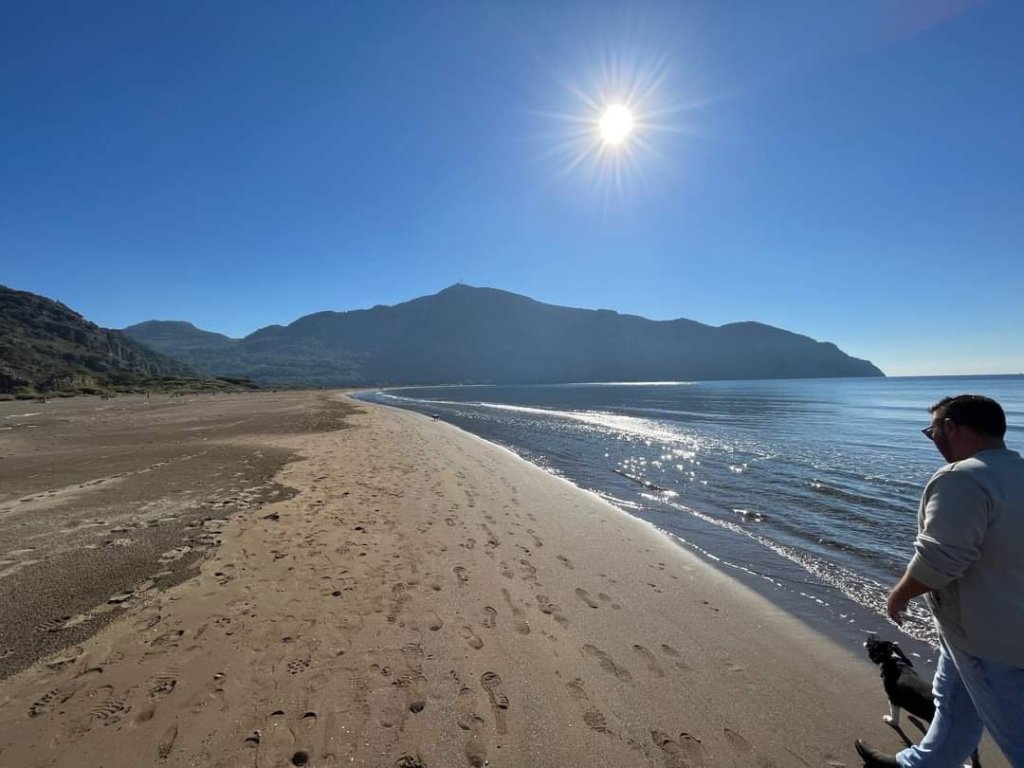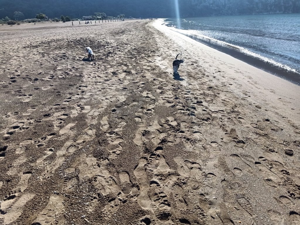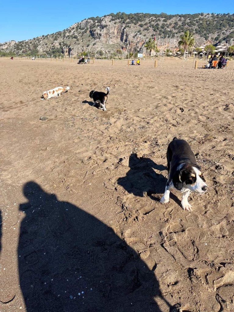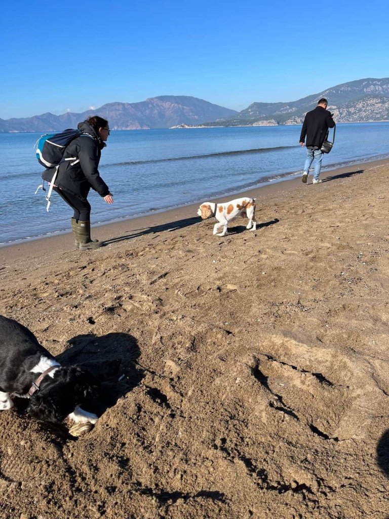 We had an exciting day planned on Sunday 4th December. Captain Caveman made me a bacon sandwich for my breakfast in bed and Charlie came in to watch me eat it. Then Captain Caveman popped to Migros supermarket and bought a loaf of bread, some mushrooms and 6 beers at a total of 208.85 lira (£9.21). At 11.30am Captain Caveman, Charlie and I were round at Jamie’s villa and we were joining him, Drew, Norman and Edna for a day at the beach. My parents were going to join us at the beach and were getting the midday bus. We all fitted in to Jamie’s car comfortably and we wondered if it was Charlie’s first time in a car. On the way there, Charlie started to feel travel sick so we had to stop for him to get out. When we did get to the beach, Charlie seemed unsure that he was allowed there, off the lead too (dogs aren’t allowed on the beach in the main season) so he was a bit shy. Norman and Edna were used to it and had already started heading towards the water’s edge. Charlie ended up loving the beach but he didn’t go in the sea like Norman and he wasn’t sure how to play fetch the stick like Edna. It was a lovely sunny day and so sweet to see all 3 dogs having a good walk along the beach. We walked a lot, Charlie got loads of exercise and some bonding with Captain Caveman, as he’s not too fond of men. Around 1pm we grabbed some sunny seats at the cafe and I spotted some sunglasses on the floor which turned out to be a Turkish lady’s on the next table. She was grateful and gave us some treats to eat as a way of thanking me. They were delicious and she even gave us some of her homemade pomegranate jam to go with them. The cafe was still serving food and we had a mixture of toasties, chicken döner sandwiches, chips and soft drinks. Dad had also brought some snacks in case the cafe was closed. Adam had some of his beers too but I wasn’t fancying a beer today. We left in the car just before my parents, who got the 4.30pm bus back. We had Slimming World red onion soup for dinner and by 9pm Charlie was snoozing away, tired out from his beach day but very happy. He’s not normally allowed in our room but by 11.30pm he was fast asleep on our bed with his blankie on.
