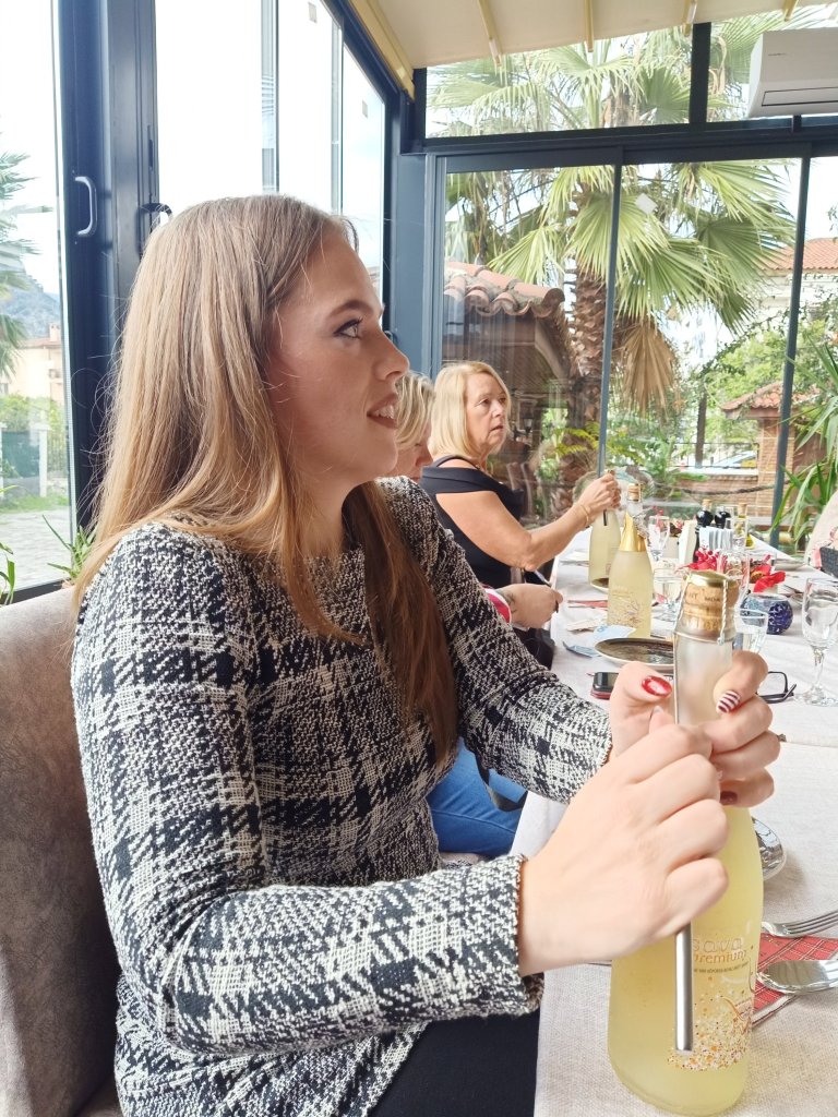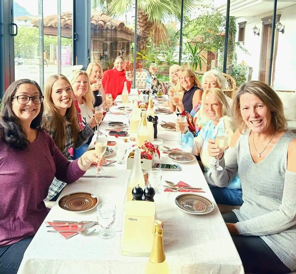Knowing that I had something arranged in the afternoon of Wednesday 14th December, I cracked on with getting stuff done in the morning. Captain Caveman went Dogging so I took Charlie out for a walk to Poo corner. At 2.30pm Kate came over to pick up her house key and pop some stuff in the freezer for Christmas day. Captain Caveman and I were looking forward to having our mate, Josh, over from Christmas Eve and we were happy to not be doing a traditional Christmas Day, we were in Turkey afterall. At 3pm I got weighed at Fat Club where I had lost 1kg (2lb). This was good news as we were about to start our Christmas party at Nil Lounge where we had already pre-ordered food and prosecco. The place looked gorgeous, everyone was dressed up, except for me as I’d not taken many clothes over to Charlie’s. Kate and I had 3 bottles of fizz between us. Others from Fat Club were much more sensible and only had 1 bottle between 2. We also both ordered the mixed mezes as we didn’t want to eat a big main course but it was huge and I ended up taking quite a lot home. We had issues opening all of the bottles of wine, which Carol had got for us from outside of Dalyan, so Katherine got the knife out on them – for the price we didn’t care! The food was very good and we had a lovely afternoon which turned in to a late one for Ghislaine, Kate and I as we had a couple of beers in Mustang bar. We had tried to join the pool lads at Rehab but it had closed and they had all gone home. When I got home I was very tipsy having had a really good time with the Fat Club girls.