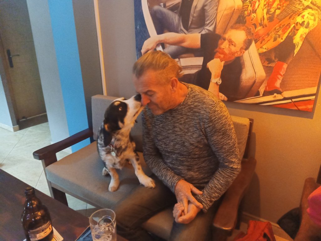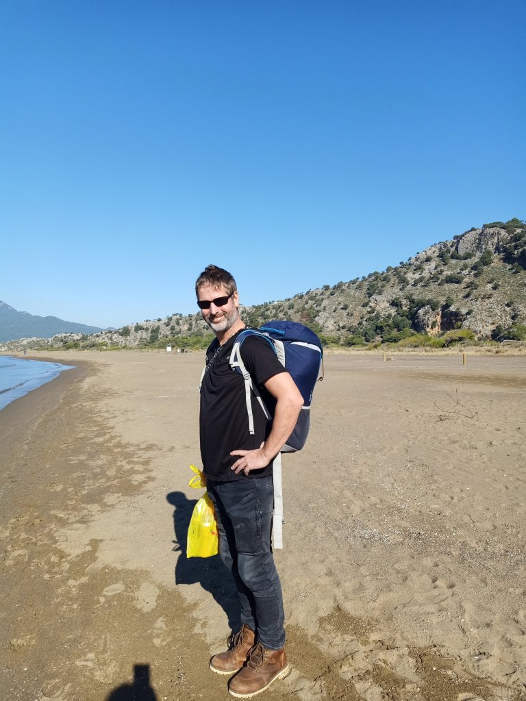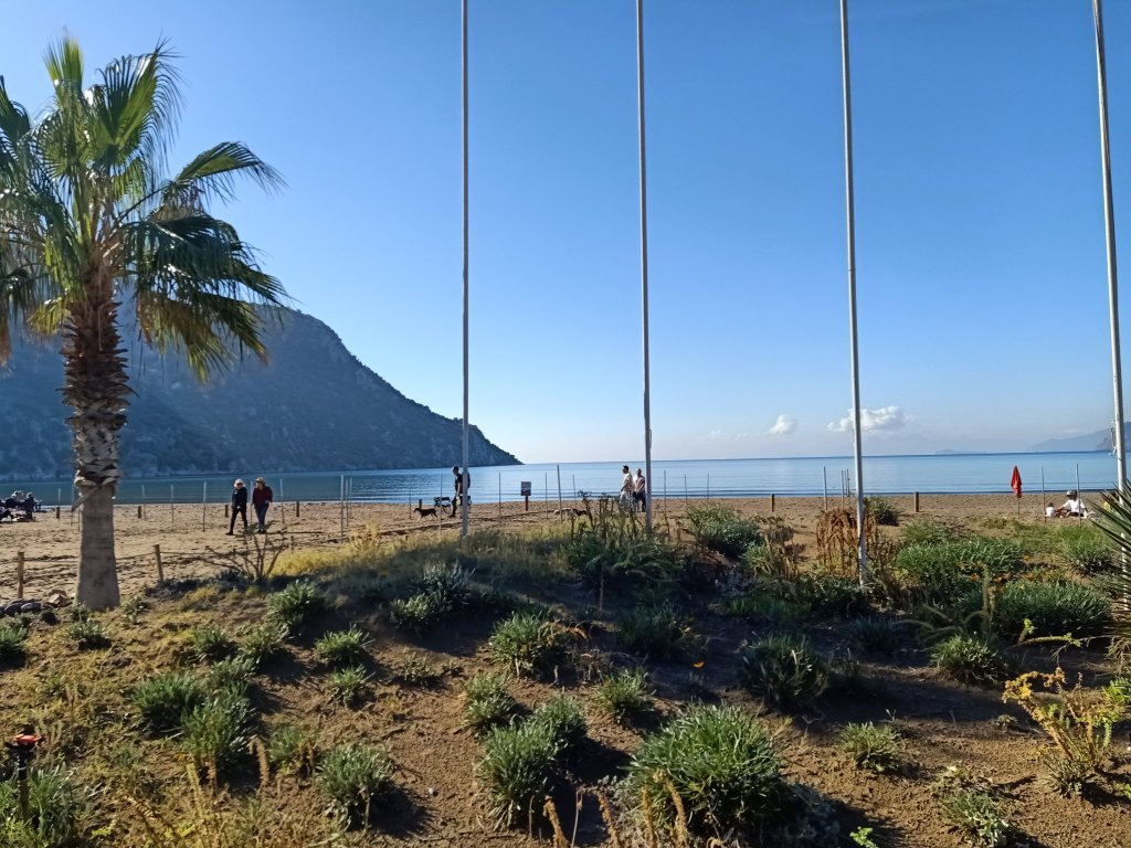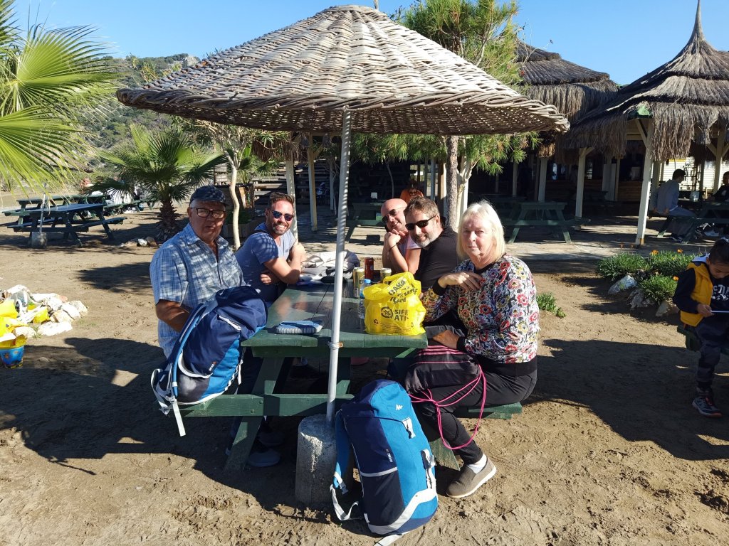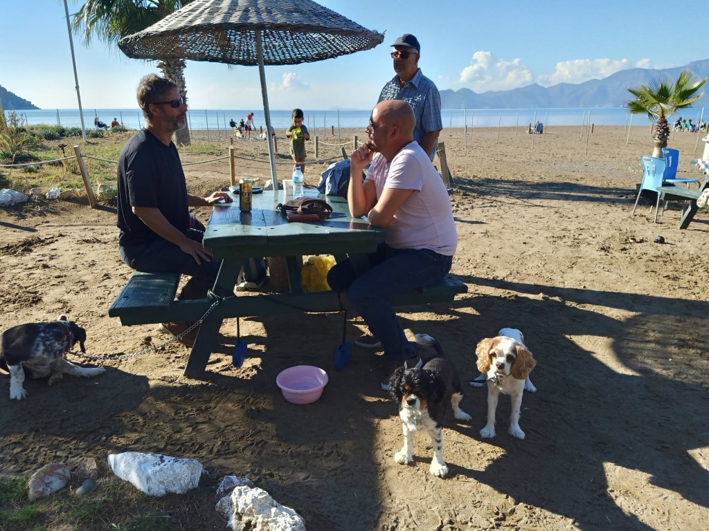 On Friday 23rd December I wasn’t feeling too lively, after last night’s debacle. Amongst having to finish quite a few tasks and a plumber coming, I did speak to Captain Caveman about why we were arguing. He was upset because he says I micromanage him and get involved in stupid things. I begged to differ on the micromanaging, if I did I was definitely rubbish at it! Mid morning I had a break from editing and took Charlie out for a walk, he hoped his ‘dog sitting parents’ weren’t splitting up because he loved us both. Captain Caveman went out after lunch, to the barbers, and I said I might meet him, and the pool lot, at Rehab bar after 5pm. The pool afternoon for Saturday had been moved to today to accommodate Christmas Eve on the beach. I finished my stuff early and I went to the bank to get some cash. When I got to Rehab, with Charlie, Captain Caveman had found Vanessa’s purple hat and was wearing it, he’d had a shave and a haircut. Charlie made more new friends and was even giving Mark sloppy kisses – he was certainly getting used to men more! Back home, Captain Caveman made a tasty chicken pasta for dinner. When we went in to the lounge to sit on the sofa, Charlie staged a protest by sitting on Captain Caveman. I think he was trying to make him apologise to me for upsetting me yesterday, but it didn’t work. Tomorrow was Christmas Eve and we had lots planned, my parents and Captain Caveman were only in Dalyan for a couple more days and it was time to make the most of our time left!
