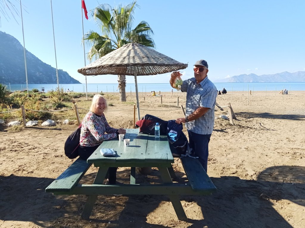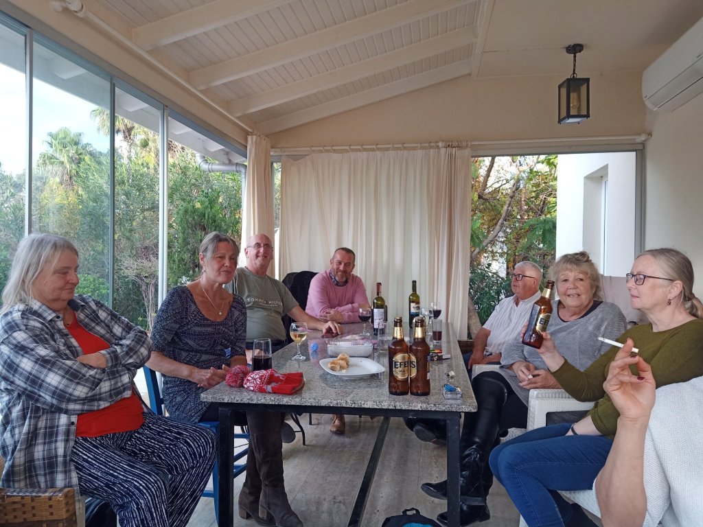 I was still sick and awake from coughing at 5am on Monday 19th December. Captain Caveman made me a bacon sandwich when he got up and I ate it in bed. We had an invite to Jan and David’s Christmas party this lunch time and I really wanted to go but I was very conscious that, although I’d tested negative for Covid, whatever I had got didn’t need to be passed on to anyone (vulnerable or not). Jan and David are in Captain Caveman’s Bridge group so he’d become quite good friends with them and we were both pleased to have been invited. Captain Caveman thought I looked much better and suggested I go but I didn’t think I should. I stayed at ‘home’ with Charlie, made a slow cooker meal with roast potatoes for later and slept, a lot. When Captain Caveman returned he had a Christmas card and 6 mince pies from Jan and David and I was really touched. I could tell I was ill as it made me emotional when I bit in to one of the rather delicious mince pies. Captain Caveman said he’d had a good time at the party with some lovely food and nice people. I went back to bed, slept more and woke up feeling a little bit like I was starting to recover. For the first time in 4 days I decided to join Captain Caveman and Charlie on their walk and wrapped myself up warmly. We had only gone to Poo corner and were heading back in the direction of the corner shop so we could pick up some bread when I started to get out of breath. This flu bug really had knocked it out of me and, as we approached the end of the road, we saw Vanessa, Matt and my parents sat in Waterfall bar. They had been out to Dalaman for the day and had called in to our local for a beer. We went in but I was so wary of being near them in case I passed on my illness and I wasn’t really functioning properly. Mehmet automatically brought me a beer which I didn’t want and I gave most of it to Captain Caveman. I don’t even remember what we talked about apart from buses and Christmas Eve beach arrangements. By 7pm we were eating sausage casserole with lovely roast potatoes and I was back in bed early.