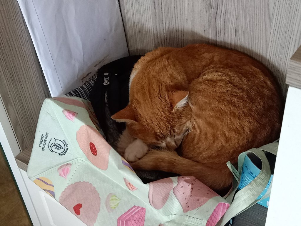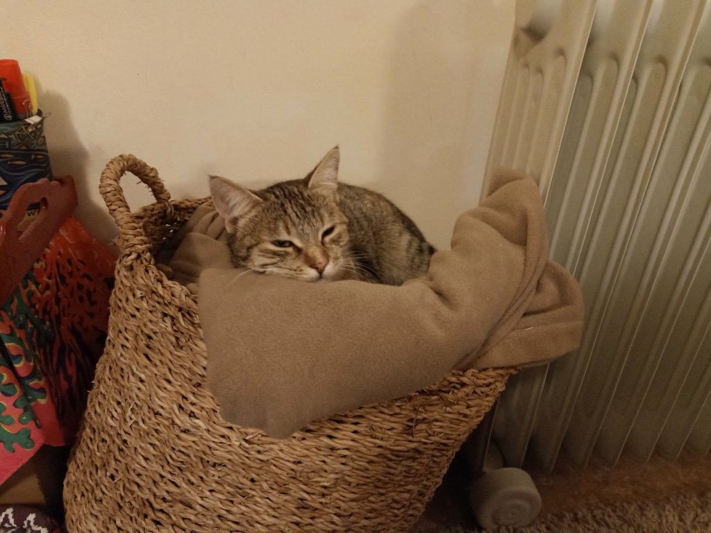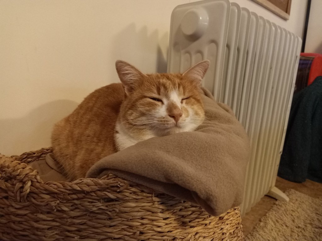 After Singing group I walked back to Charlie’s where I had hoped to have dinner with Captain Caveman but, because I needed to get the bike back to Mark and Kate’s before it got dark, I left straight away. Captain Caveman came with me to pump the tyres up a bit and said it would just about get me back. I ended up pushing it some of the way but got back in time. I was hoping to get some stuff done today but had failed and I definitely wasn’t prepared for the next fiasco. As I was feeding most of the cats, I could hear one of the cats sounding like it was coming from the front bedroom, which was locked. Squeak, the cat, had accidentally got locked in there and I had no way of knowing how to get her out. Mark and Kate were on the flight so I had to wait until they had landed to get a response. They were delayed and it was late by the time their friends, Michele and Nick, came to Squeak’s rescue and had to break in through a window. It wasn’t easy and I was so glad to have had their help. I finally had some warmed up sausage casserole, a glass of wine then went to bed. It was cold so I was glad of an extra blanket to keep me snug and it certainly did the trick.