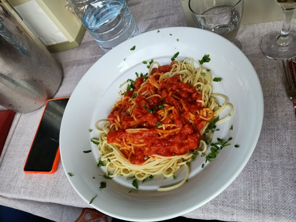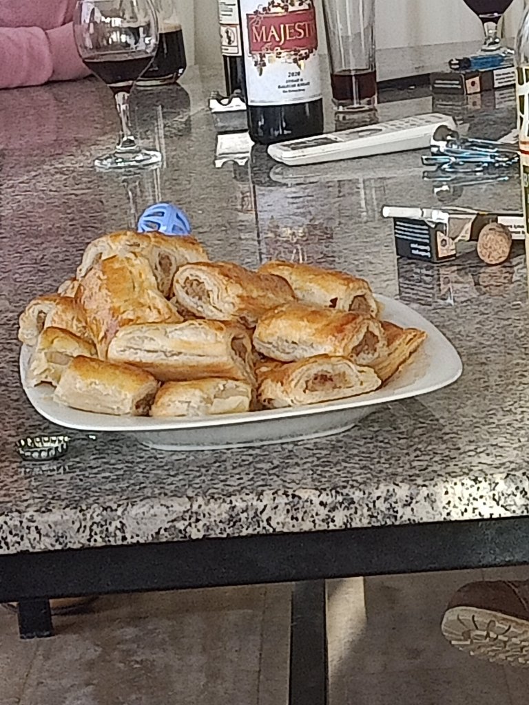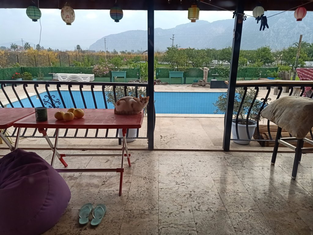 It started raining so I decided to get my wellies from Charlie’s and pick up some Bolognese before going to feed the cats. I noticed Captain Caveman had decided to open one of our Datça Vineyard wines to put in a slow cooker Bolognese and I was a bit disappointed because I’d hoped we would drink that on a special occasion, or at least together. We did have other red wine in when I left but he’d drank it. I took some food with me to tide me over so that I didn’t have to keep coming all this way to get some meals. The rain was about to come, the forecast wasn’t looking good for tomorrow so it was likely we wouldn’t leave our respective house sitting properties. I got back to Mark and Kate’s just as the rain was about to lash it down, I had a glass of wine and then later warmed up my Bolognese for dinner.