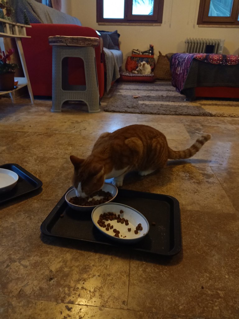 It was still dark at 7am on Wednesday 7th December when I fed 5 out of 6 cats at Mark and Kate’s house. It was very cold outside so I took a cup of tea back to bed with me. Kylie didn’t turn up until 8.30am but did stay indoors after her breakfast. Captain Caveman had decided to go on a big walk over the other side of the river and had chosen to take Charlie with him. He even sent me a photo from the top of a mountain and I hoped Charlie’s little legs were ok. By noon I had my lunch break spoiled by Bebek, the youngest cat, bringing me a gift. It was a mouse, or a rat, and I had to get Kylie to take it away, which she impressively did. My diet had really gone a bit off track because I hadn’t brought much of my food over from any of the other houses. I ended up having half a chicken and mushroom pie from the fridge, before setting off to walk to Fat Club. Unsurprisingly, I had put on 0.3kg this week, which is less than 1lb, so I wasn’t unduly worried. After the group, I walked to Tez bar to see my parents, Captain Caveman and Charlie. The walkers had not yet gone home but it looked like they had really bonded. Charlie had been very well behaved and had been on a rowing boat, a ferry and walked quite a long trek without any issues. I had planned to go back to Charlie’s with Captain Caveman for dinner but it was getting dark so I left everyone there and walked back to feed the cats. As my dinner plans had once again fell through I had more pide, courtesy of Mark and Kate, then went to bed fairly early.