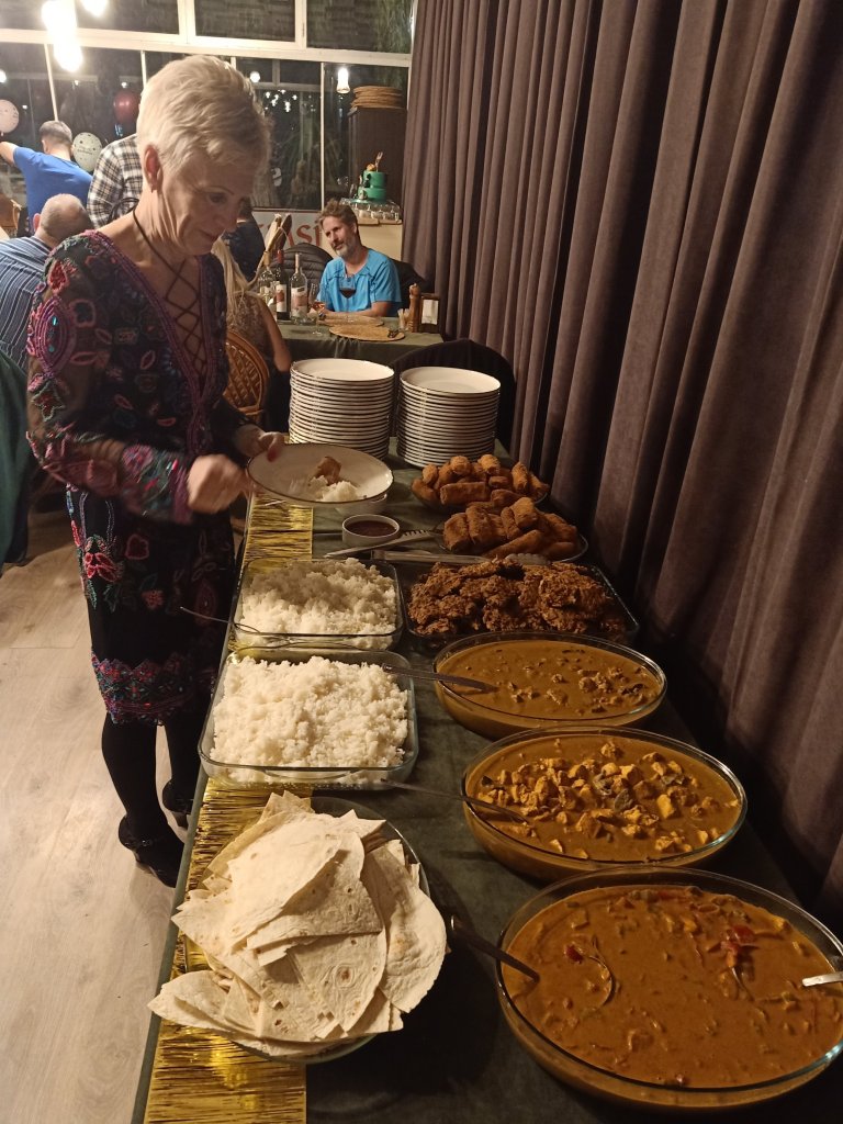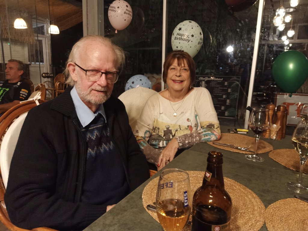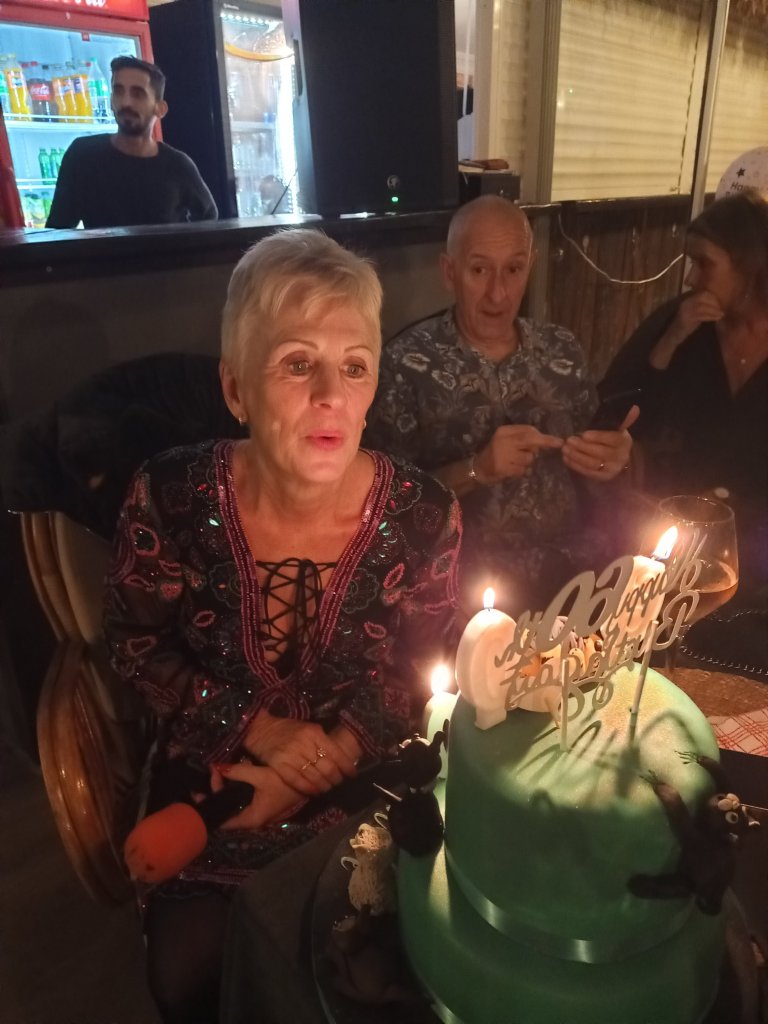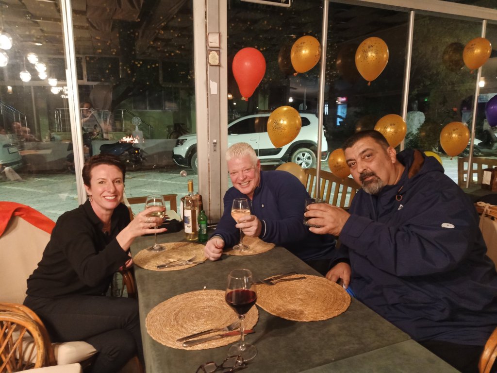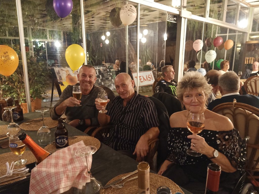 We had been invited to Michele’s 60th birthday party at Temsi restaurant. It started at 7.30pm and, as I was probably still full of germs, even though I was feeling better, I went for a table away from everyone. Adam and Kath had just returned to Dalyan so they joined us and then Bill and Jaxx, from the Dog shelter, came and sat beside us. Michele had very kindly put a bottle of each colour wine on the table for us to drink, had organised a curry dinner and a band. It was one of the best parties I’d been to in a while and the wine seemed to perk me up no end! Before the night was over I had managed to get as many photos as possible, dance to the band and eat a very delicious curry themed buffet. We only stayed until the singing of ‘Happy Birthday’ and cake cutting as I didn’t want to overdo it. I’d enjoyed the party and it was the first time I’d been at Temsi’s new venue since it moved in to the old Nazo’s building a while ago. We were impressed and it had been lovely to be invited and see so many people celebrating.