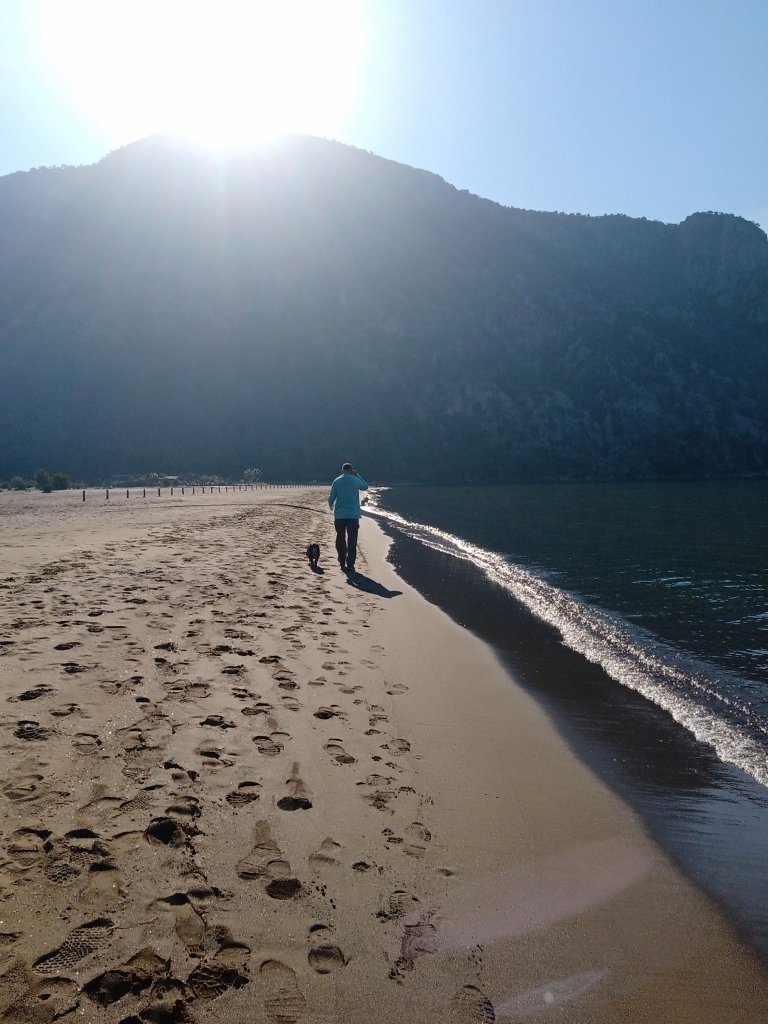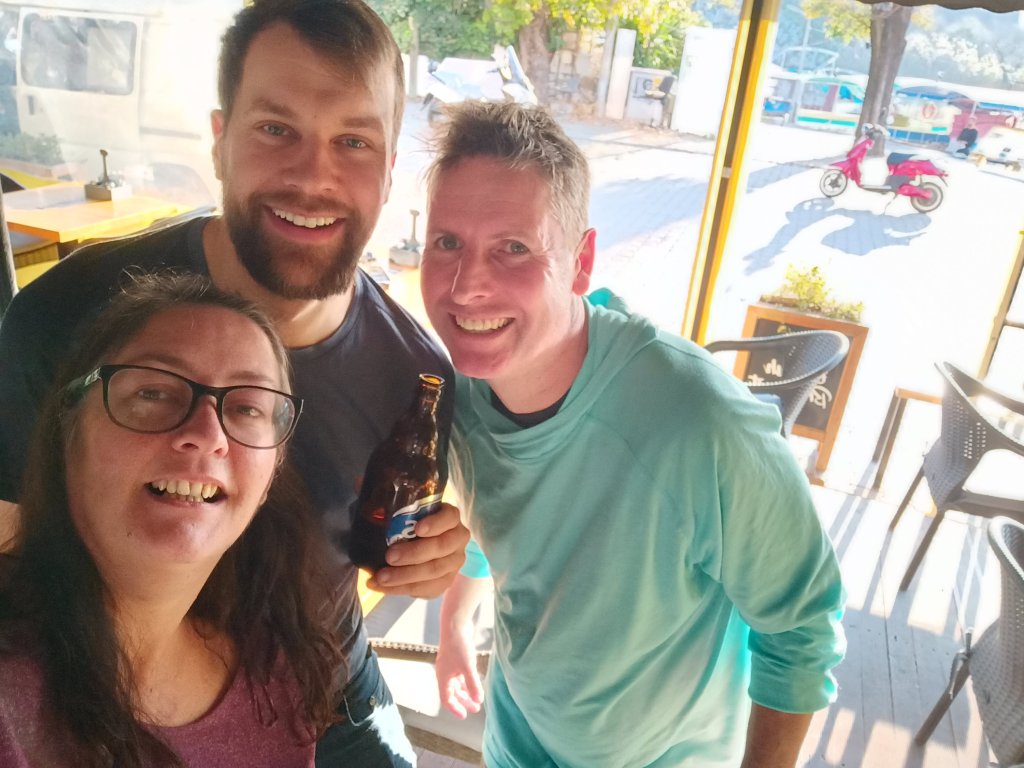 For some reason a lot of our friends left rather abruptly while it was still very sunny and warm but we stayed because Fikri was booked to pick us up at 4pm. Charlie had a great time, he was such a well behaved boy and had made loads of new friends, including seeing his old mate Skippy, from Waterfall bar. Fikri had to come and get us as we were still near the cafe and we went straight back to Lukka bar to meet our friend Josh, of Phong Nha fame! As Captain Caveman, Charlie and I were in Fikri’s taxi going back from the beach, our friend Josh was already in Lukka bar waiting for us. We’d last seen Josh in March 2019 when he had left Phong Nha, Vietnam to move back to England. I was so excited to be seeing him again and that he was going to be staying in Dalyan for a week. We had welcome hugs and Efes and introduced Charlie, the dog. Charlie was not so keen on men but he liked Josh and Josh loves dogs so they were going to get on fine. I’d invited others to come to Lukka to welcome Josh but, for various reasons, it was just us. Most of the other expats were already in Tez bar, or had gone home drunk, after the Christmas Eve Iztuzu Beach shenanigans. We played pool in Lukka so that Josh could be reminded how bad I am at playing it and we caught him up with our very loose itinerary for his stay. He would be staying at our place while we were still at Charlie’s so Captain Caveman took him to drop his bag off and gave him a key.