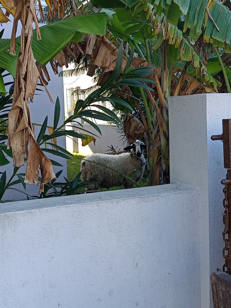 My weekly measurements were favourable so I was hopeful for good results at Fat Club later. I’d put 1cm on my bust, lost 3cm off my waist and hips while my legs were the same as the week before. At Jamie’s the dogs were pleased to see me and they enjoyed a walk separately to Charlie, mainly because I thought I’d struggle to take 3 together. Jamie had some Christmas cake left for me and I had a small piece just to taste it, before Fat Club. It was rather hot and a bit of a sun trap on Jamie’s back garden so I was too hot in my long sleeved top. On my walk round to Nil Lounge I spotted a stray sheep, eating foliage in the garden of an unoccupied complex. Josh went to join the pool afternoon at Rehab bar but us ladies probably wouldn’t join them as it was Ghislaine’s birthday celebration straight after Fat Club.